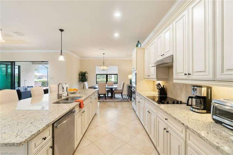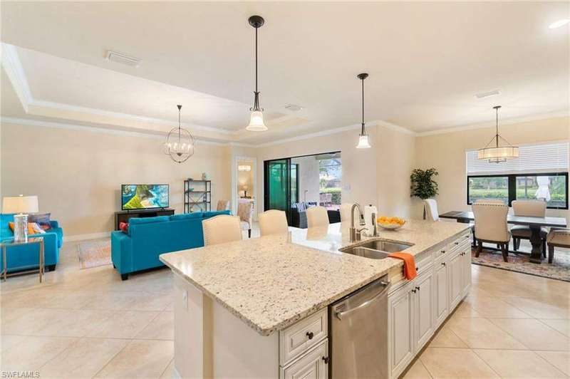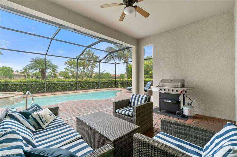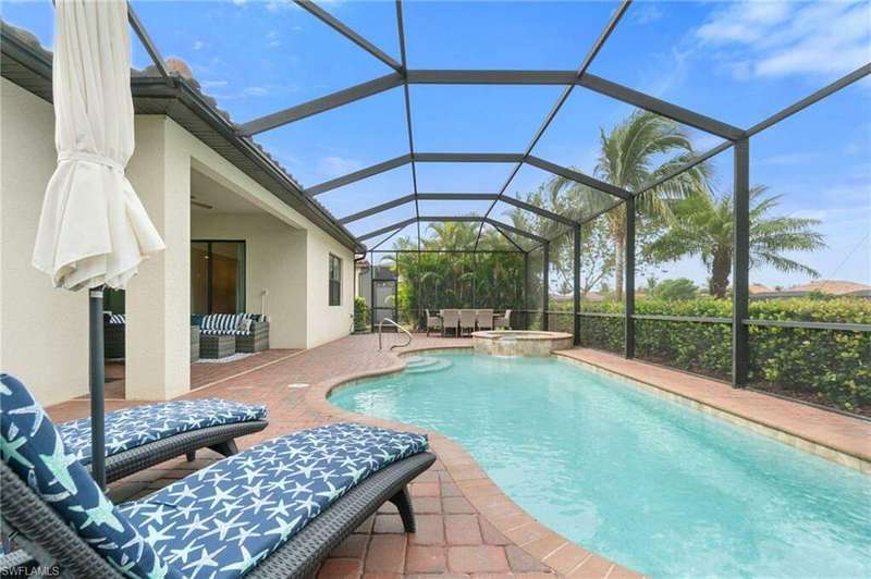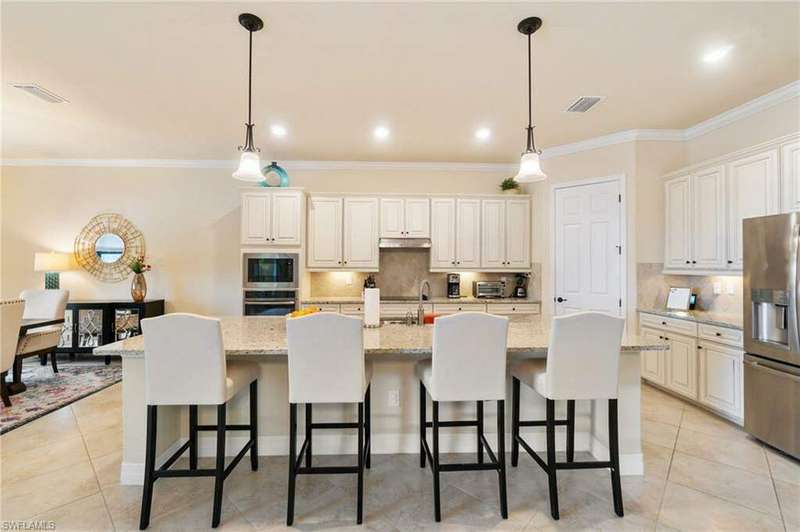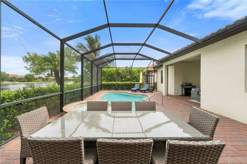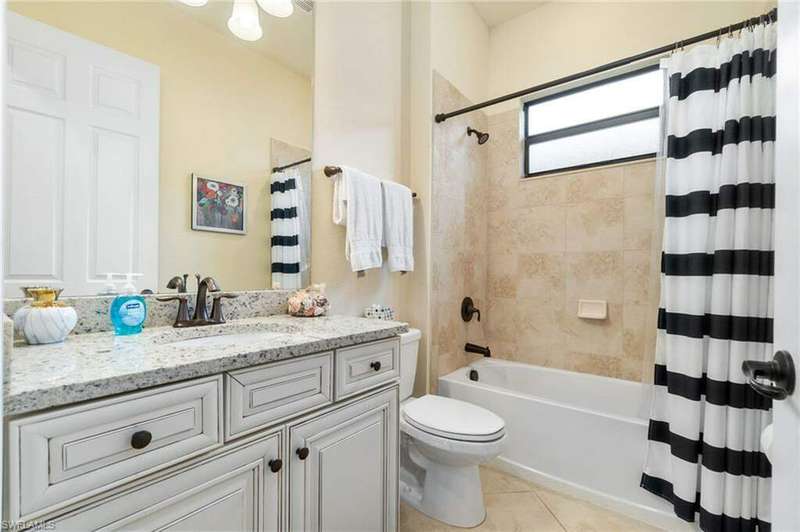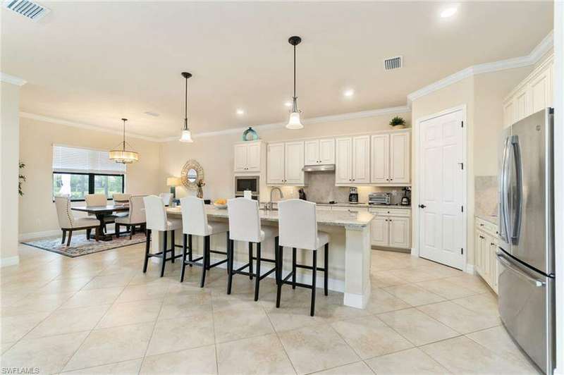 AVAILABLE 2026 SEASON! SUMMER & FALL DISCOUNTED RATES! Welcome to Your Dream Vacation Home at Bonita National Golf & Country Club. Escape to this luxurious single-family home in one of Bonita Springs' newest and most prestigious golfing communities. Nestled on a tranquil street surrounded by lakes, this stunning retreat boasts 3 spacious bedrooms, a den, and 3 full bathrooms, offering plenty of room for family and friends. The community offers an array of modern amenities, including Har-Tru tennis courts, lap pool, a resort-style pool with waterfall, heated spa, and spacious deck with plenty of seating and lounging areas. Guests can also enjoy multiple dining and bar options, catering to both formal and casual preferences. From the moment you step inside the inviting foyer, you'll notice the impeccable attention to detail and luxurious finishes throughout. The thoughtfully designed layout and high-end features make this space feel both welcoming and sophisticated. The heart of the home features an open-concept layout, perfect for entertaining family and guests. The kitchen boasts white cabinetry, granite countertops, stainless steel appliances, pantry, and an island with seating for four. Kitchen is fully equipped with dishware, cookware and small appliances for all your culinary needs. Adjacent, the dining area comfortably seats five people. The family room provides cozy seating, a large smart TV, and sliding doors leading to your private outdoor oasis. COMMUNITY AMENITIES As a guest of Bonita National Golf & Country Club, you'll have access to an array of top-tier amenities. Play tennis on the 8 Har-Tru courts, work out in the state-of-the-art fitness center, or join a variety of classes including Yoga, Pilates, and Water Aerobics. Pamper yourself at the U-Topia Spa, offering a range of treatments from massages to facials. Take a dip in the resort-style pool with a waterfall, enjoy a more vigorous swim in the lap pool, or relax in the hot tub. Grab a bite at the Poolside Cafe or dine at the Golf Clubhouse Grill, offering full lunch and dinner menus with a bar. Whether you're here to unwind by the pool, or enjoy the community's vibrant social scene, your perfect vacation starts here.