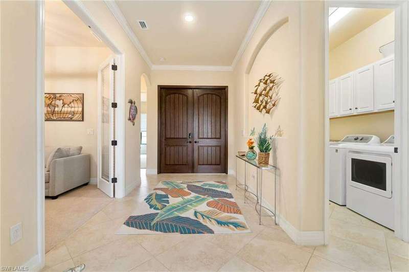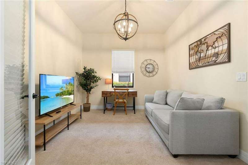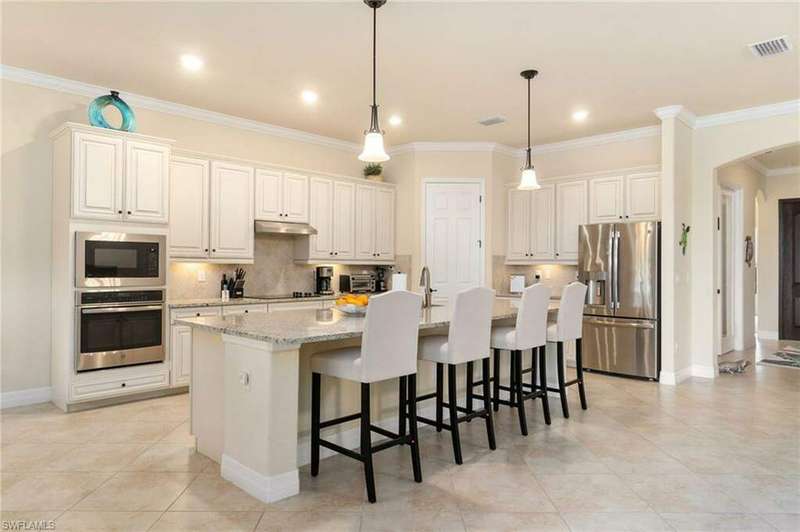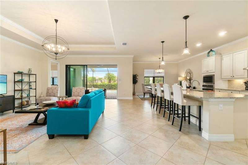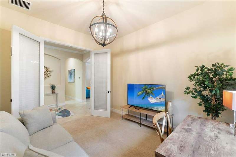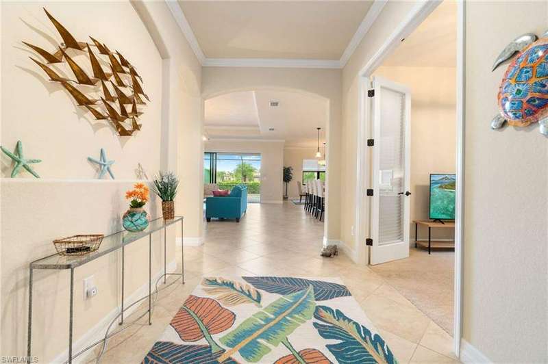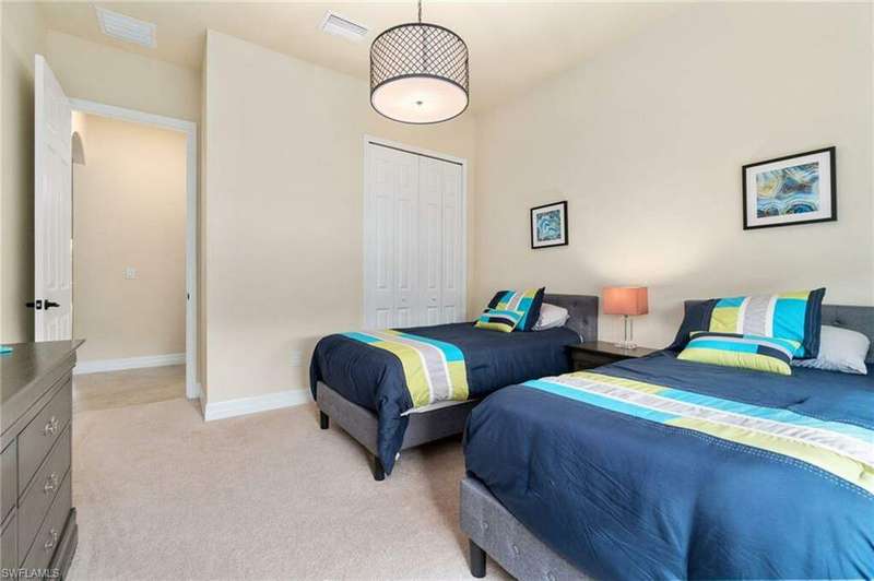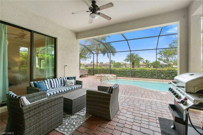 AVAILABLE 2026 SEASON! SUMMER & FALL DISCOUNTED RATES! Welcome to Your Dream Vacation Home at Bonita National Golf & Country Club. Escape to this luxurious single-family home in one of Bonita Springs' newest and most prestigious golfing communities. Nestled on a tranquil street surrounded by lakes, this stunning retreat boasts 3 spacious bedrooms, a den, and 3 full bathrooms, offering plenty of room for family and friends. The community offers an array of modern amenities, including Har-Tru tennis courts, lap pool, a resort-style pool with waterfall, heated spa, and spacious deck with plenty of seating and lounging areas. Guests can also enjoy multiple dining and bar options, catering to both formal and casual preferences. From the moment you step inside the inviting foyer, you'll notice the impeccable attention to detail and luxurious finishes throughout. The thoughtfully designed layout and high-end features make this space feel both welcoming and sophisticated. The heart of the home features an open-concept layout, perfect for entertaining family and guests. The kitchen boasts white cabinetry, granite countertops, stainless steel appliances, pantry, and an island with seating for four. Kitchen is fully equipped with dishware, cookware and small appliances for all your culinary needs. Adjacent, the dining area comfortably seats five people. The family room provides cozy seating, a large smart TV, and sliding doors leading to your private outdoor oasis. COMMUNITY AMENITIES As a guest of Bonita National Golf & Country Club, you'll have access to an array of top-tier amenities. Play tennis on the 8 Har-Tru courts, work out in the state-of-the-art fitness center, or join a variety of classes including Yoga, Pilates, and Water Aerobics. Pamper yourself at the U-Topia Spa, offering a range of treatments from massages to facials. Take a dip in the resort-style pool with a waterfall, enjoy a more vigorous swim in the lap pool, or relax in the hot tub. Grab a bite at the Poolside Cafe or dine at the Golf Clubhouse Grill, offering full lunch and dinner menus with a bar. Whether you're here to unwind by the pool, or enjoy the community's vibrant social scene, your perfect vacation starts here.