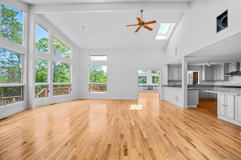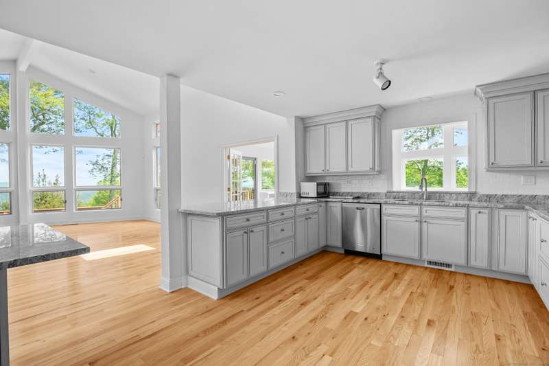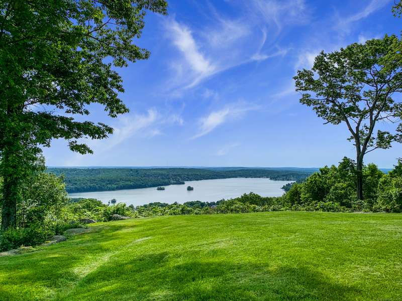 Luxury Retreat with Panoramic Water & Mountain Views New Fairfield, Connecticut 16+ Secluded Acres Candlewood Lake & Squantz Pond Perched high above the treetops with mile-high, million-dollar views, this extraordinary and unique country estate offers a rare combination of seclusion, serenity, and year-round natural beauty. Overlooking both Squantz Pond and Candlewood Lake, this private 16+ acre retreat promises breathtaking sunsets, sweeping water and mountain vistas, and the peace of your very own sanctuary. Step inside to discover an elegant 4-bedroom, 3.5-bath residence featuring a thoughtfully designed open floor plan, gleaming wood floors, and a beautifully renovated chef's kitchen. A separate study provides a quiet space to work or unwind, while the spacious primary suite is a true showstopper, offering unrivaled estate views, a luxurious steam shower and sauna, spa tub and double vanity, and the feeling of a private spa escape. Outdoors, a gunite pool and pool house invi