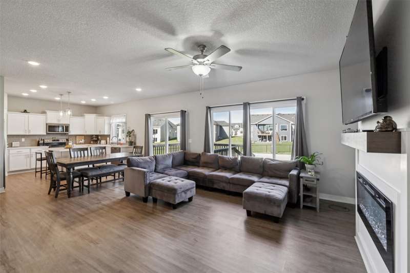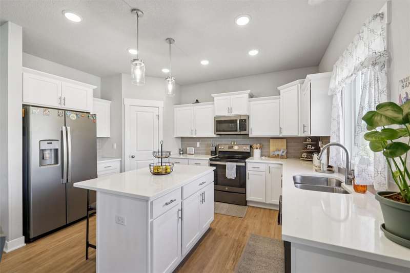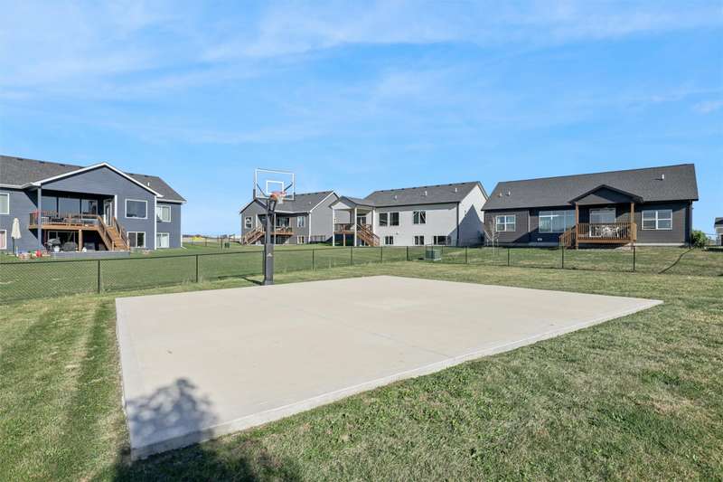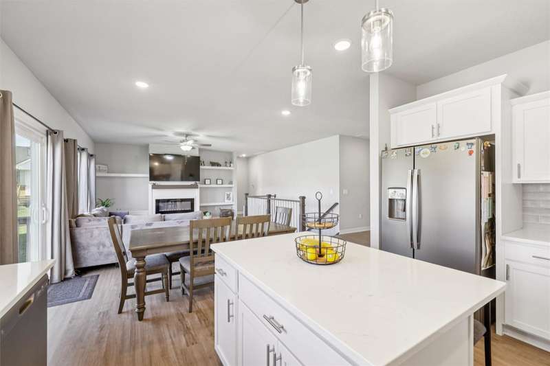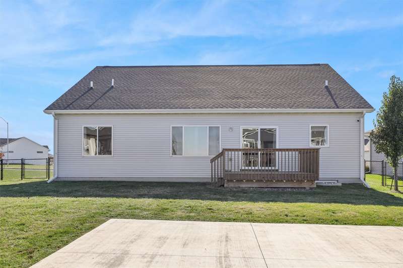 Ankeny Ranch 0.9 mi to Costco Quick I-35 access Fenced yard Finished lower level Quartz kitchen 5 bedrooms- Custom style meets comfort in this inviting 5-bedroom ranch designed for easy everyday living. The kitchen steals the show with white soft-close cabinets, quartz countertops, GE Slate appliances, tile backsplash, under-cabinet lighting, and a large island with pendant lights. The open layout connects the kitchen, dining area, and great room with a sleek 60 electric fireplace and floating shelves. Relax in the spacious owners suite featuring double sinks, a makeup vanity, and separate toilet room. The finished lower level adds generous space for gatherings with a family room, walk-up wet bar, two bedrooms, full bath, and storage. A drop zone with wood lockers keeps things organized off the 3-car garage. Outside, enjoy the 0.29-acre yard, fenced for privacy, with a cement pad and basketball hoop ready for play. Thoughtfully priced below the assessed value, this home offers strong potential for the next owner to personalize and build equity while enjoying a great Ankeny location close to shopping, parks, and easy interstate access.