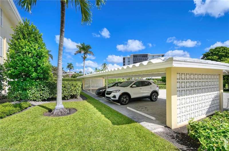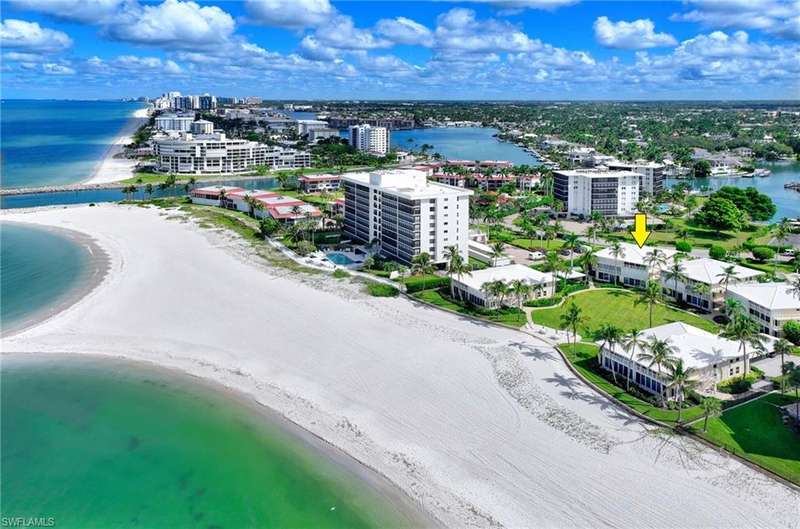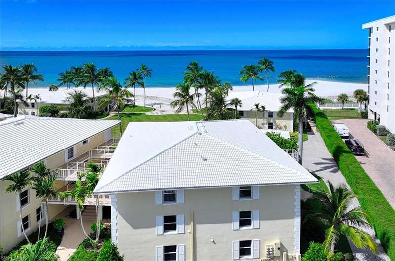 This two-bedroom, two-bath beachfront condo offers unbeatable unobstructed sunset views right from your living room! Nestled in the Chateau of Naples, a low-density community with just 26 residences, you're only steps away from sparkling Gulf beaches. This move-in-ready condo is your blank canvas to craft the ultimate beachfront paradise, where an open concept living and dining area flows seamlessly to a wide screened lanai overlooking the water. The space is bright and airy, perfect for relaxing or entertaining with those western sunset views. Practical perks make life a breeze with a washer and dryer right in the unit, impact glass windows for storm protection, and electric shutters for quick convenience. You'll also love the covered carport space plus extra guest parking, heated community pool, grilling station, car wash area, and beautifully manicured grounds which create a serene tropical escape. With an on-site manager, everything is well cared for. The location couldn't be be