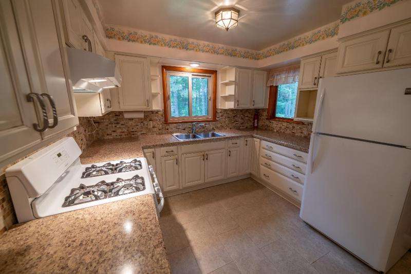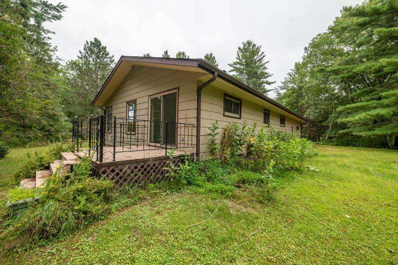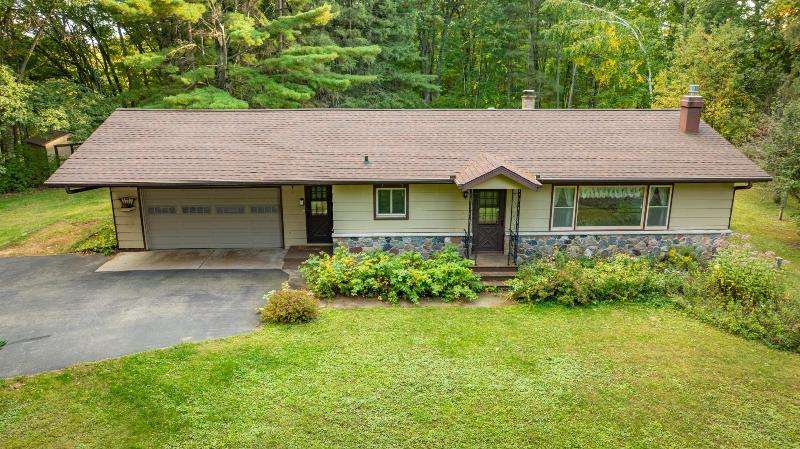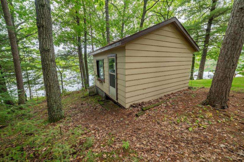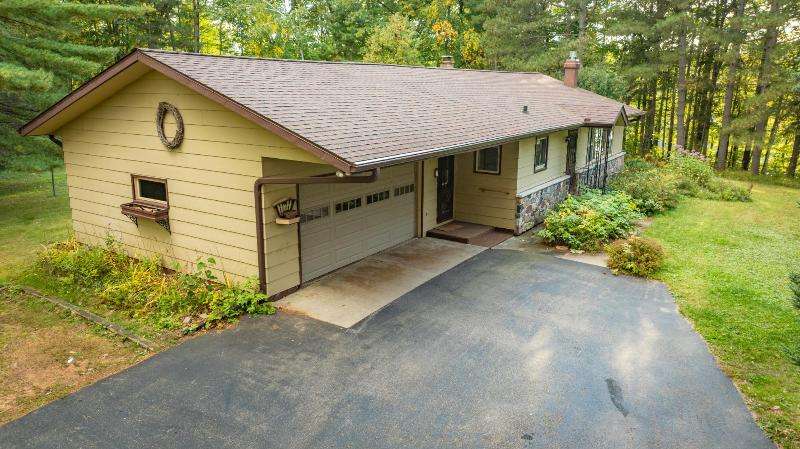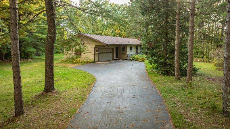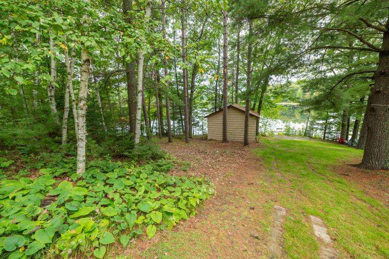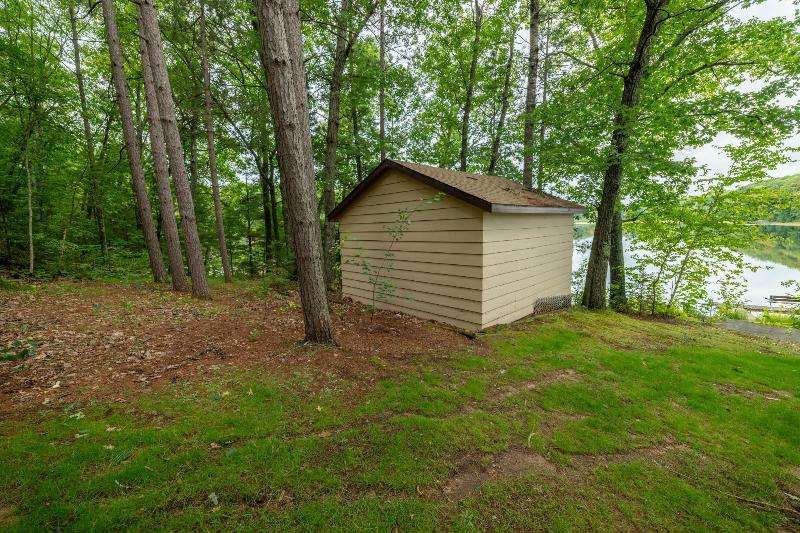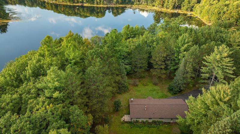 This 2 bedroom, 1-2 bath home on tranquil Nose Lake offers a wonderful opportunity to enjoy peaceful lakefront living on a semi-private lot! The main level features the kitchen with attractive cabinetry, adjoining dining area, a large living room with toasty gas fireplace to stay warm on crisp fall days, a full bath, and two bedrooms, including one bedroom with sliding door to a relaxing sun deck. The lower level provides an expansive rec room, an open second bathroom, a poured foundation, and storage/utility/laundry space with an efficient hydronic heating system (new boiler installed in 2022). The 2+ acre lot is spacious and has a park-like feel with open yard space, apple tree, a 2-car attached garage, 10x12 shed, blacktop drive, and a gradually sloped approach to the water via a dedicated path where you'll find gin clear water, solid sand swimming frontage and a beach house perfect for lakeside toy storage or a kids bunkhouse for sleepovers!