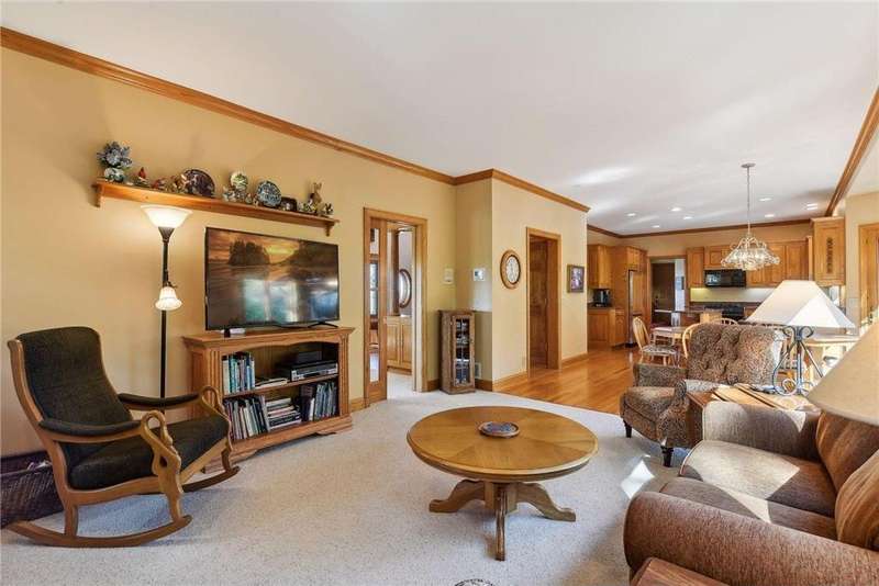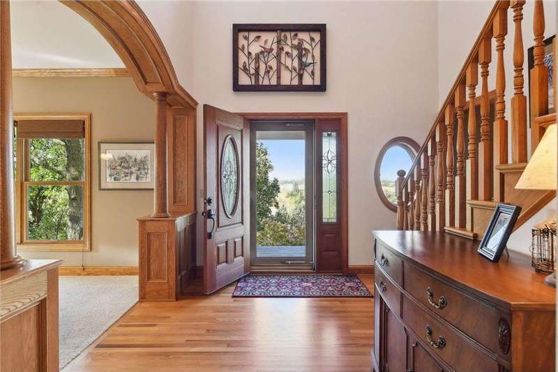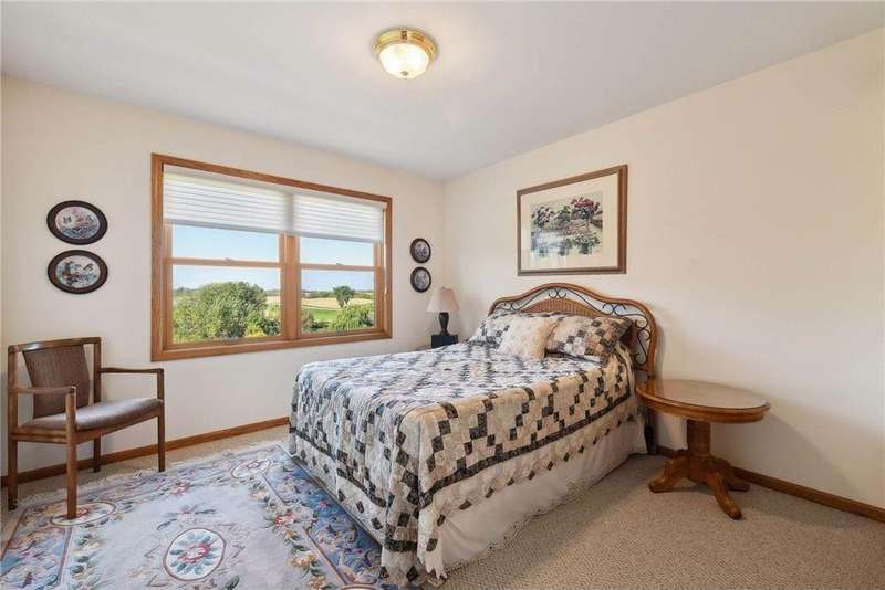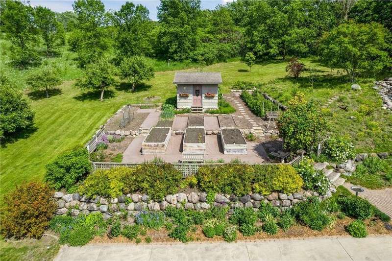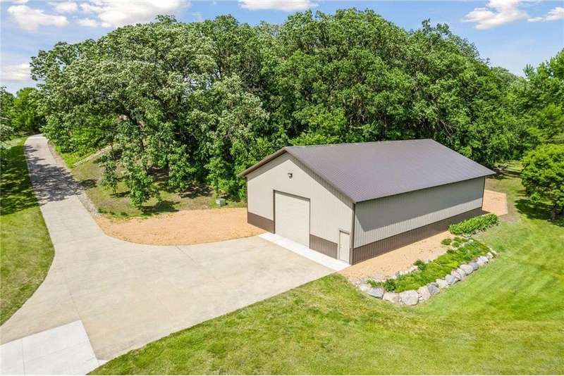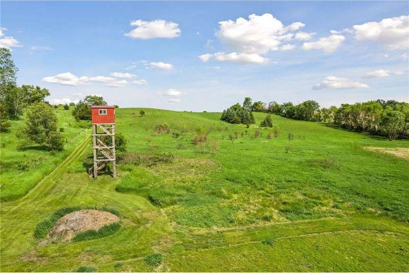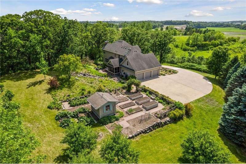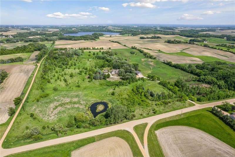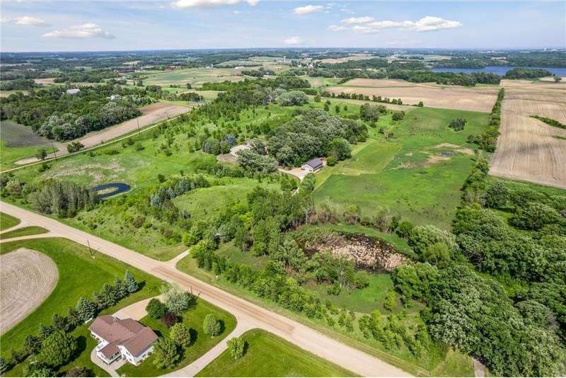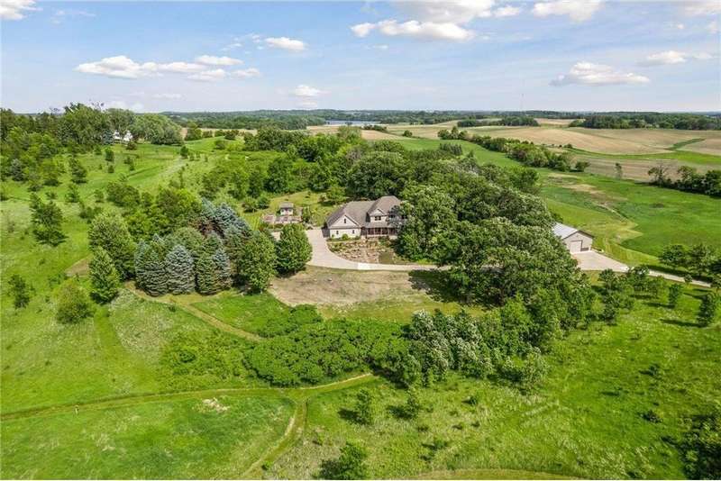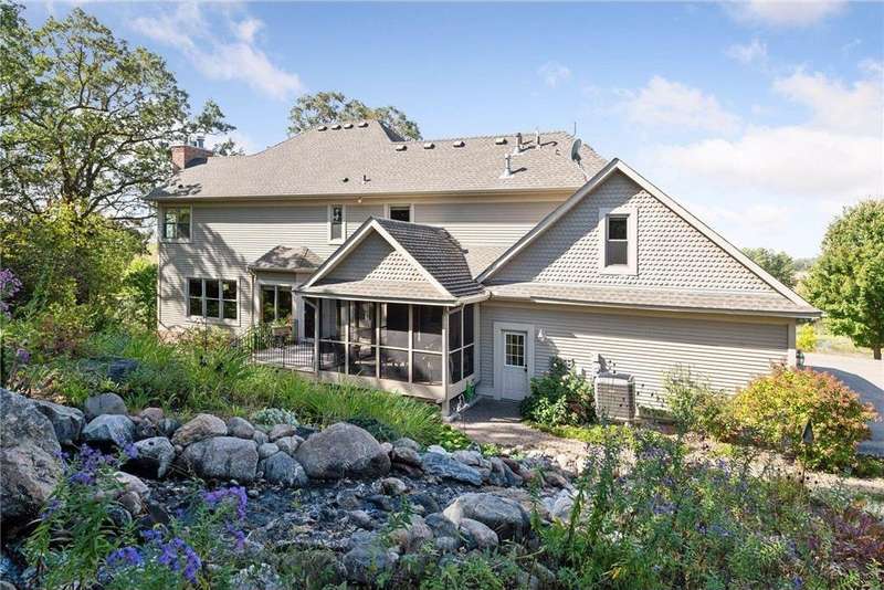 Now available for the first time… 11905 Market Avenue in Cologne. This remarkable 38-acre property impresses with three ponds, rolling hills and truly breathtaking landscape. It showcases masterful gardens with fragrant blooms of perennials and natives with vibrant color all-season long. A potting shed offers charm and caretaking convenience to the grounds next to the vegetable and herb garden. There is a sprawling patch of strawberries and raspberries, as well as apple, pear and plum trees. Enjoy tranquil sounds of the pondless waterfall from several outdoor spaces. Find sanctuary on the three-season porch, admire wildlife from the covered front porch and entertain on the patio or Trex deck. Step inside the home to reveal a gorgeous main level with a comfortable layout and quality craftmanship. Gleaming hardwood floors lead into a sun-filled kitchen with both formal and informal dining space. The adjoining mud room houses convenient laundry, a half bath and abundant storage in the pantry. A handsome gas fireplace is anchored in the family room offering lush views framed by many windows. The front sitting room offers versatile use and more views. Head upstairs to find three bedrooms and two bathrooms on this level, with the inclusion of the primary suite. You will love this private retreat and its spa-like bath with a double vanity, jetted tub and large walk-in closet & shower stall. There are two bonus rooms above the garage that welcome any use but have made for wonderful home offices. The lower level entertains with a cozy wood-burning fireplace, a beautiful custom bar and walkout access in the family room. There is another bedroom, flex room and ¾ bathroom on this level with in-floor heat throughout. Other notable upgrades include maintenance-free steel siding, a heated & insulated 3-stall garage with epoxy flooring, fiber optic internet, invisible fencing and a BRAND-NEW septic system and 40x60 Pole Barn installed in 2024. There are 16 acres currently enrolled in the CRP program with ability to be transferred to the new owner. Hunting enthusiasts will appreciate the custom deer stand and the panoramic views of these prairies. The peaceful life you’ve been searching for has FOUND YOU!