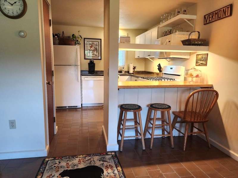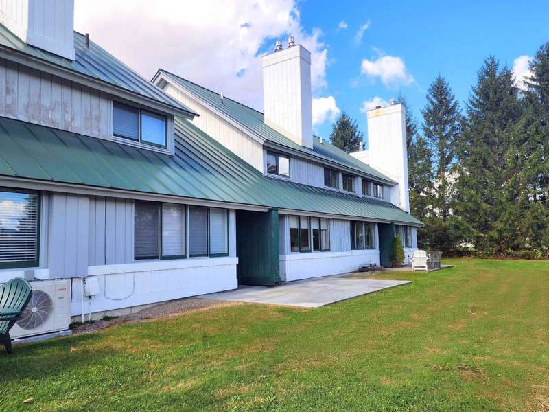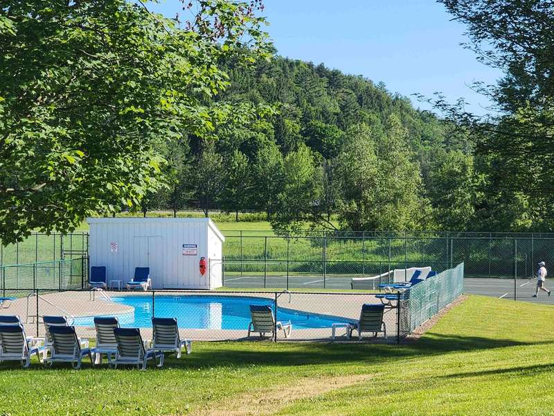 Here is one with the view over the 15th hole of the Stowe Country Club to the Worcester Range. Think beautiful sunrises. Village Green makes ownership - EASY. Comfortable 2 bedroom unit, with an open floorplan, propane fireplace and a lovely sitting area to enjoy in the alcove right outside the door or the bluestone patio out the back. . Live in it, vacation there, or rent at will. Amenities include indoor and outdoor pools, tennis court and pickleball, common building with gamerooms, hot tub, sauna. It is walking distance to the Stowe Country Club, the recreation path, Mountain Road shops and restaurants. Play mini-golf nearby. Jump the shuttle to the ski slopes in the winter. Take off on the rec bath on x-c skis, bikes or on foot to parts unknown. Lovely level setting with mountain views and lots of green space. Association fees include utilities (heat, electric, water, sewer, internet, WiFi, cable etc) as well as exterior and common property maintenance . Unit is sold fully f