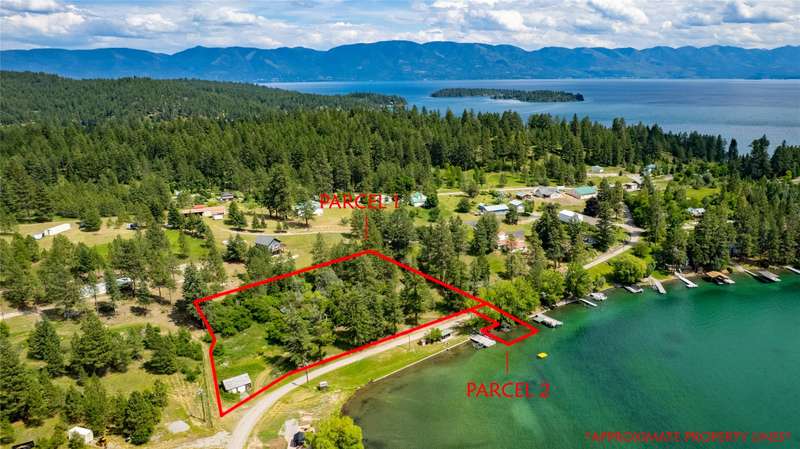 Discover the unparalleled beauty and endless possibilities of this unique lakeside property on coveted Flathead Lake. This rare offering includes a 1.32-acre parcel with power, water, and septic, plus a .09-acre waterfront parcel with approx. 50 feet of direct frontage-perfect for launching your boat or soaking in Montana's sunsets. Set against the Swan and Mission Mountain ranges, the property is free of HOA restrictions and covenants, giving you the freedom to design your ideal retreat, family compound, or investment. The larger parcel features distressed structures ready for removal or revitalization, allowing you to start fresh while benefiting from established utilities. Whether you envision a modern lakefront home, rustic cabins, or a seasonal getaway, this property offers unmatched potential in one of Montana's most desirable recreation areas. Endless water recreation-boating, fishing, kayaking, and more await. Create your legacy on Flathead Lake. Schedule your tour today! Enjoy peaceful privacy and convenient access: just 12 minutes to Lakeside for dining and shopping and about 35 minutes to Kalispell for major amenities, hospitals, and Glacier Park International Airport.