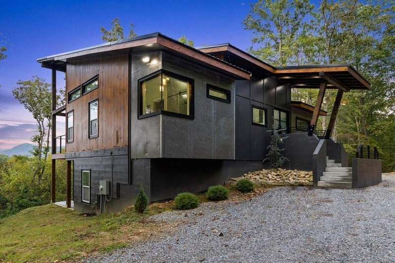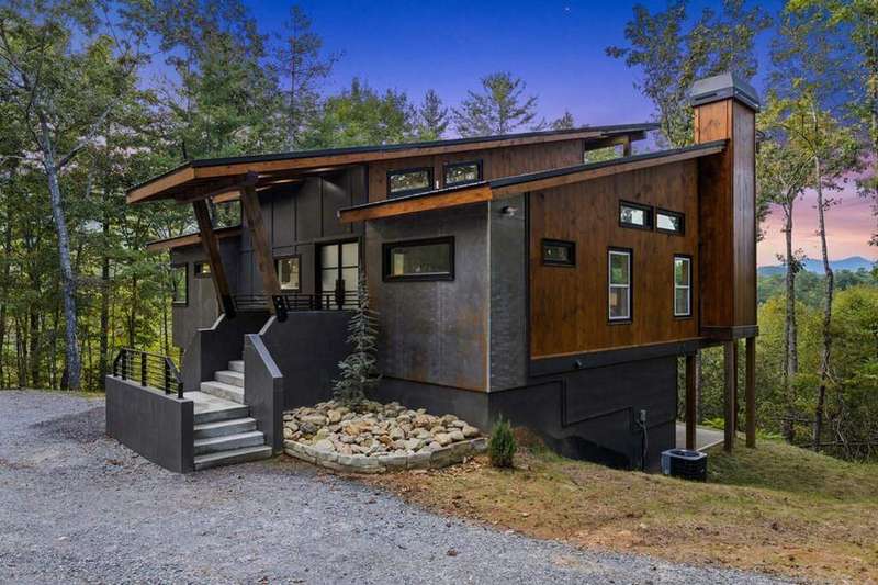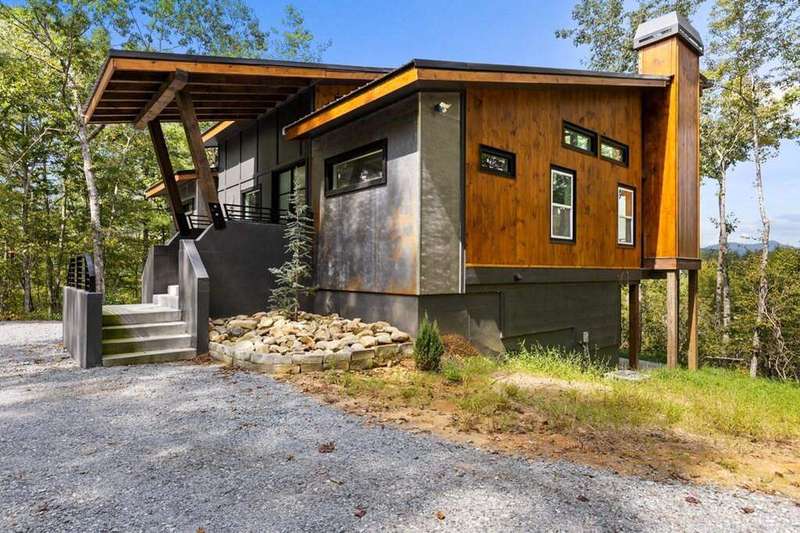 Modern Mountain Luxury Home with Panoramic Long-Range Views This 4-bedroom, 3-bath contemporary retreat blends modern mountain living with high-end luxury and investment potential. Perched high to capture breathtaking long-range mountain views, it offers style, comfort, and flexibility for vacation rental, short-term rental, or full-time residence. The open-concept design showcases a striking mix of metal, steel, and concrete accents, soaring ceilings, and expansive walls of glass that flood the interiors with natural light while framing the scenery. The gourmet chef's kitchen features high-end appliances, custom cabinetry, and dramatic granite waterfall countertops designed for both everyday cooking and entertaining. A luxury wine closet stores and displays your collection with elegance. Two oversized levels of outdoor decks extend the living space, creating seamless indoor-outdoor flow for alfresco dining, entertaining, or relaxing while taking in the views. Primary and guest suites offer privacy and spa-like baths. Located just minutes from Blue Ridge, Ellijay, and the Ocoee River, this home combines architectural excellence, panoramic vistas, and strong rental potential into one turn-key modern mountain retreat perfectly suited for discerning buyers looking for a statement property in the North Georgia mountains.