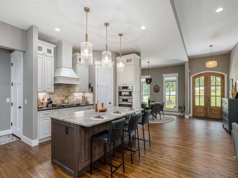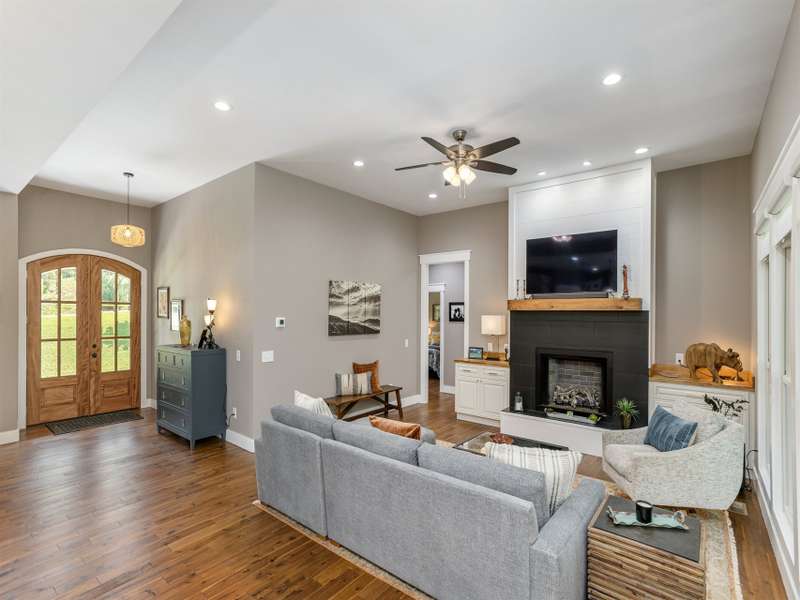 Be prepared to be wowed! This stunning 2023 modern farmhouse pulls out all the stops, blending timeless charm with today's most desirable features. Enjoy one-level living with soaring 10 ft ceilings, a spacious open floor plan, and a split-bedroom layout that offers privacy and functionality. The home boasts 4 bedrooms and 2.5 bathrooms, perfect for families or those who love to entertain. Step outside and relax on the inviting covered front porch, or host gatherings on the oversized covered back deck, complete with a grill hookup?your own private outdoor oasis. Inside, you'll find upper-end stainless steel appliances, modern finishes, and thoughtful upgrades throughout. Additional highlights include a professionally landscaped yard, a two-car garage with an extra storage bay, a whole-house generator, and a complete water filtration system for peace of mind and everyday comfort. 7 miles from shopping and dining. Don't let this turn-key home get away!