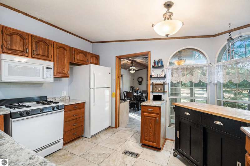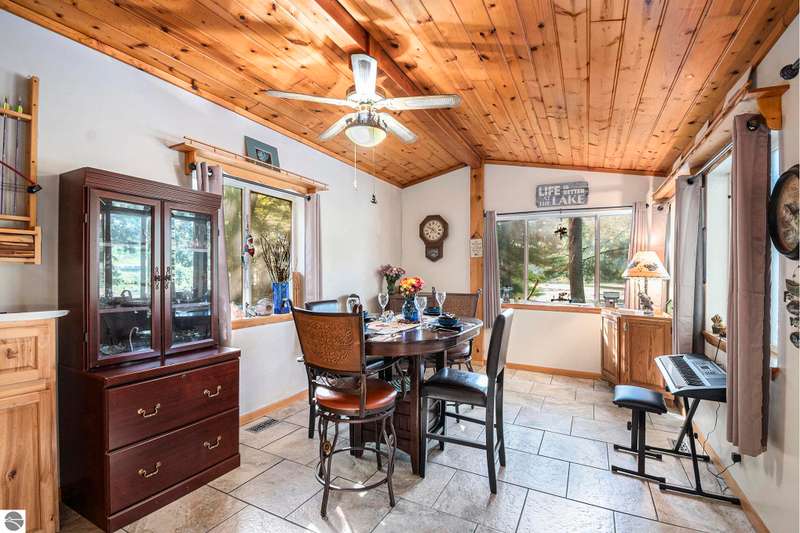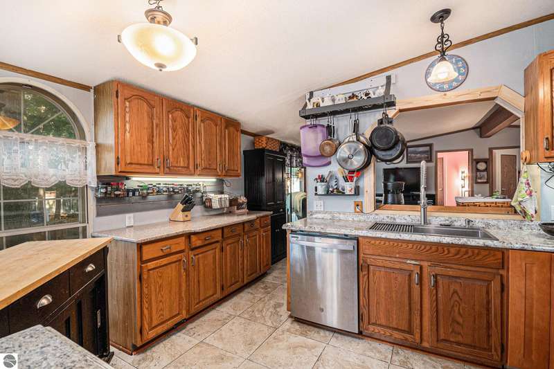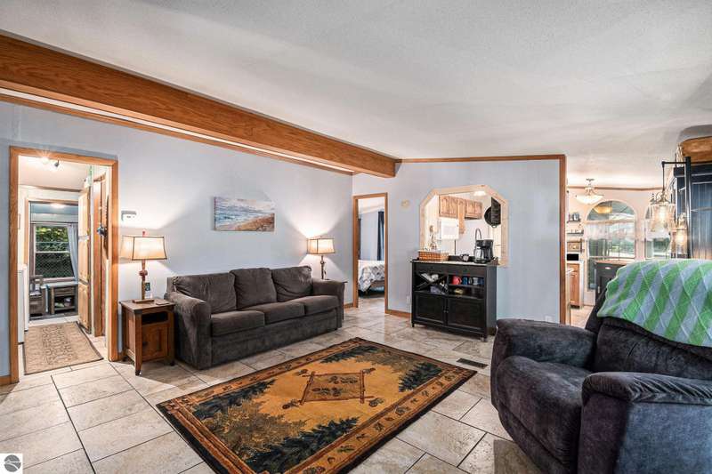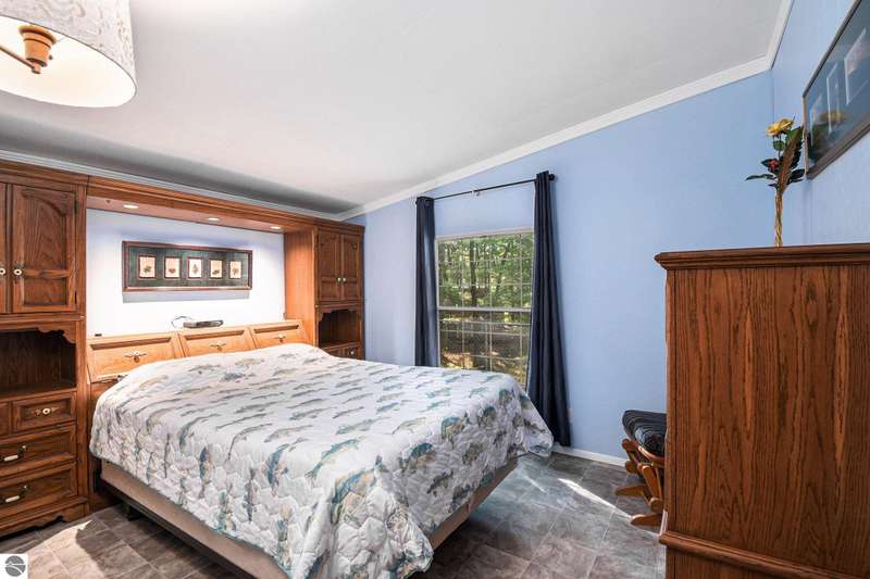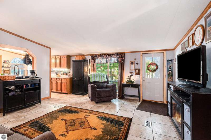 Charming Lakefront Home with Extensive Updates on Little Long Lake! This beautifully maintained 3 bedrooms, 2 bath manufactured home built in 1995 sits on the shores of Little Long Lake and offers year-round comfort with countless updates. The spacious property features a huge garage/workshop perfect for storage, hobbies, or just an area to work from home. Step inside to find a thoughtfully updated interior, freshly painted 2025, with new flooring throughout, porcelain tile 2024 and luxury vinyl 2025. The kitchen boasts updated cupboards, countertops, a cook's sink with PEX plumbing, dishwasher 2020, and microwave. The bathrooms were fully refreshed in 2023-2024 with new vanities, lighting, toilets, and plumbing. A cozy propane fireplace 2024 enhances the family room, while central air and a new furnace 2017 keep the home comfortable year-round. Major improvements include: new roof 2017 on the home, garage, and treehouse; new well and septic field 2014; new hot water heater 2020; new garage door & opener 2024; and updated exterior doors and windows. Outdoor living shines here with lake frontage, a fenced yard 2018, raised garden beds, a treehouse with new railings and steps, and even a canoe planter. Relax, garden, entertain, or enjoy the lakefront lifestyle--all from your own backyard.