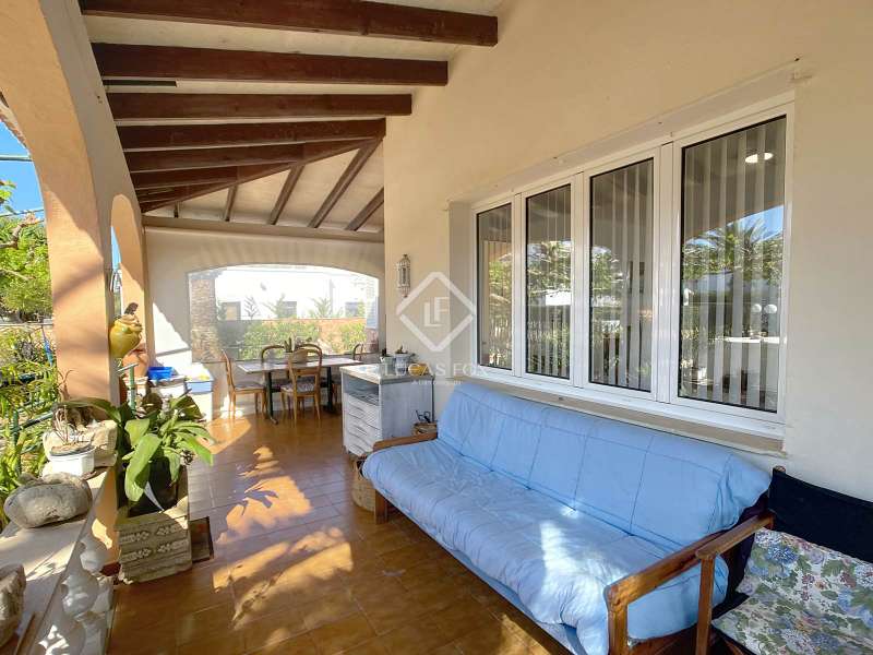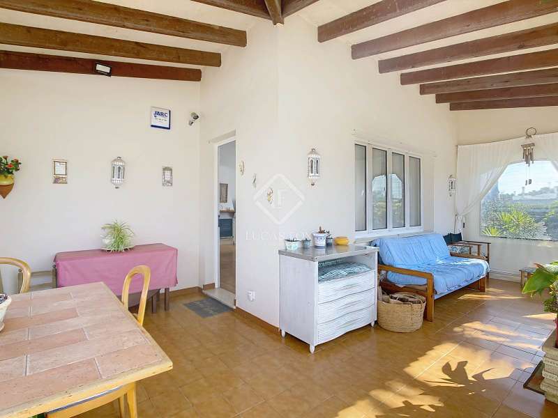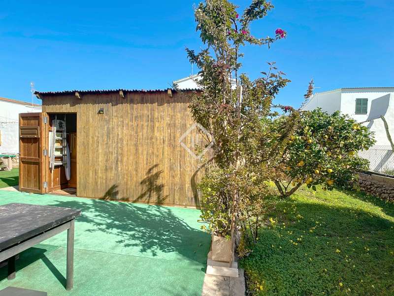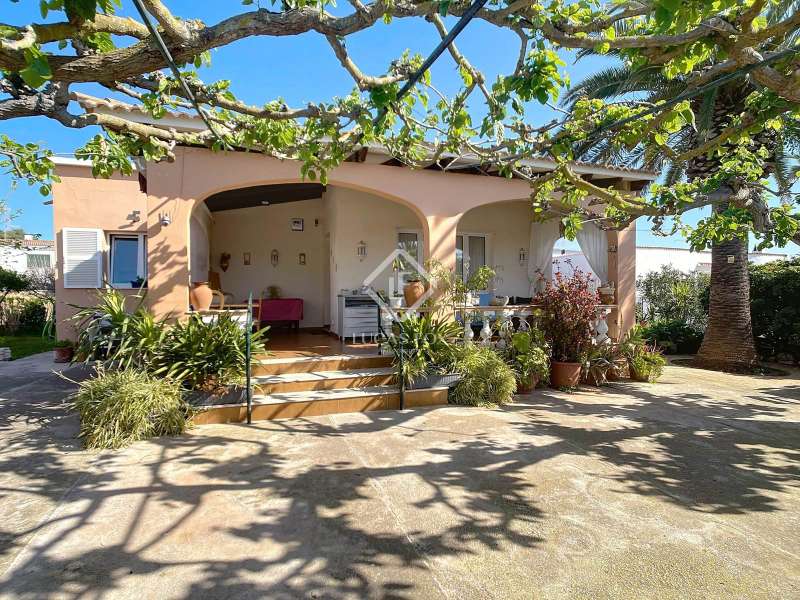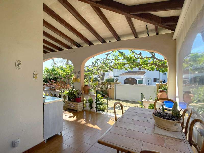Lucas Fox presents this 149 m² villa on a 594 m² plot in Son Carrió, in the municipality of Ciutadella de Menorca. It is located on a very quiet street frequented only by locals, just 10 minutes from Ciutadella de Menorca. The very comfortable property is distributed entirely on the ground floor. At the entrance, we are welcomed by a vine pergola that leads to a cozy covered porch with exposed wooden beams and sandstone ceilings for relaxing outdoors. We enter directly into the spacious living-dining room with a wood-burning fireplace and hot-cold air conditioning. From here we enter the large, fully equipped and renovated kitchen. A corridor leads us to the also renovated bathroom , a double bedroom with hot-cold air conditioning, and the other two double bedrooms , both with built-in wardrobes. A utility room/dressing room with built-in wardrobes that could be converted into another bathroom, and a storage room at the rear. The house offers the possibility of expansion with prior municipal authorization. Exterior , we have a beautiful garden area with a barbecue, parking space, and at the rear, a wooden shed converted into a storage room and a prefabricated removable pool. Without a doubt, an ideal property to live in year-round, or spend time with family and/or friends. Contact us for more information, or to arrange a visit