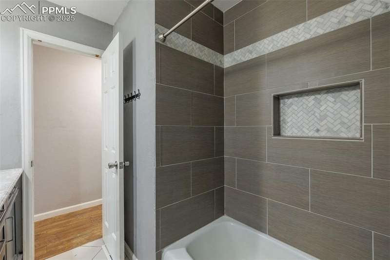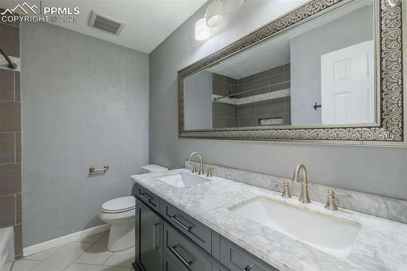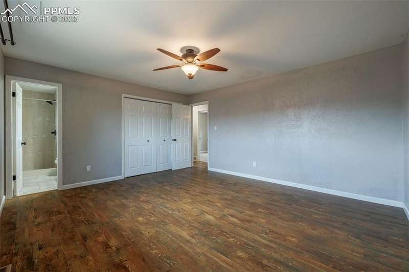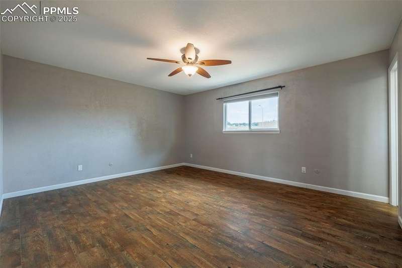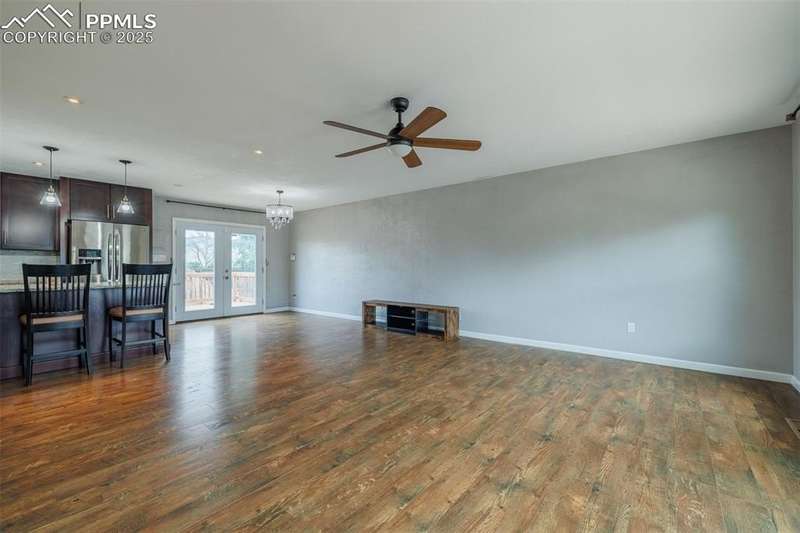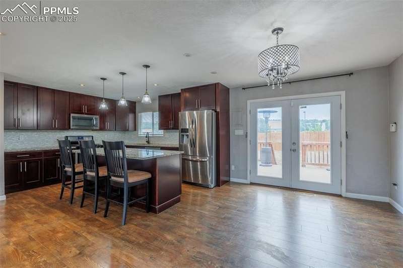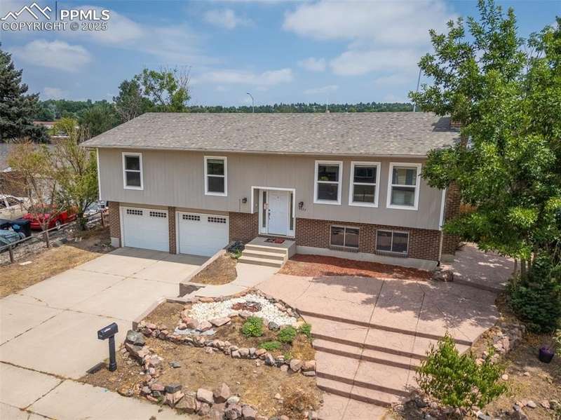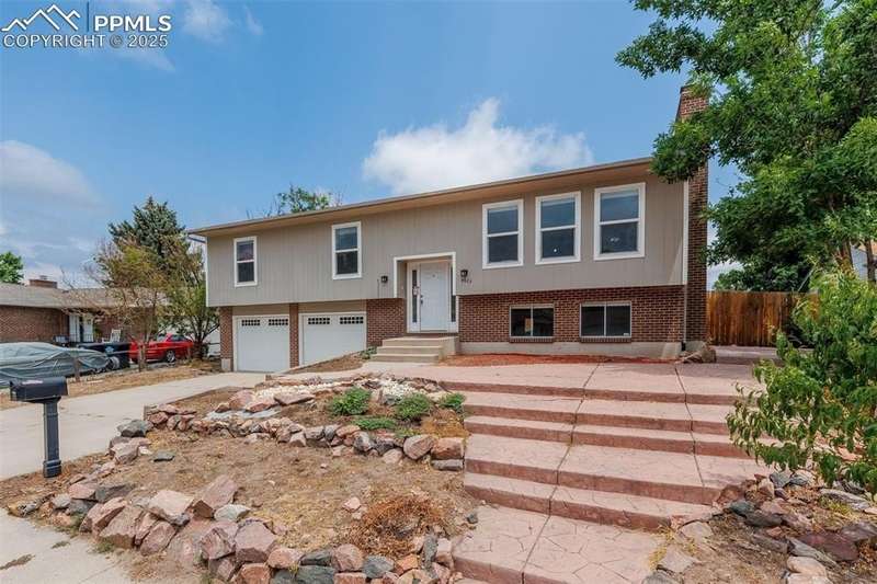 Welcome to this move-in ready, bi-level home centrally located right off of the Academy corridor! Step inside and be surprised by a beautifully renovated interior with stainless steel appliances, wood floors, and central air. The upper level offers an open floor plan flowing from the living room with great Pikes Peak views, a dining room that walks out to the back deck, and a modern kitchen with breakfast bar at the island, granite countertops, and soft-close cabinetry. Large master bedroom with attached 3/4 bath, two additional bedrooms, and a full bath with marble countertops and a double vanity complete the upper floor. Finished lower level features a laundry room, fourth bedroom, full bath, and a family room with fireplace and built-in shelving. Home amenities include a fully-fenced yard, stamped concrete patio in the front yard, and oversized attached two-car garage. Enjoy walking to Pulpit Rock Park, Austin Bluffs Open Space, hiking and biking trails, shopping and schools. Excellent rate in place on this property. No HOA dues. This home is a hidden gem with a stylish modern interior and won't last long!