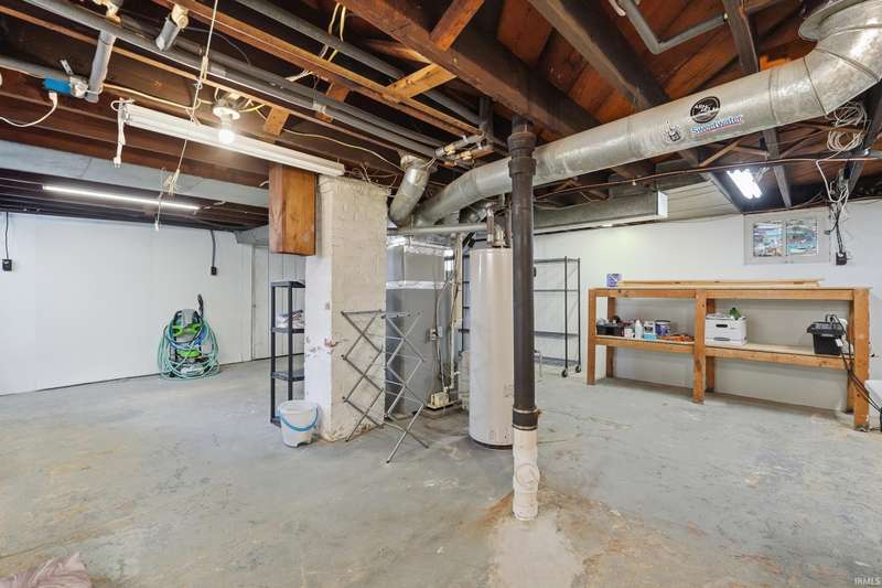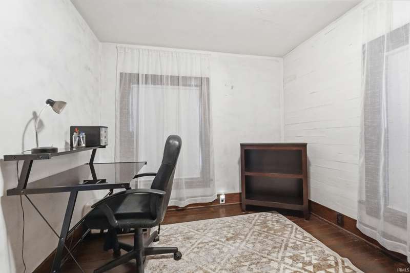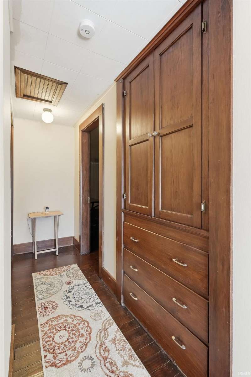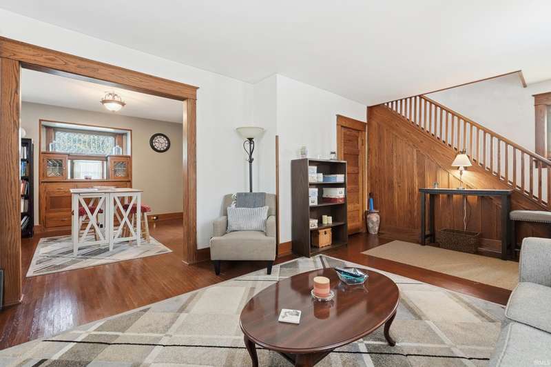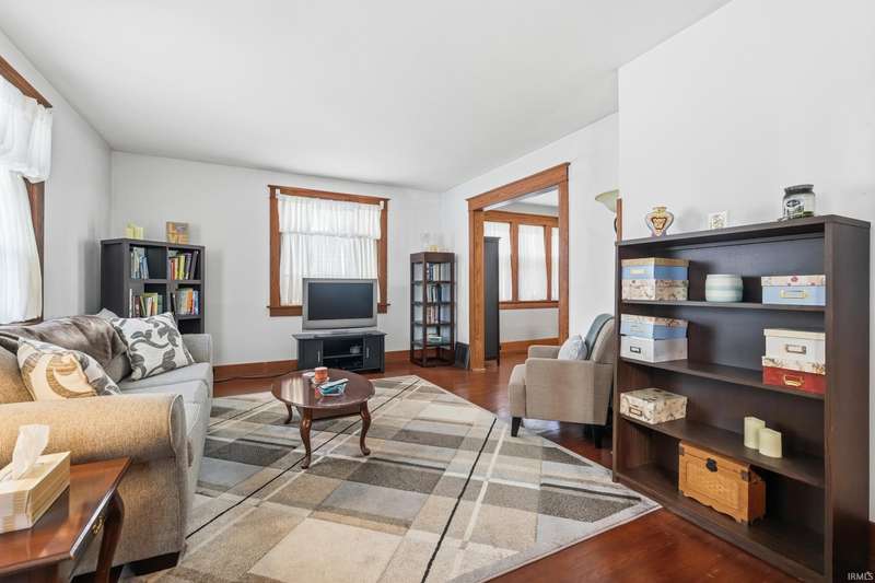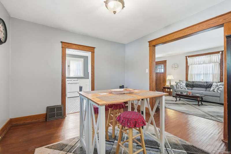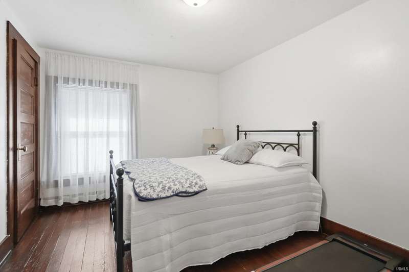 See below for a virtual tour! Welcome to this beautiful brick two-story home that perfectly blends 1920s charm with thoughtful modern updates. This 3-bedroom, 1-bath home showcases a stunning feature stained-glass window at the bottom of the stairwell, original hardwood floors, tall oak baseboards and trim, a built-in china cabinet, detailed leaded glass windows, and built-in linen storage with a gorgeous cast iron tub. The kitchen’s hexagon tile floor and the bathroom’s classic black-and-white ceramic tile remain true to the home’s vintage character. Modern updates include Corian countertops, white cabinetry, a subway tile backsplash, and updated lighting throughout. Enjoy the fully fenced backyard featuring a fire pit and paved walkway leading to the oversized two-car garage—complete with cabinetry, a workbench, and plenty of space for parking and storage. The basement also offers a workshop area with cabinetry and abundant storage. Conveniently located just minutes from downtown shopping, dining, and entertainment—don’t miss your chance to own this timeless Fort Wayne gem!