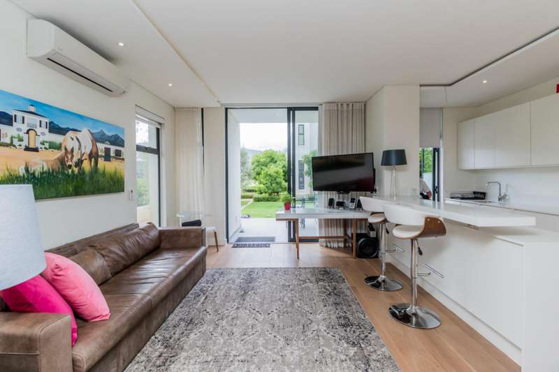 This well-designed and sophisticated ground floor apartment is fully furnished with a well-equipped kitchen that flows to the living area and patio with beautiful mountain views. This apartment is situated within walking distance of the Polo Pavilion, Fleet Coffee, L'Huguenot Wine Cellar and the communal swimming pool. No pets allowed. Internet and two covered parking bays included in the rental price. The rental price excludes water, electricity and DSTV.
