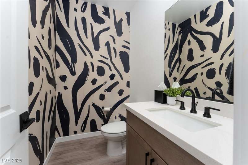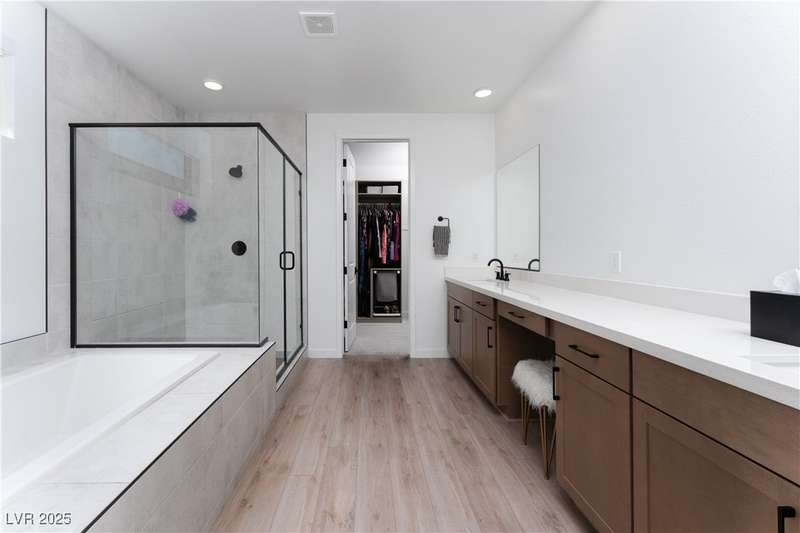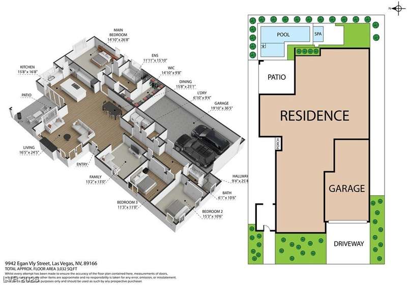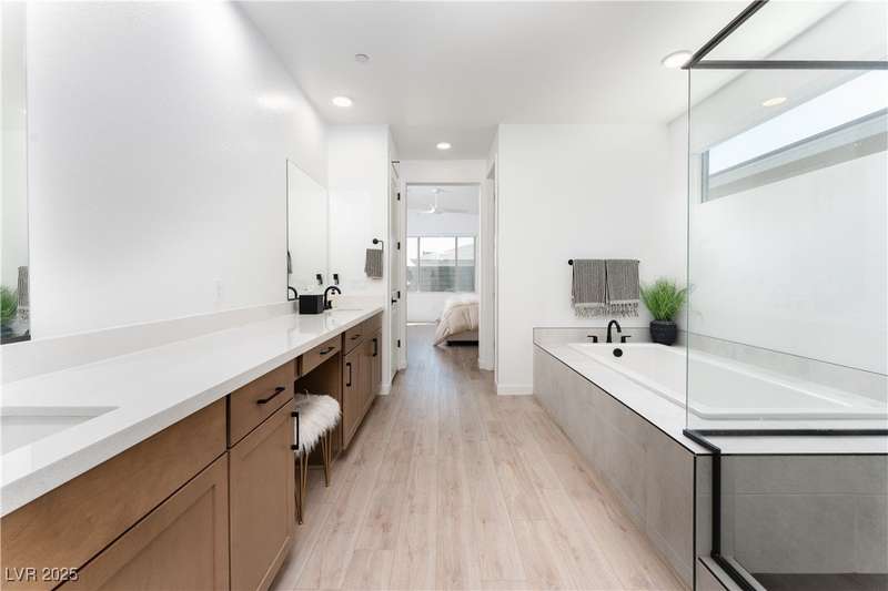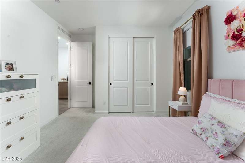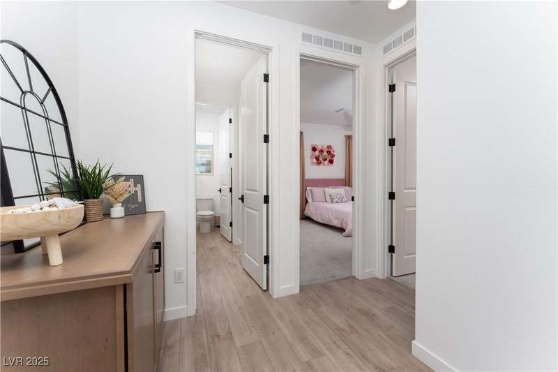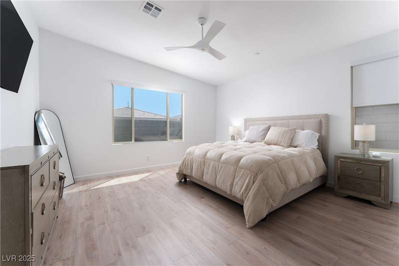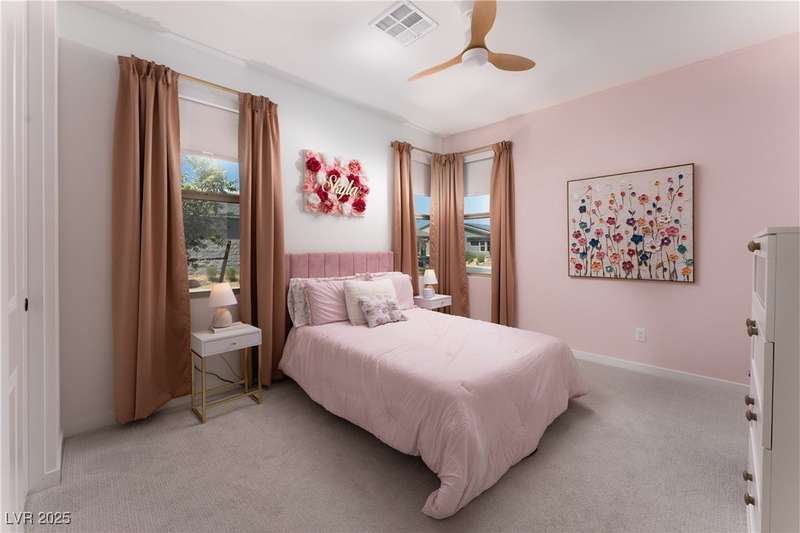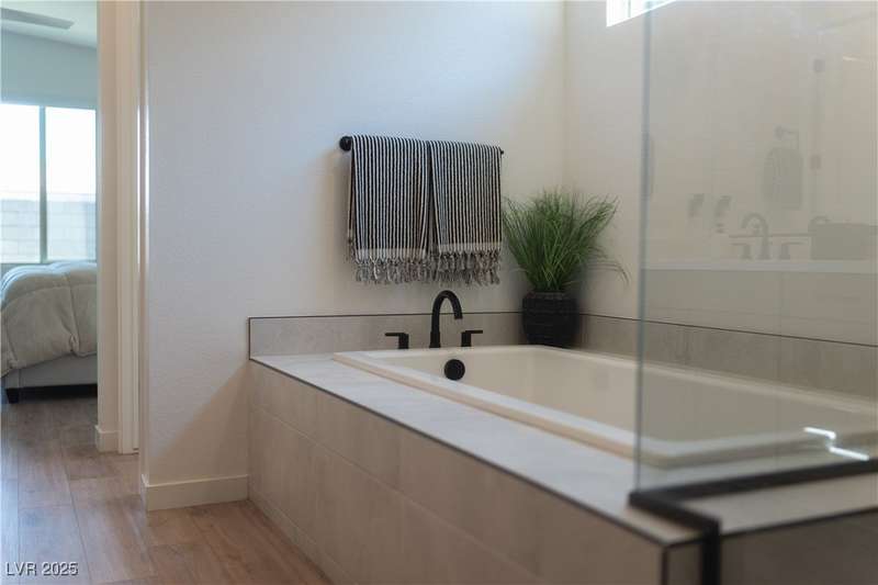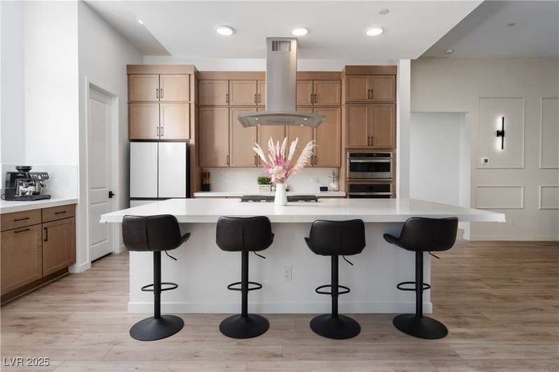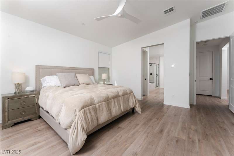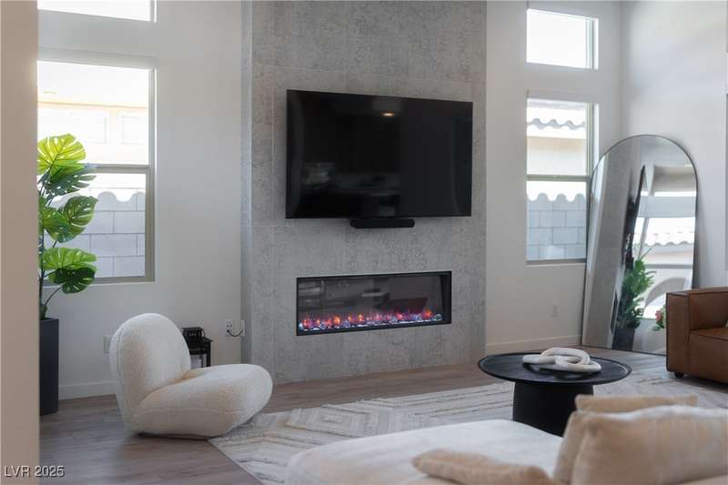 2024 Tri Pointe Home & WITH POOL! WELCOME HOME to this stunning ranch home located in Kyle Canyon, a premiere growing neighborhood in the Northwest. This home shows like a model! First the private courtyard provides an intimate gathering space and first impression. Next, the beautiful interior makes a statement with vaulted ceilings, large windows for natural light, floor-to-ceiling fireplace, and luxury vinyl plank flooring. The large gourmet kitchen features modern cabinets, island with cooktop and hood, and designer quartz countertops. The generous floorplan provides a master bedroom suite separate from the secondary bedrooms in their own wing, plus a den/office flexible space. All bathrooms are beautifully appointed. The best is yet to come with the tranquil backyard with covered outdoor living, modern pool and spa, and grass area, with a backdrop of mountain views. All this, plus Smart Home features and an EV charger for daily convenience!