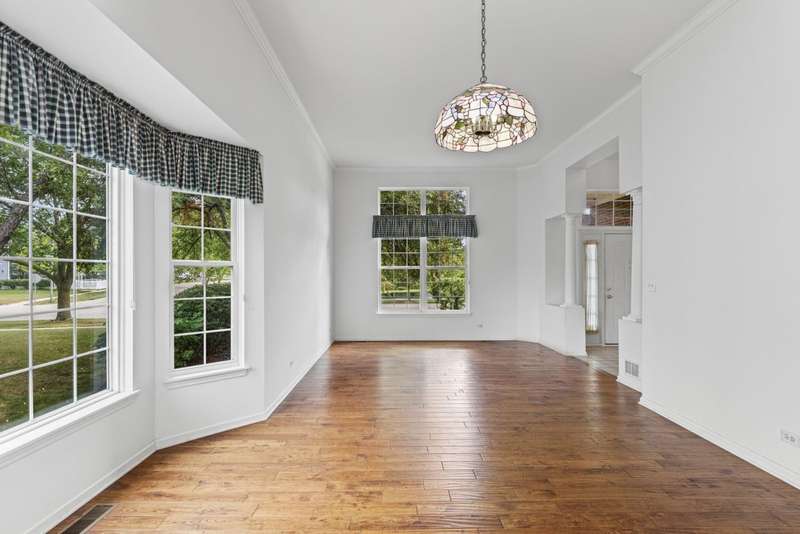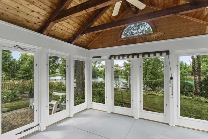 ON the water! 3-Season room overlooks the large pond & professionally landscaped, fenced backyard. Water views from 2 bedrooms, study/loft & the kitchen sink. Timed lighting system beautifies the already tranquil setting. Second pond in front! Do you need a 1st floor bedroom/in-law arrangement? All set, including the step in jetted tub/shower. There's a fenced, brick-paved let the dog out area (to keep your grass nice). Oak treaded staircase. 3-Season Room has full length, removeable windows & screens. Low maintenance composite fencing. Loft easily becomes bedroom #5. Centrally located in the subdivision reduces traffic noise. Oversized downspouts tie into drainage system keeping the home high and dry. Large Aprilaire home filter system for extra air purification. Basement height 8.5-9' tall and 3 escape windows. Very good condition, non-smoking home. Lower pricing reflects wallpaper and kitchen updating. Note: This is an estate. Seller exempt from disclosures and prefers as-is sale. Closing flexible. Dry basement. Executor hired U.S. Waterproofing on 08/07/25 to professionally seal most cracks whether they needed it or not. Receipt attached.