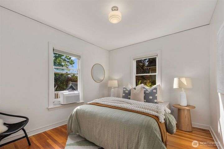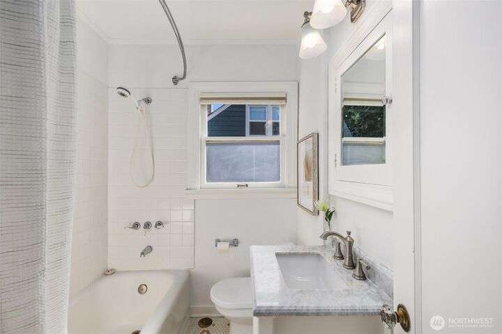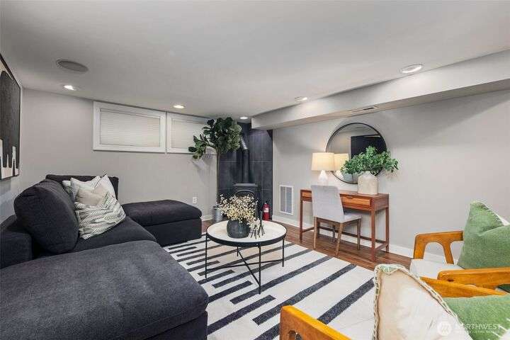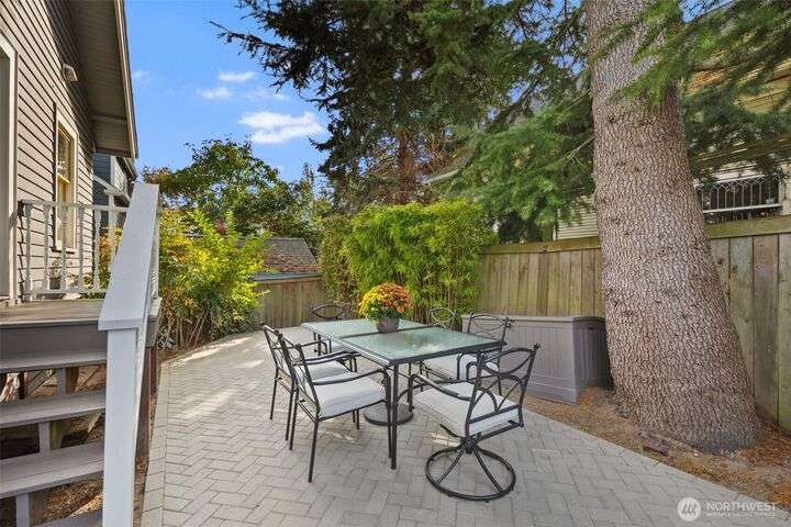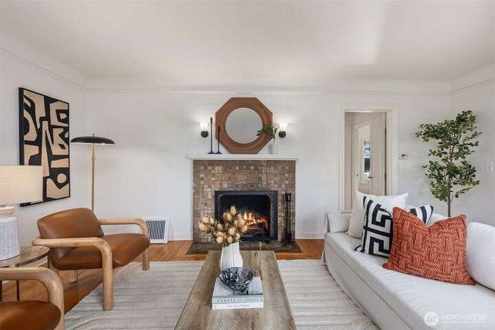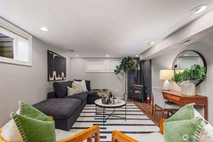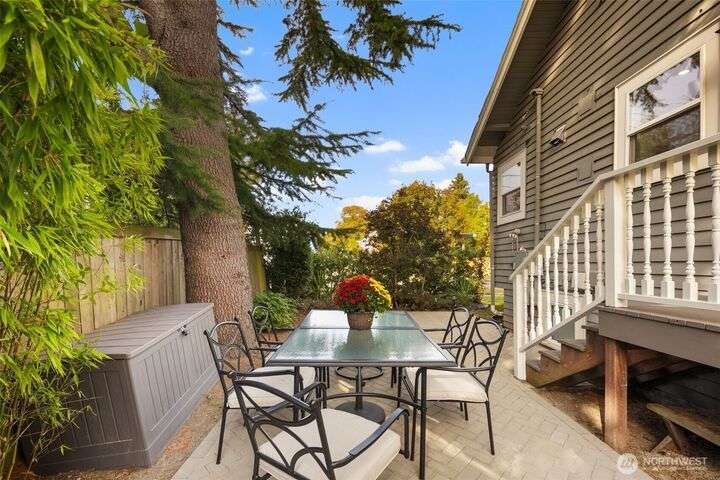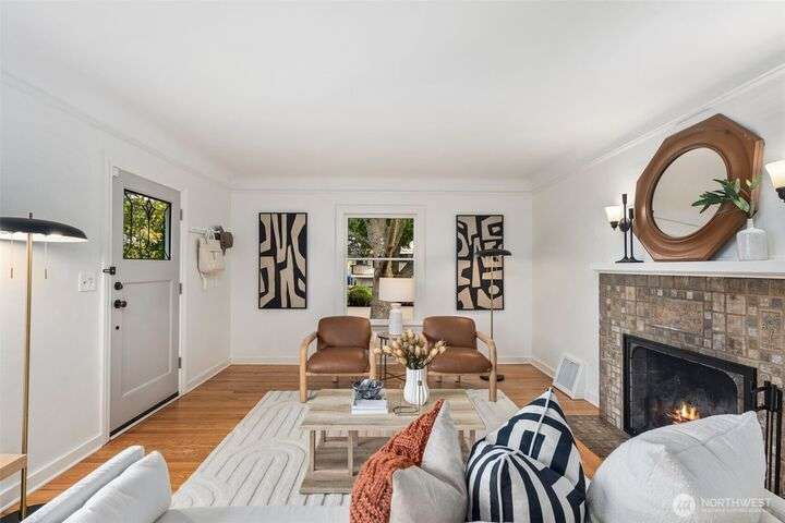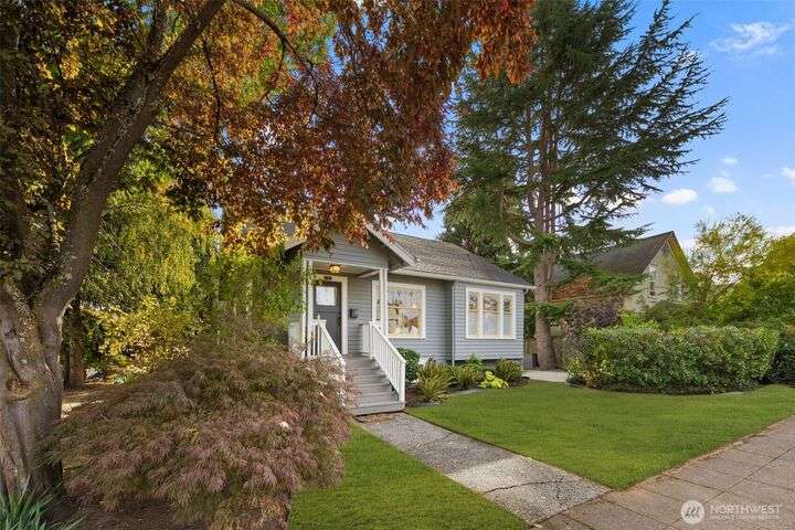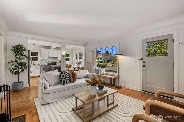 Charming 1930 Ballard bungalow blending classic character with modern updates. The main floor features 2-bedrooms, 1-bath, hardwood floors, a tiled fireplace, picture molding and leaded windows. Enjoy cooking in the remodeled open kitchen that leads to a private patio and secret garden. The fully finished basement includes a spacious family/media room with free standing fireplace, 3/4 bath, and third bedroom. Enjoy updated wiring and plumbing, plus an attached garage with epoxy flooring. The attic offers 8’ peak clearance and potential for stunning views. Perfectly located near Ballard’s shops, restaurants, and the Farmer’s Market—walk to everything you love!