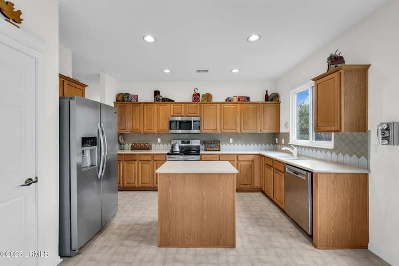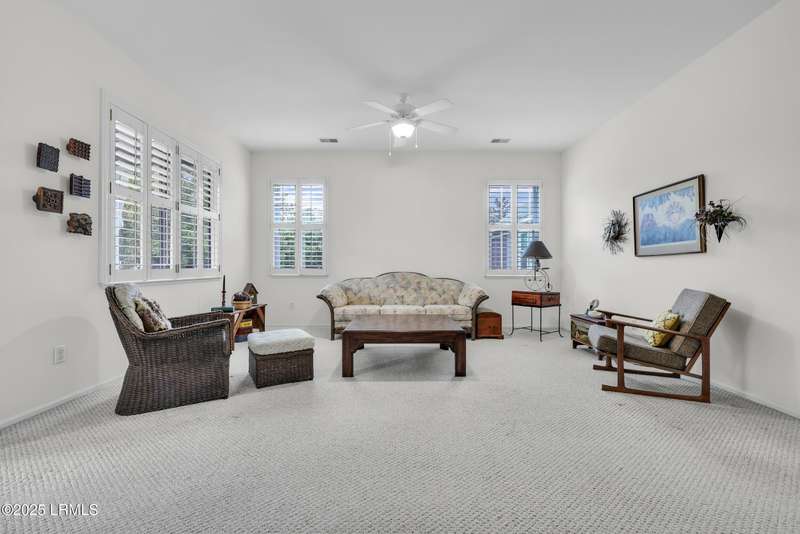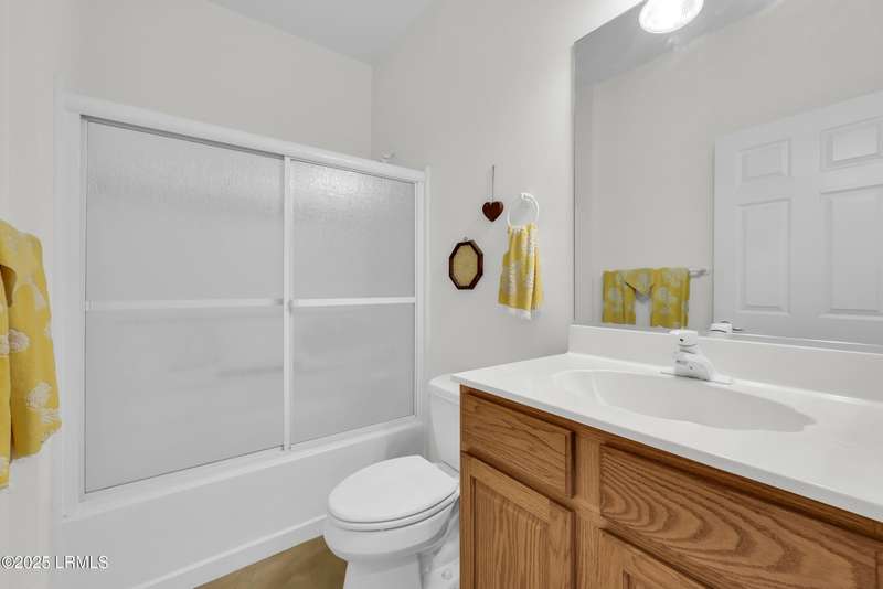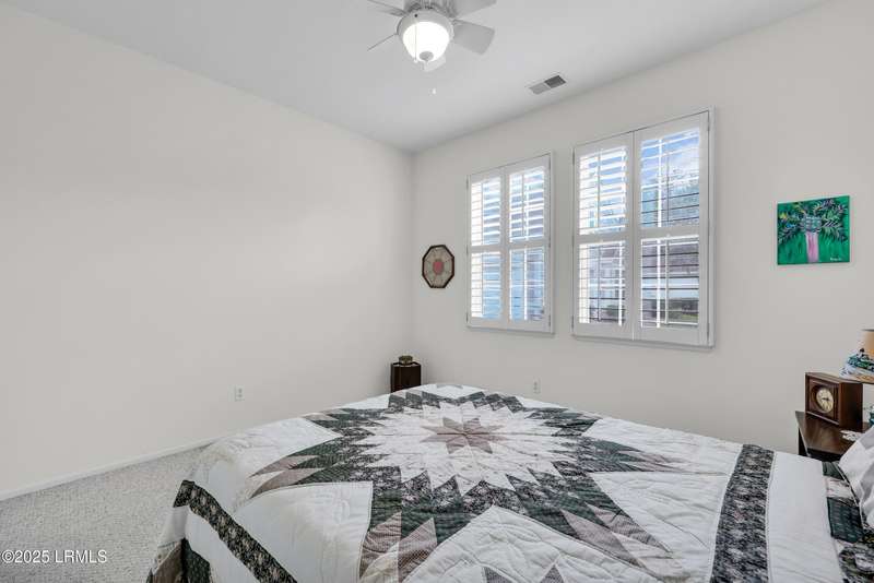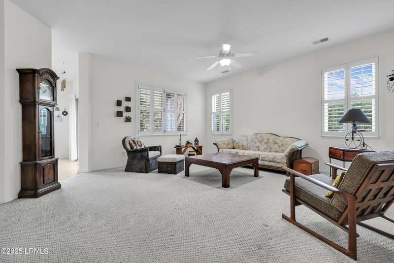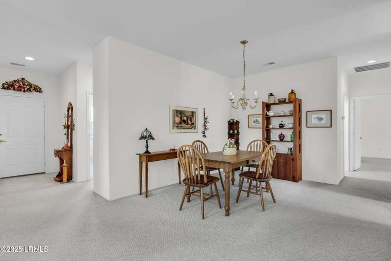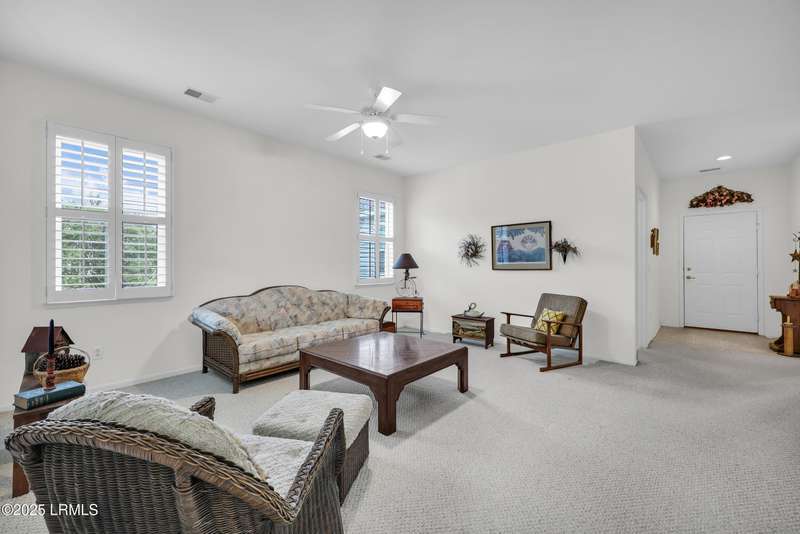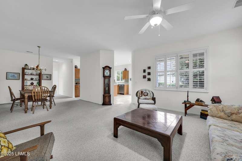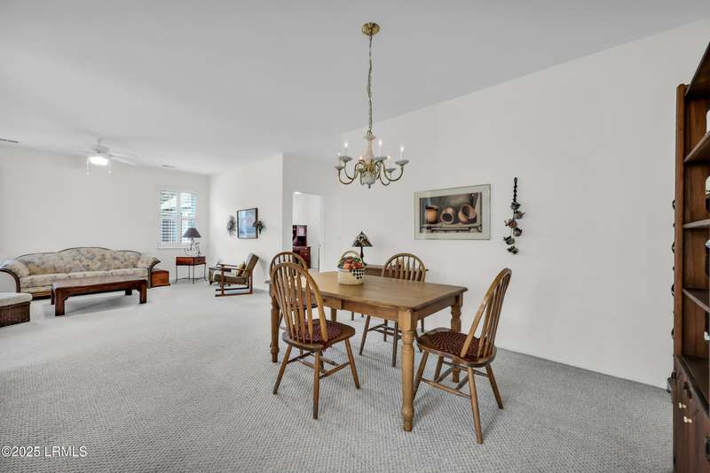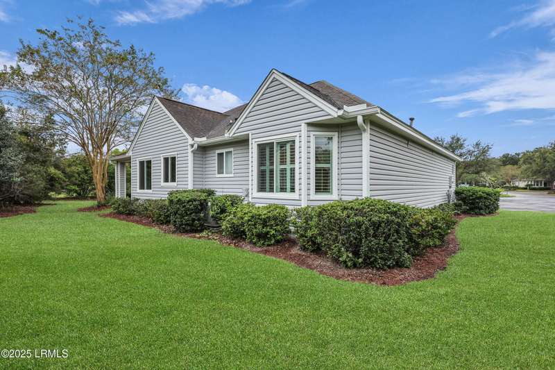 Welcome home to this charming 2-bedroom, 2-bathroom Dickinson villa tucked away on a quiet cul-de-sac in Sun City Hilton Head. This thoughtfully designed home offers spacious rooms throughout, including a kitchen with abundant cabinet storage, a center island, and a cozy eat-in area. The primary suite features a bay window and custom closet shelving, while the guest bedroom is generously sized for comfort. Enjoy versatile living with a den/flex room and a laundry room complete with sink and cabinetry. Outdoor living shines with both covered front and back porches—ideal for relaxing or entertaining. An oversized two-car garage provides ample space for parking and storage. This home combines comfort, functionality, and Lowcountry charm.