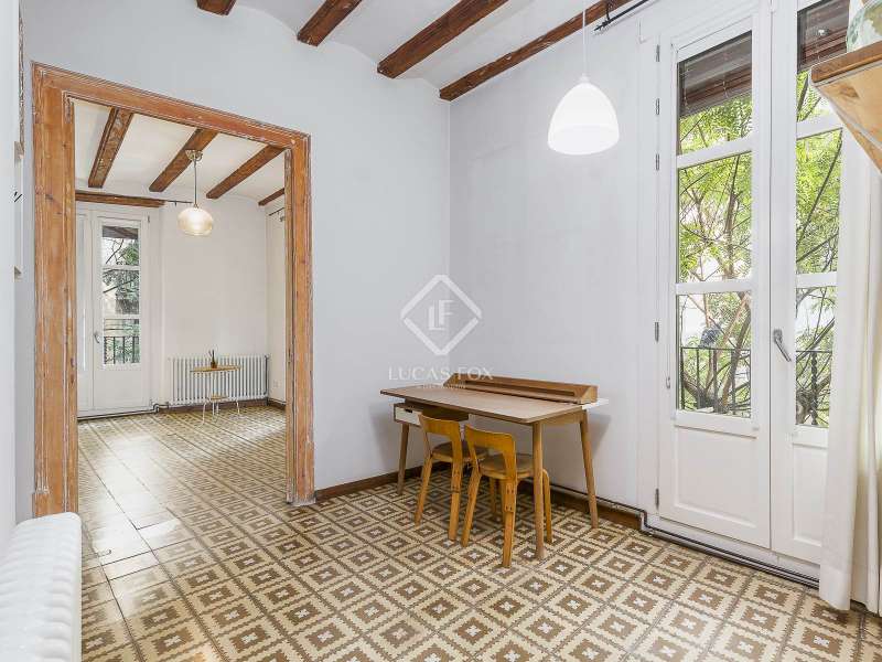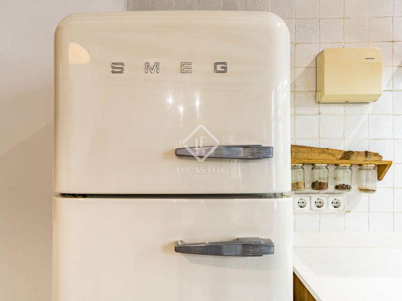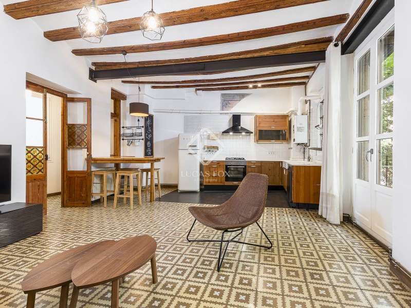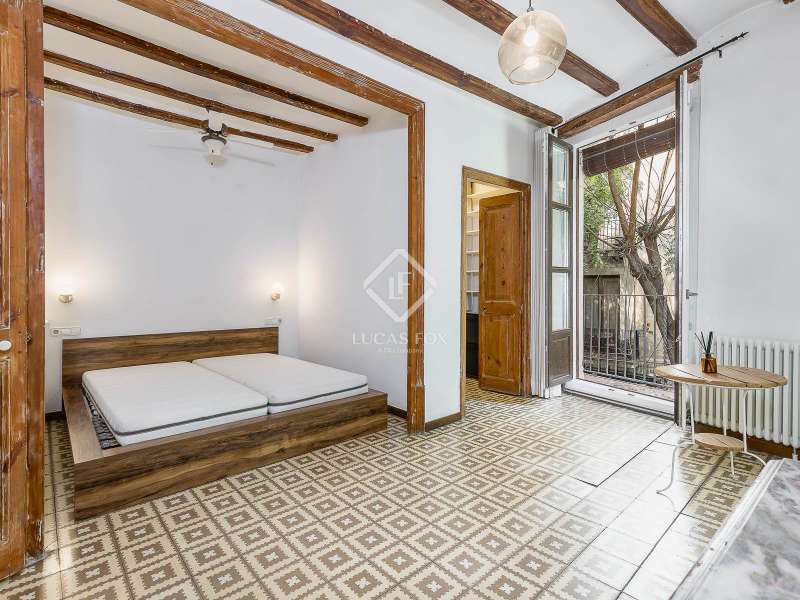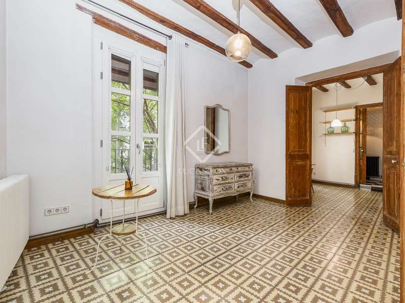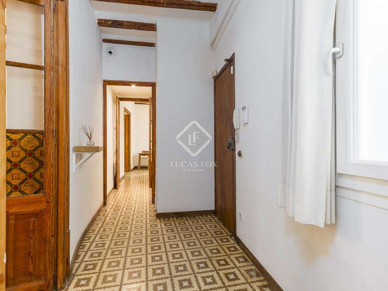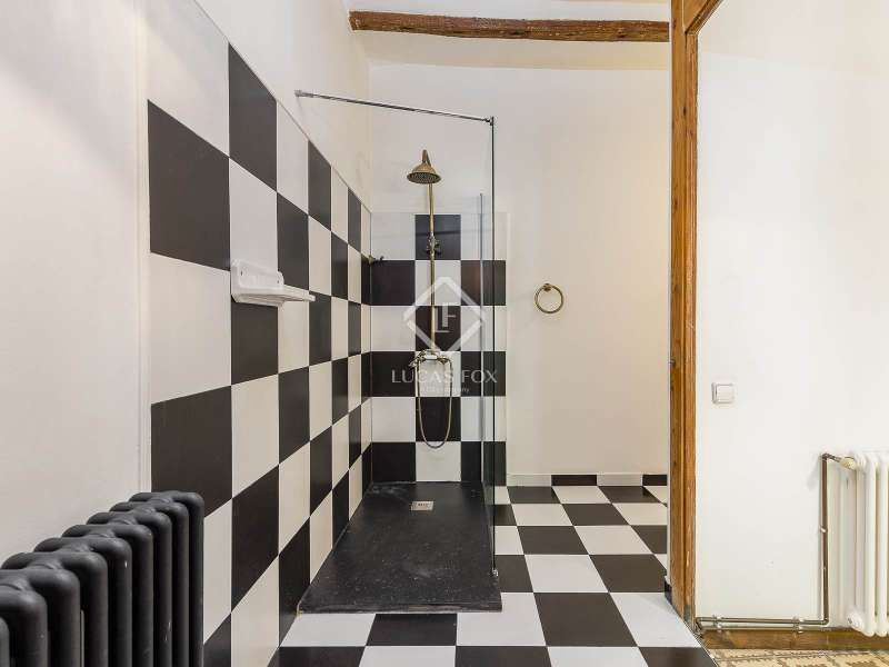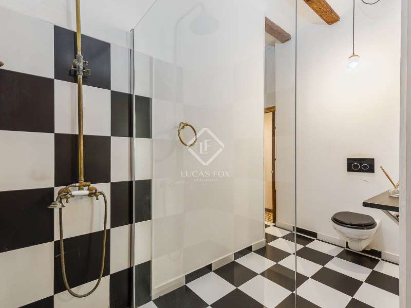 Step into a piece of Barcelona’s history with this spacious 95 m², 2-bedroom corner apartment in the heart of El Born. Brimming with character, it features original mosaic floors, elegant wooden beams, and four charming balconies that flood the home with natural light. The heart of the home is the large and cosy living and dining area with an open-plan kitchen, perfect for entertaining or relaxing in comfort. The main suite is truly exceptional, so spacious it includes three private balconies, a study area, a walk-in wardrobe, and a large bed. In the walk-in wardrobe, a mirror is installed in front of the window, creating the perfect spot for a morning routine of skincare or make-up in natural light. The bathroom is equally impressive, designed with a chic, chessboard-inspired style and a generous walk-in shower. Modern comforts blend seamlessly with historic details: ducted air conditioning, efficient gas radiator heating (6 in total), and premium appliances including a Smeg fridge/freezer and Siemens dishwasher, washer/dryer, and oven. Located on the first/second real floor, the apartment is easily accessible with comfortable stairs. While there is currently no lift, there is a possibility of one being installed in the future, although no official timeline has yet been agreed. This rare property combines authentic Barcelona charm with the conveniences of modern living, all set in one of the city’s most sought-after neighbourhoods. Please contact us for further information.