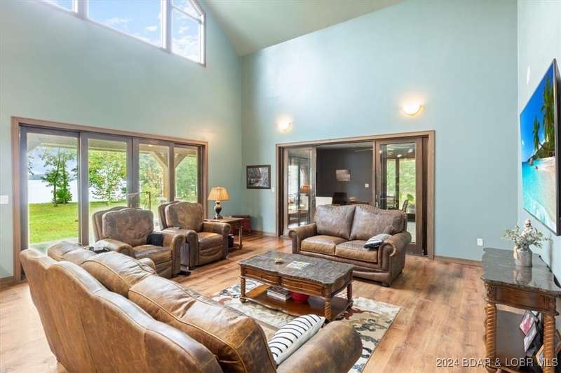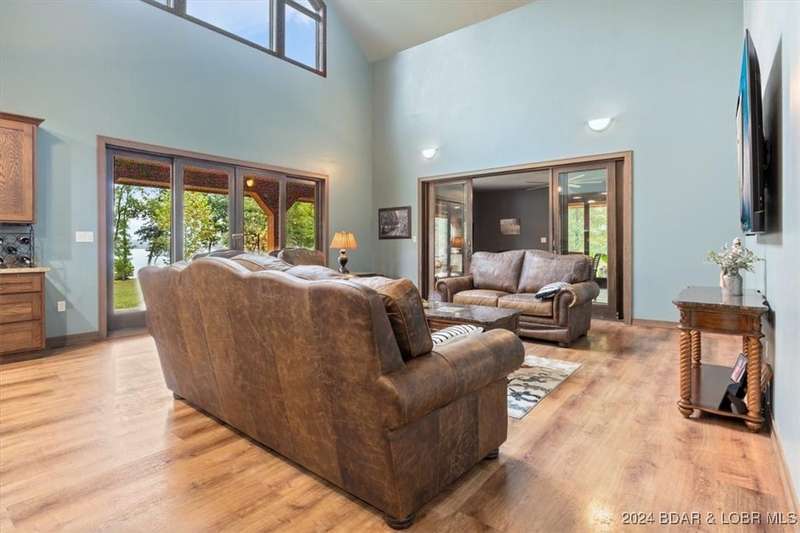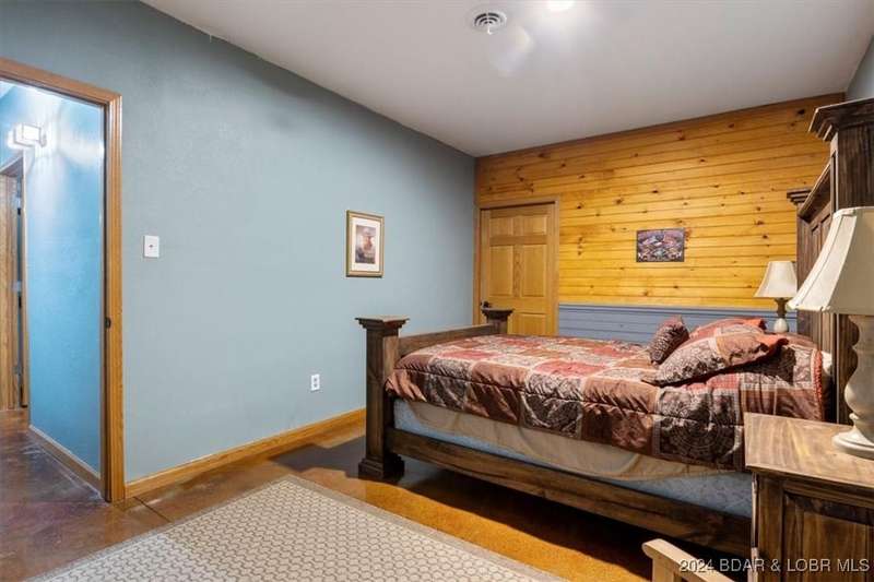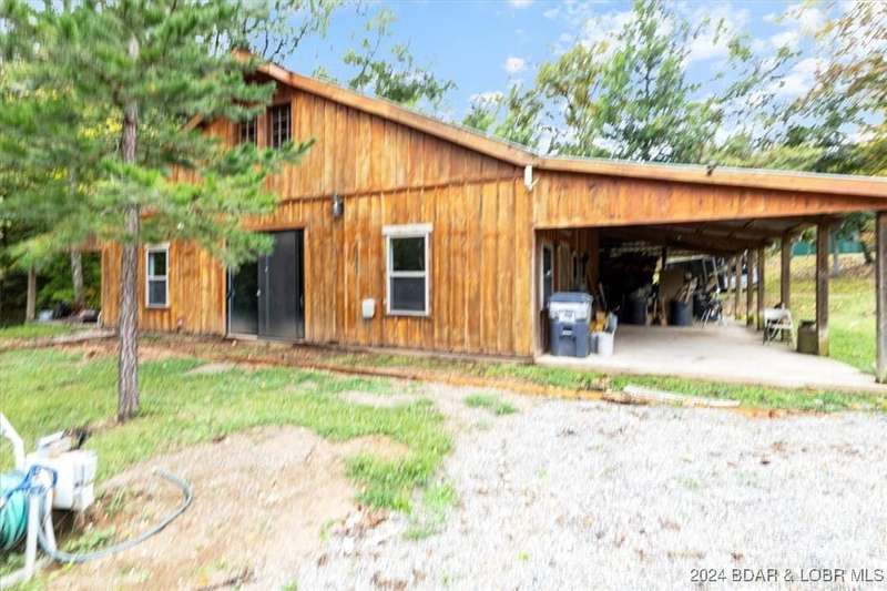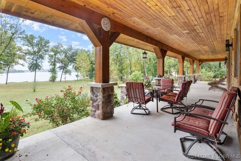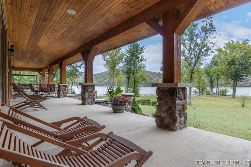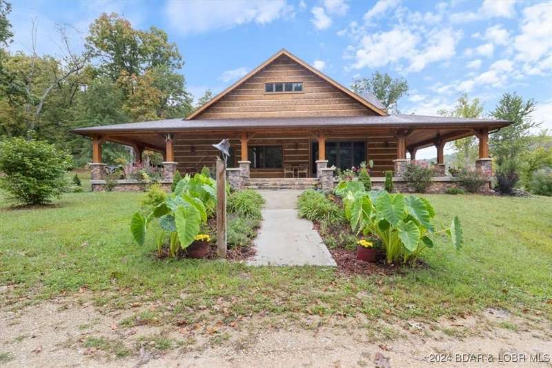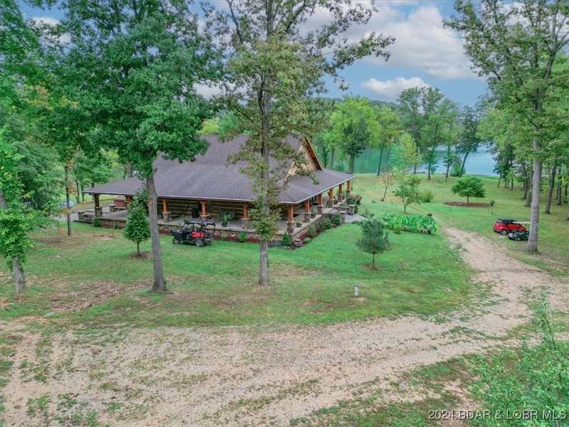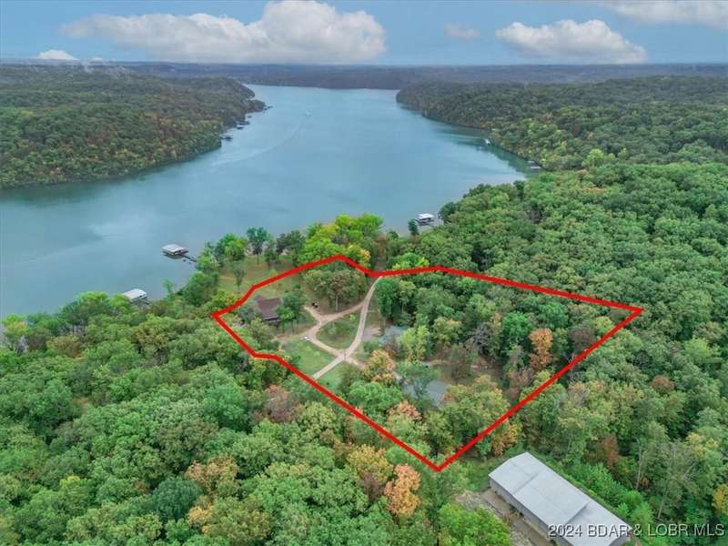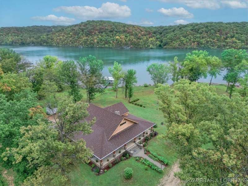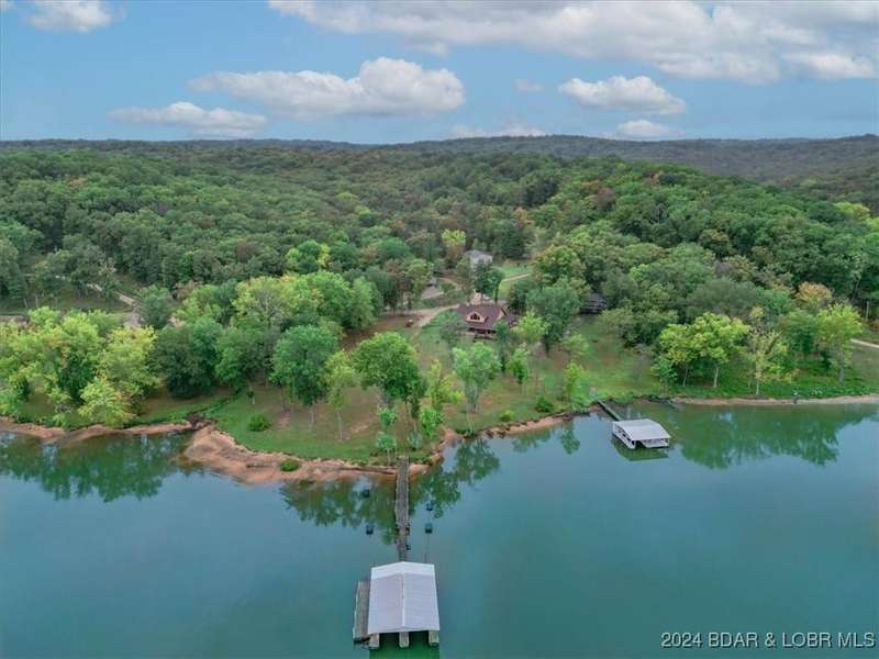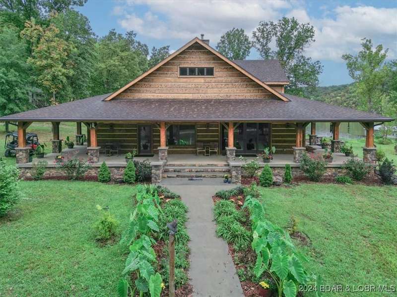 We're thrilled to present this waterfront retreat, located in Buffalo Cove. Situated on4.2 +/- ac, this custom-built log home's on a gently sloped lot, boasting breathtaking views & easy access to your dock. Rustic charm of a classic log cabin, the exterior features high-end synthetic logs & chinking for low maintenance. Wraparound covered concrete porch, complete w/stone & cedar posts. Outdoor area offers plenty of space to relax, cook, or entertain w/views. The conversation room, w/its large stone fireplace, is the ideal spot to relax w/family & friends. Custom kitchen w/stunning woodwork & granite countertops, seamlessly flowing into the open living area. Down the hall, youll find a 1/2 bath, office, guest room, and the master suite, all designed for main-level living & convenience. Downstairs- 3 bedrooms, full bath & spacious family room, also includes a large tandem 2car garage & utility room. Charming guest lodge w/3 beds & 1 bath. Large shop, for storage and lake toys. W/285' of waterfrontage on a quiet cove, this offers both seclusion & proximity to the vibrant lake life, just a short boat ride away. This is more than a homeit's the ultimate lakeside sanctuary.