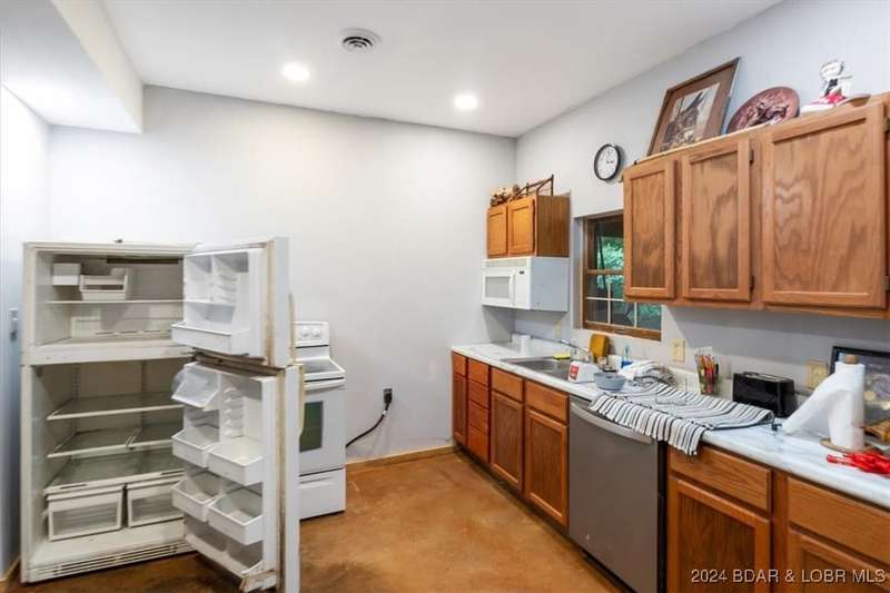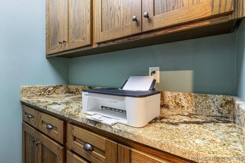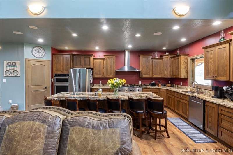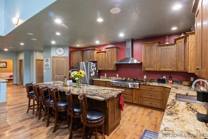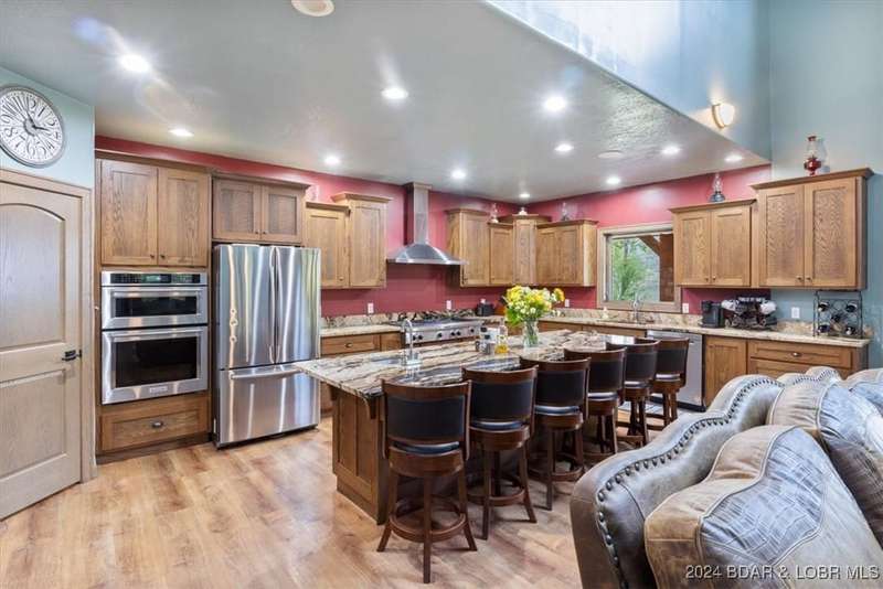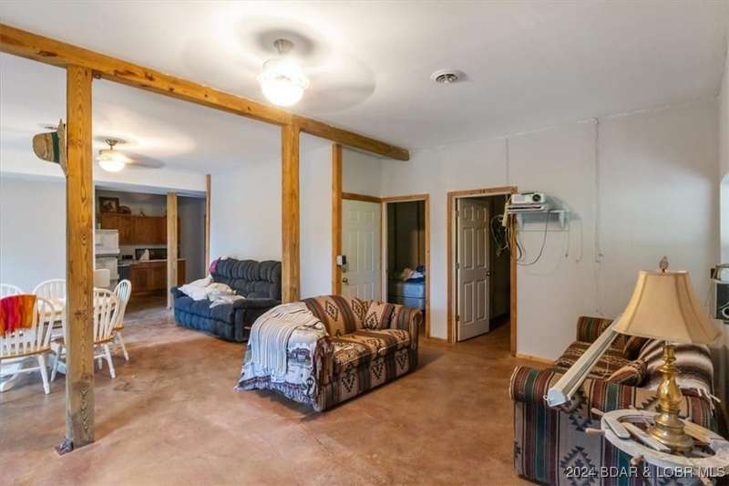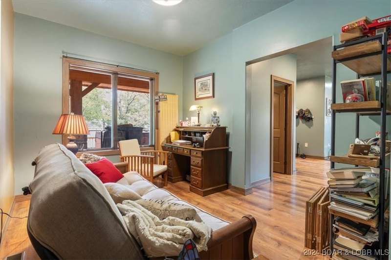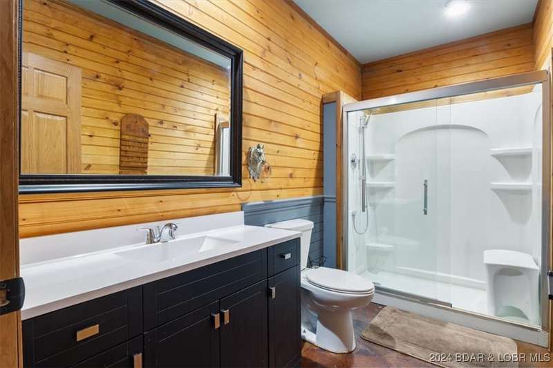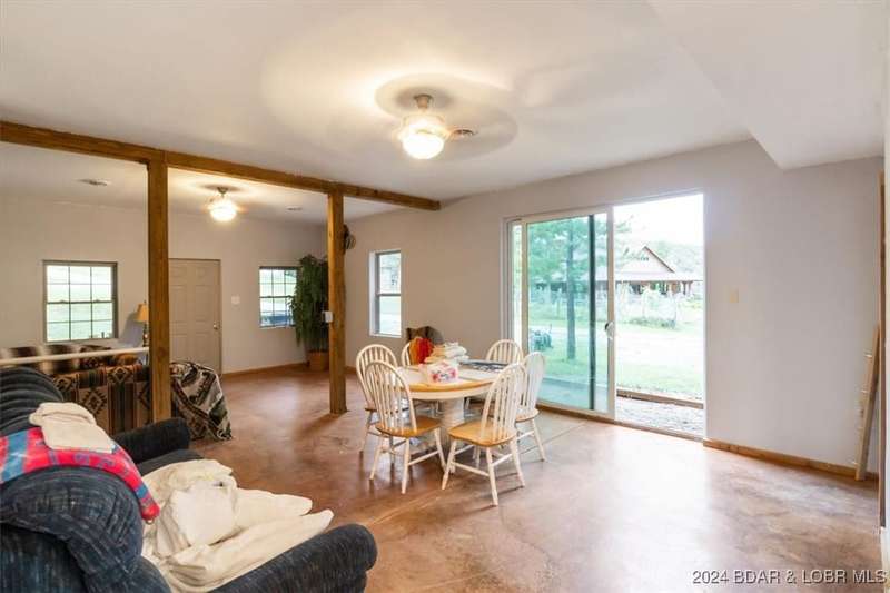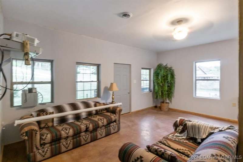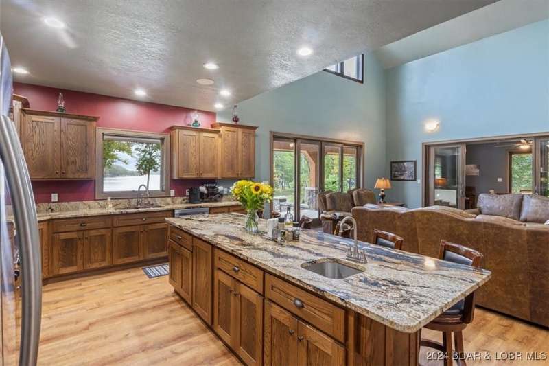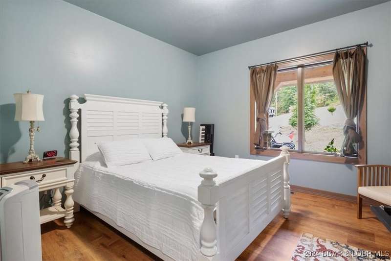 We're thrilled to present this waterfront retreat, located in Buffalo Cove. Situated on4.2 +/- ac, this custom-built log home's on a gently sloped lot, boasting breathtaking views & easy access to your dock. Rustic charm of a classic log cabin, the exterior features high-end synthetic logs & chinking for low maintenance. Wraparound covered concrete porch, complete w/stone & cedar posts. Outdoor area offers plenty of space to relax, cook, or entertain w/views. The conversation room, w/its large stone fireplace, is the ideal spot to relax w/family & friends. Custom kitchen w/stunning woodwork & granite countertops, seamlessly flowing into the open living area. Down the hall, youll find a 1/2 bath, office, guest room, and the master suite, all designed for main-level living & convenience. Downstairs- 3 bedrooms, full bath & spacious family room, also includes a large tandem 2car garage & utility room. Charming guest lodge w/3 beds & 1 bath. Large shop, for storage and lake toys. W/285' of waterfrontage on a quiet cove, this offers both seclusion & proximity to the vibrant lake life, just a short boat ride away. This is more than a homeit's the ultimate lakeside sanctuary.