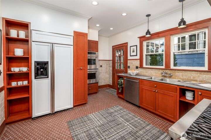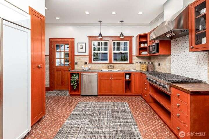 Beautifully renovated 1914 Arts & Crafts home on quiet tree-lined street. Original charm preserved & adorned in (2017/2018) w/new custom cabinetry, Viking/Miele, roof, heating/plumbing & full electrical upgrades + bath renovation (2025). Chef’s kitchen opens to a covered porch leading to a private backyard oasis w/brick planters/fountain; perfect for hosting or relaxing. A block to Rocket Taco, Zeeks, Macrina, Fuel, Hello Robin & local grocer. Ample resident street pkg; nearby shop activity mostly 12–6pm. 2-level/2-bed/2-ba+bonus rms on main & lower + charming upper 1bd/1ba apt (leased, subj. to tenant rights). Enjoy $2K/mo of income, or reconnect all 3-levels at a later date by adding a doorway in the foyer. Ask your broker for #B photos.
