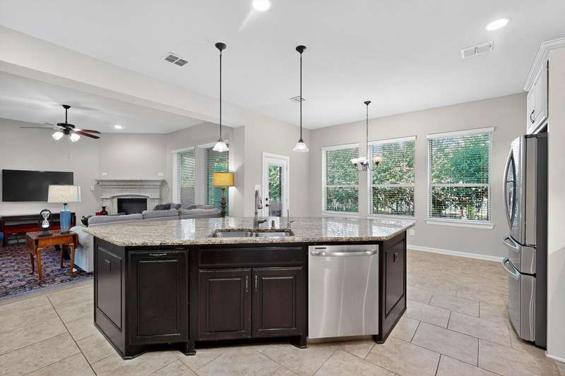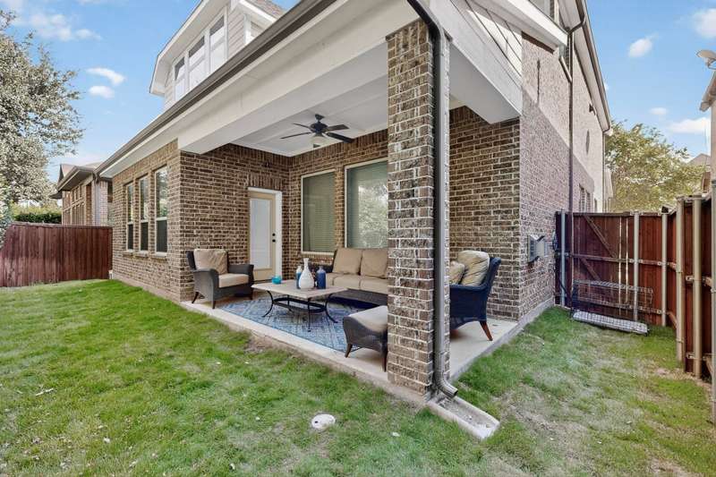 Stunning home located in a gated community just minutes from the University of Texas at Dallas (UTD), shopping and dining. This property boasts an open-concept floor plan filled with natural light. The spacious living area features a wall of windows and an elegant fireplace, creating a warm and inviting atmosphere. The modern kitchen is equipped with upgraded GE profile gas cooktop, plenty of white cabinetry, granite countertops, stainless steel appliances, a oversized island-breakfast bar and a stylish tile backsplash, all seamlessly connected to the living space, perfect for entertaining.Upstairs, you'll find the expansive primary suite, along with a luxurious bath featuring a free-standing tub and an oversized walk-in shower. Two additional bedrooms, a full bathroom and a versatile den or flex space, and a convenient laundry room are also located on the second floor, providing both privacy and functionality.Step outside to a covered patio just off the breakfast area perfect for relaxing.