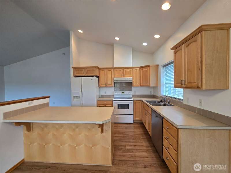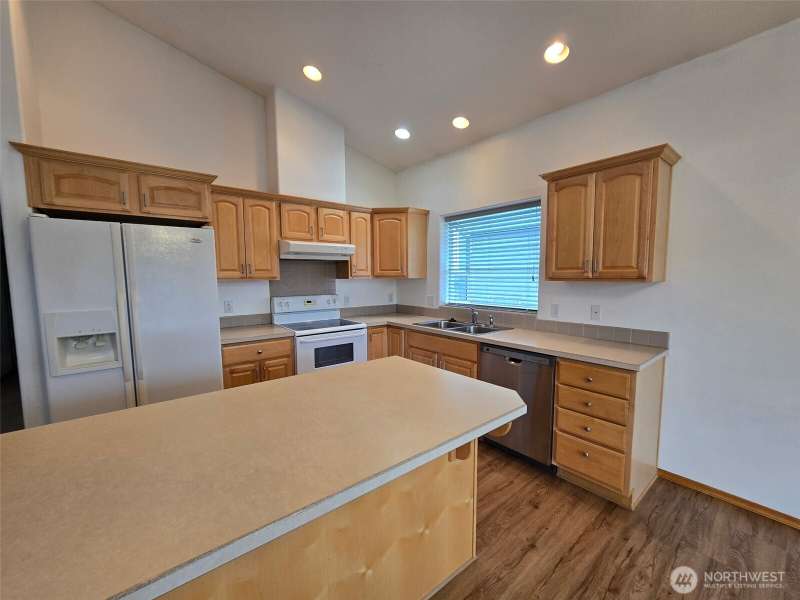 Mountain views and convenient location, this 3 bed, 2 bath home is move in ready! One level living with an open layout and vaulted ceilings. Light, bright and airy home. Kitchen with breakfast bar overlooks dining room with beautiful mountain views. Primary bedroom has huge walk in closet and easy entry shower. Double car garage. Tons of storage. Close to shopping, restaurants and schools.