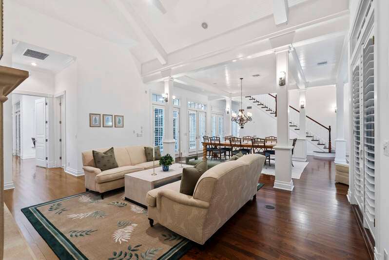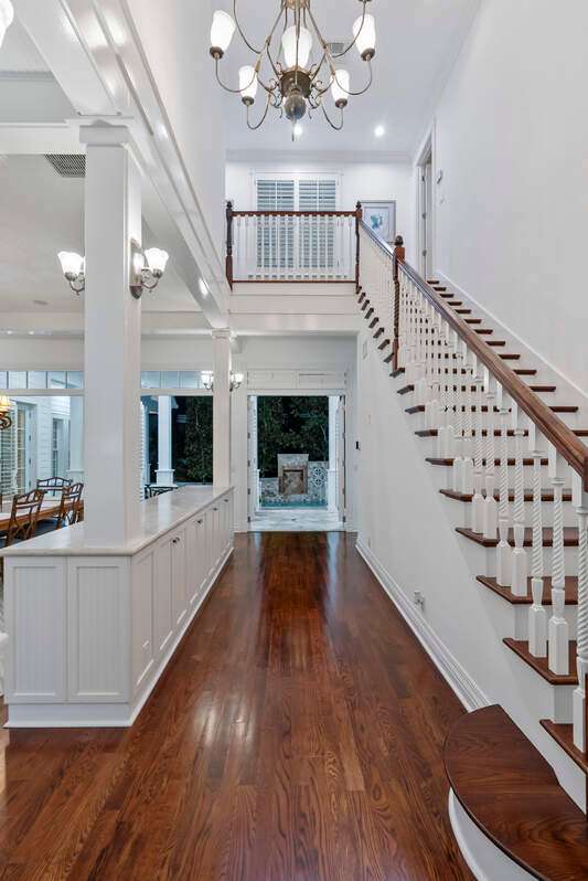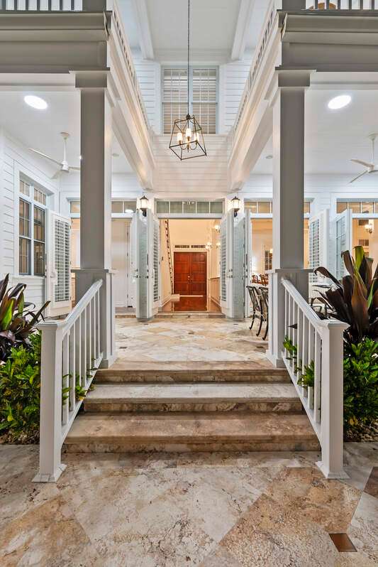 Discover an extraordinary opportunity, a Grand Family Retreat in the Heart of Naples with an unmatched location and irreplaceable corner, oversized lot! Seamlessly blending elegance with the comfort of modern living, this five bedroom plus den residence is a warm and welcoming haven, that exudes both timeless charm and contemporary luxury. From the moment you step into the impressive foyer, you'll sense the home's inviting spirit. Rich wood flooring, a coastal fireplace, and bright natural lighting all set the tone for refined yet relaxed living, perfect for both quiet family evenings and lively gatherings with friends. At the heart of the home lies an elegant family room and kitchen with its vaulted ceiling, abundance of cabinetry and integrated appliances with gas range, making family breakfasts or weekend entertaining a delight. This airy oasis invites you to linger over meals while enjoying soothing views of the private outdoor swimming pool surrounded by lush greenery. Meticulously maintained throughout, and a brand-new roof, skylights and gutters installed as of the end of 2024 as well as freshly painted. Whether you are looking to relax, work, study or more, a comfortable study/TV room offers a peaceful retreat, ideal for balancing productivity and relaxation. Additional amenities like the front porch to watch the sunsets elevate everyday living and roof top to watch the world go by. Ground floor primary suite features a fully fitted dressing room and large ensuite bathroom, a soothing sanctuary at day's end. A further generous first floor guest suite overlooks an enchanting garden courtyard. Venture upstairs to discover three further double bedrooms, all with ensuite bathrooms and balconies. This remarkable home, steps from the beach and a short walk to Third Street Shops and Dining is an invitation to create cherished memories in a setting that embodies Naples most appealing qualities: heritage, community, and effortless access to both the Gulf Coast and the city. Embrace a lifestyle that celebrates the best of Naples charm and urban sophistication-all in one exceptional family residence.