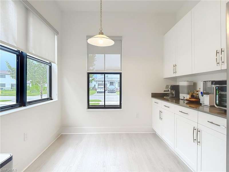 New to market comes this Encinitas model with oversized lot in Silverwood at Maple Ridge in the award winning community of Ave Maria. This 4 bedroom 3.5 bath + loft home features master bedroom on 1st floor and over 2,200sqft. Kitchen features quartz counters, white shaker style cabinets, breakfast nook, lots of counter space and sink overlooking living space and lake views! Upstairs you will find 3 bedrooms and 2 bath and spacious loft. Home features screned in front porch, large backyard lanai with pan roof extending outdoor living area. Home is fully fenced with large side yard. Plenty of room for kids play area. As part of the Maple Ridge community residents have access to the Club at Maple Ridge, the multi-million dollar ameneity clubhouse with pool, play area, walking path, party room, gym, steam sauna, dog park, billiard, poker/game room and more! Additional amenitites include waterpark, bike/jogging paths, town gym, sports parks, playgrounds, tennis, pickleball, shopping and restaurants.