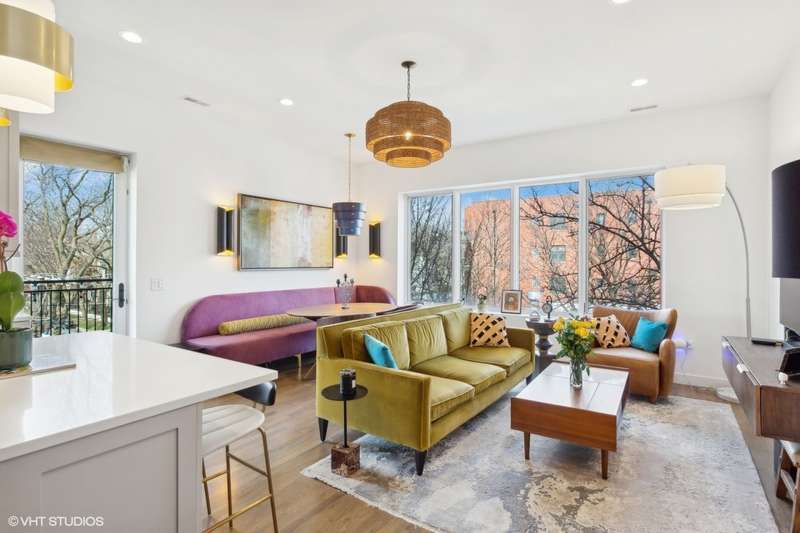Experience modern luxury in this stunning 3-bedroom, 2-bath residence at The Legacy Lincoln Square, a boutique eight-unit elevator building built in 2020. This one of a kind unit was thoughtfully designed by Jasmin Reese Designs and featured in Modern Luxury Interior Chicago! Overlooking Carmen Ave. (not Lincoln) this unit features soaring 10-foot ceilings, abundant natural light, and a thoughtful open-concept layout creating an inviting sense of space. The designer kitchen features Jenn-Air stainless steel appliances, custom Siteline cabinetry, Caesarstone quartz countertops, and Signature Hardware fixtures, all complemented by white oak hardwood floors throughout. The spacious primary suite offers a spa-inspired bath, while two additional bedrooms provide flexibility for guests, an office, gym, or hobbies. Enjoy attached garage parking with EV charger and unwind on either your own private terrace (west facing for great sunsets) or the finished common rooftop deck with sweeping skyline views. Nestled on a quiet corner in the heart of vibrant Lincoln Square, this home offers easy access to shops, dining, parks, and public transit, all within highly rated Budlong Elementary and Amundsen High School boundaries. Great unit you won't want to miss!