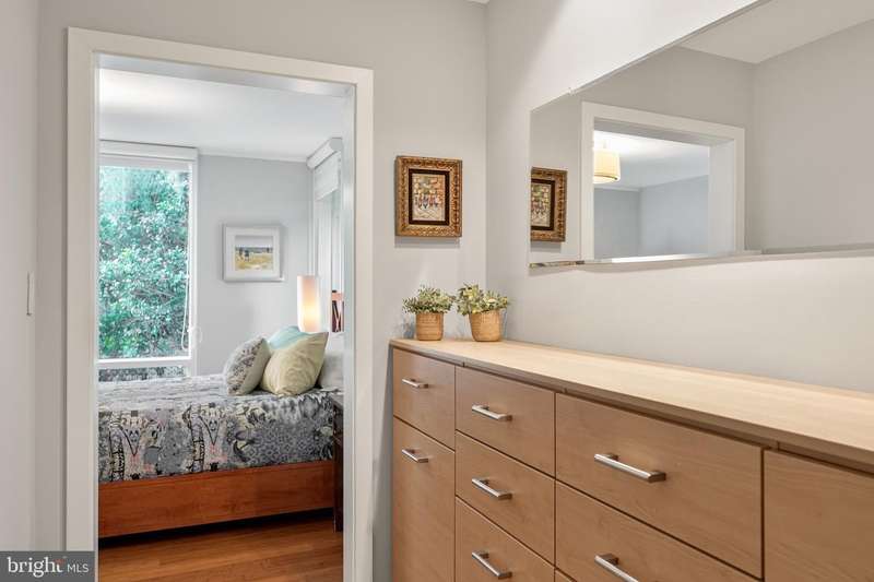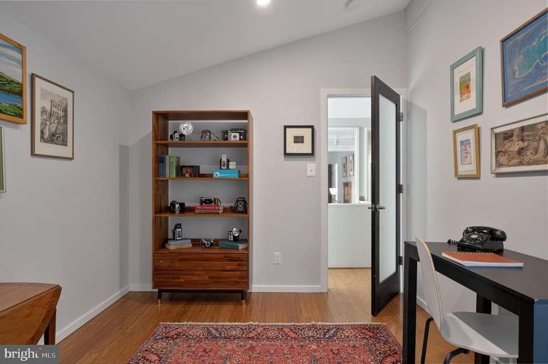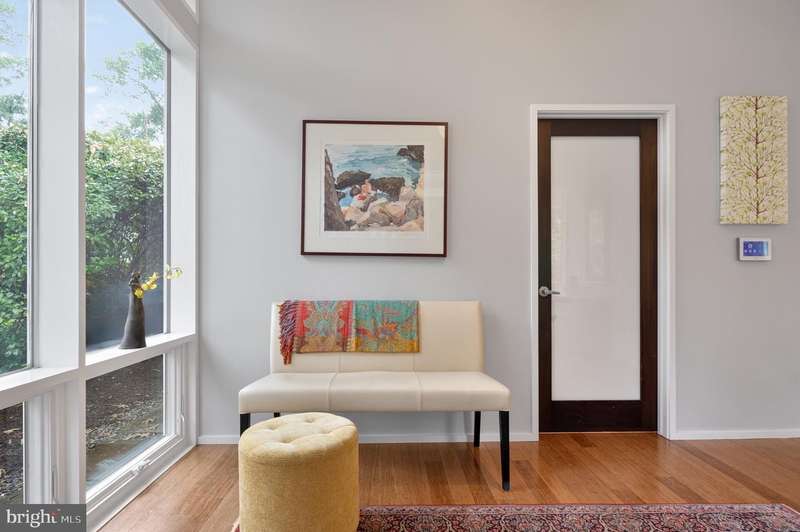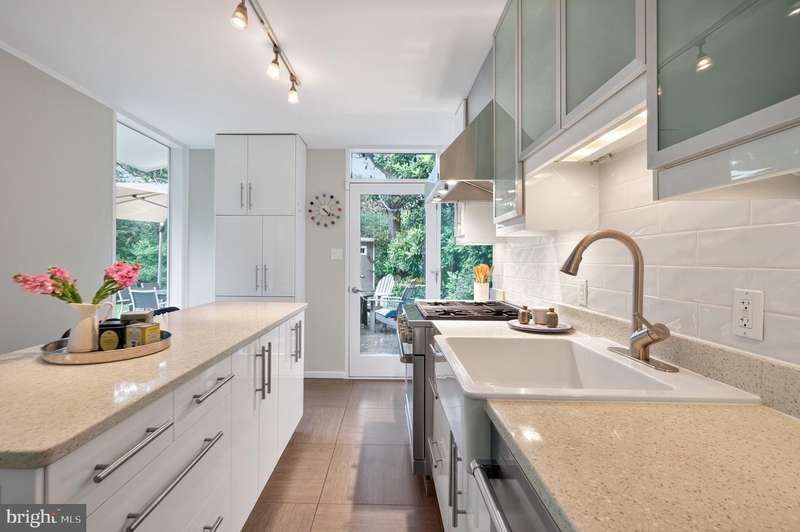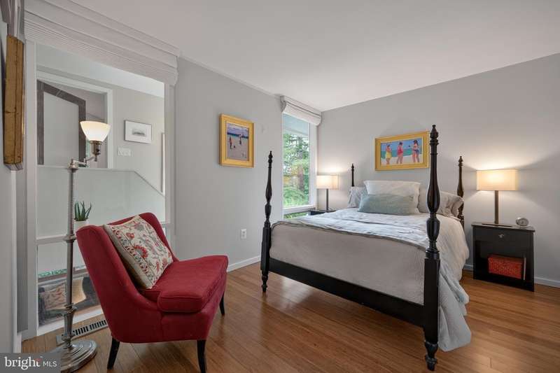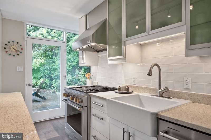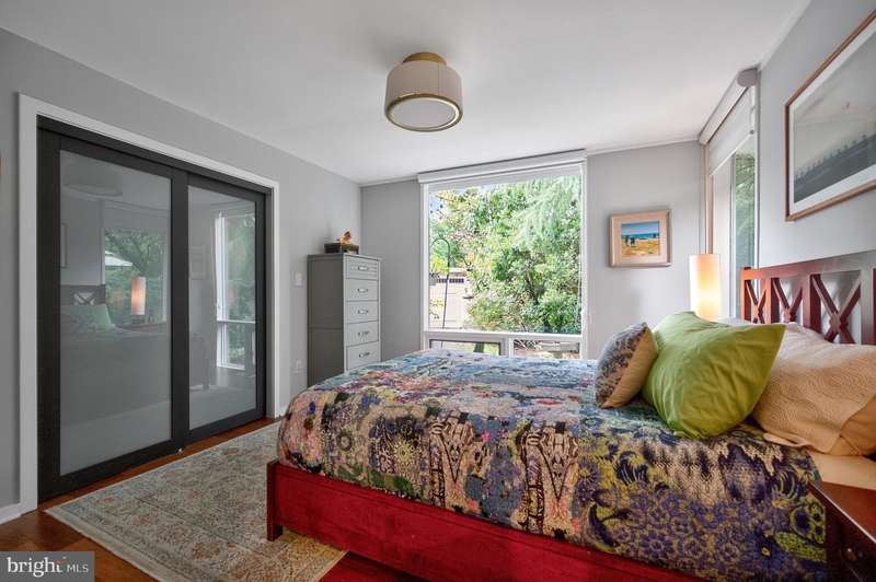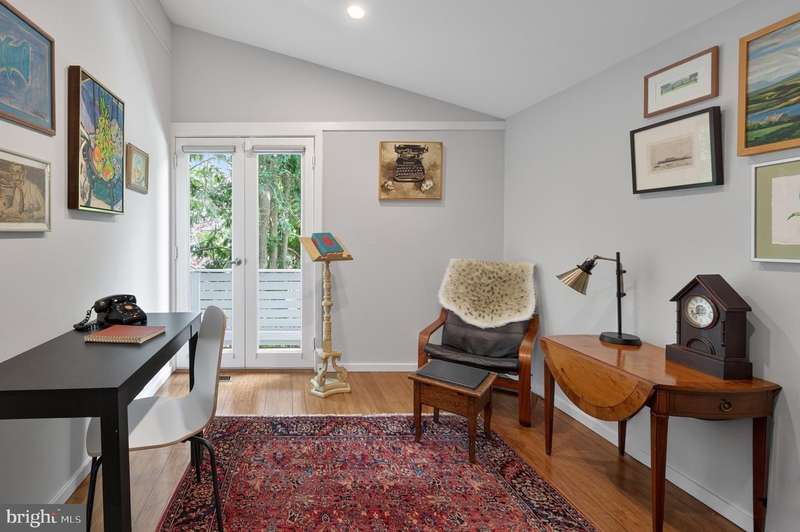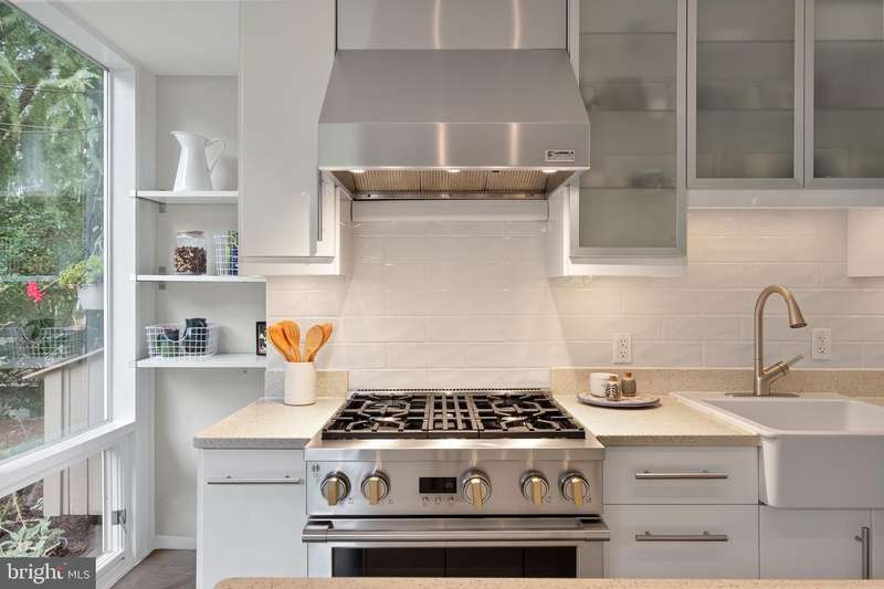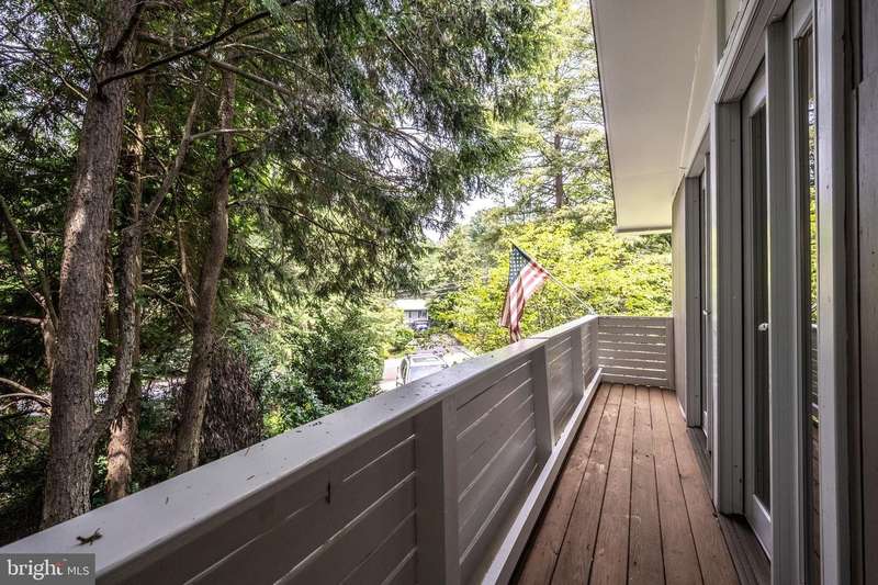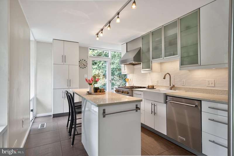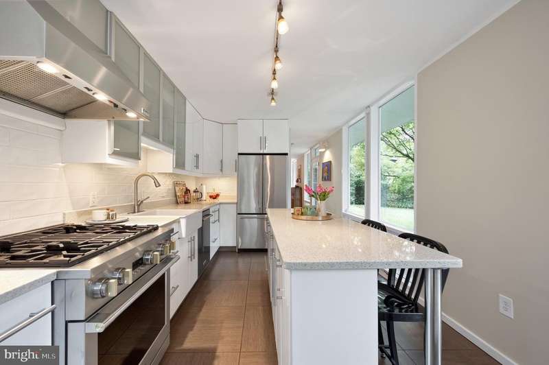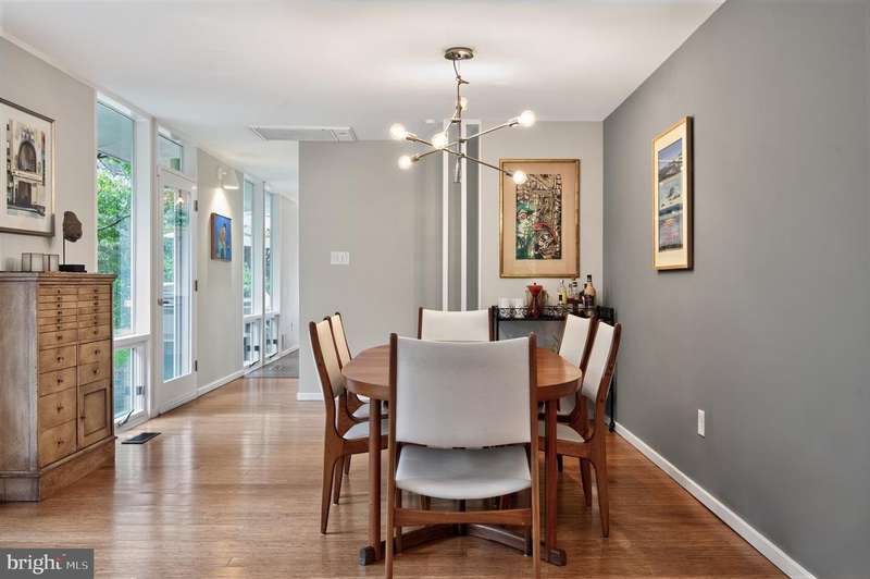 This extraordinary Mid-Century Modern home designed by Architect Charles Goodman is located in the highly sought-after Hollin Hills community. Home has been thoughtfully expanded to over 2,300 square feet with additions by renowned architects Casper Neer and Eason Cross. Extensively remodeled while preserving its iconic MCM charm, the home welcomes you with an impressive entry foyer featuring soaring ceilings, a coat closet, and a striking bubble chandelier. A private home office boasts a brick wall with built-in shelving, ideal for work or study. The open-concept living spaces include a welcoming living room and cozy family room with a wood-burning fireplace and custom built-in bookshelves, as well as a separate dining room perfect for entertaining. The custom kitchen features a large center island with seating, granite countertops, stainless steel appliances, and direct access to the patio, making it a true centerpiece of the home. The main level includes a spacious primary suite with a built-in dresser, a large custom closet, and a beautifully remodeled en-suite bathroom showcasing a walk-in shower with custom marble tile. A second main-level bedroom offers a custom closet organizer and light filled windows. There is another remodeled full bathroom, complete with a skylight. A convenient main-level laundry closet adds to the home's functionality. Upstairs, two additional bedrooms offer access to a Juliet balcony, with one bedroom featuring a walk-in closet. The large, sunlit lower-level recreation room provides additional living space, ideal for relaxing or entertaining as well as additional storage. Outdoor features include extensive hardscaping with a concrete driveway, slate patios and walkways that wrap around the home. The private, flat backyard is surrounded by mature landscaping and offers an ideal setting for outdoor gatherings. Additional storage is provided by both a detached outdoor shed and an attached exterior shed. With double-pane windows throughout and exceptional attention to detail, this home is filled with character and timeless style. Hollin Hills offers membership to 2 community pools as well as membership to a tennis and pickleball club. The scenic neighborhood boasts 7 parks, trails, an active Civic Association with seasonal celebrations, delicious super society and a friendly, close-knit environment. A commuter's dream location minutes from GW Parkway and trails, DC & the Pentagon; and south to Fort Belvoir, or north to Andrews AFB & Tysons Corner via I-495. This special address is an idyllic sanctuary to call home!