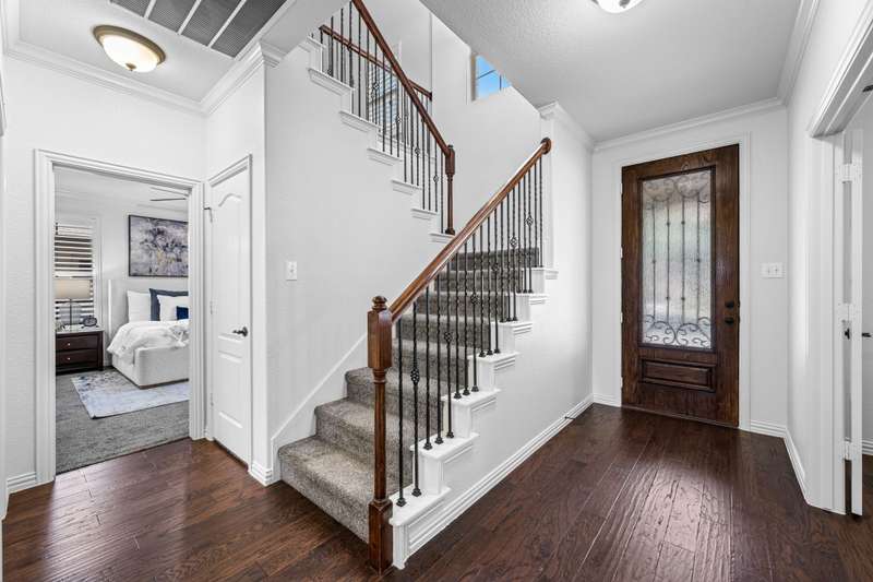 This immaculate 4-bedroom, 2.5-bath home with a 2-car garage is perfectly situated on a desirable corner lot in The Settlement at Craig Ranch. From the spacious covered front patio to the thoughtful updates throughout, this home is move-in ready. Designer touches include hardwood floors, a stunning stone fireplace, plantation shutters, and elegant iron balusters. A dedicated office downstairs offers a quiet space to work, while the open floor plan provides a natural flow for daily living and entertaining. The kitchen is a chefs delight, featuring rich maple cabinetry, granite countertops, double ovens, a custom vent hood, and a 5 burner cooktop. The primary suite offers a relaxing retreat with granite countertops, a garden tub, and a large walk-in closet. Upstairs youll find three additional bedrooms, an oversized media room, and game room perfect for hosting friends and family. Recent updates include fresh interior paint, a DaVinci roof installed 5 years ago with a 4050 year lifespan, HVAC replaced 4 years ago, and a water heater installed 2 years ago. Immaculately maintained and offering both comfort and long-term value, this property also presents an excellent investment opportunity in one of Craig Ranchs most desirable neighborhoods. Refrigerator and W-D can convey with property.