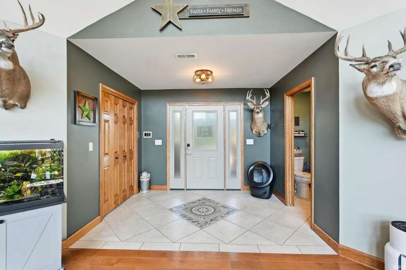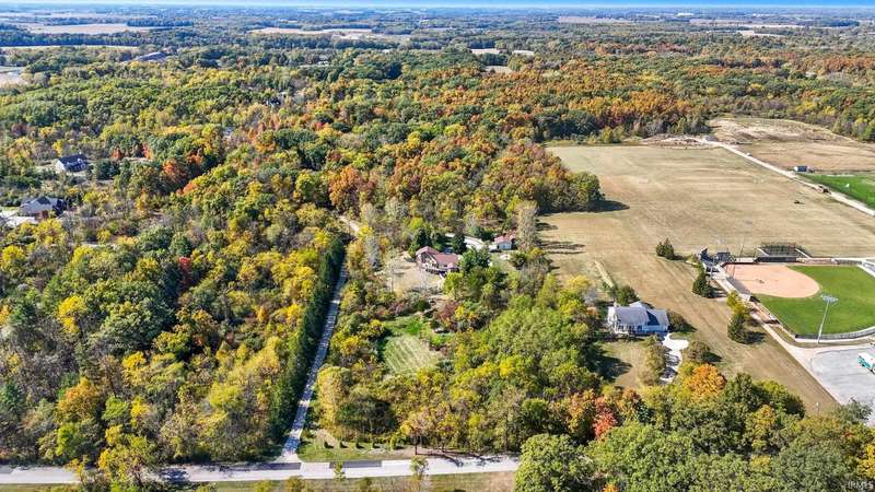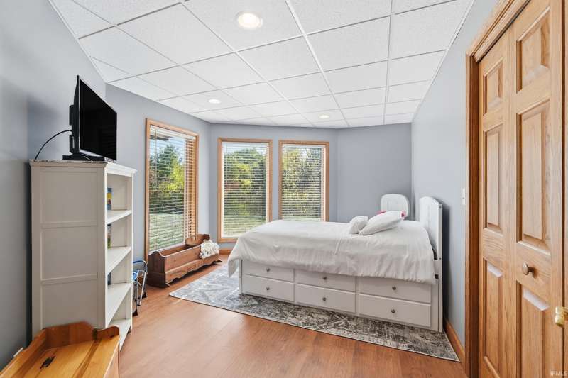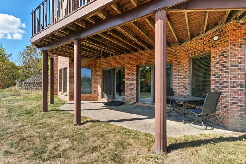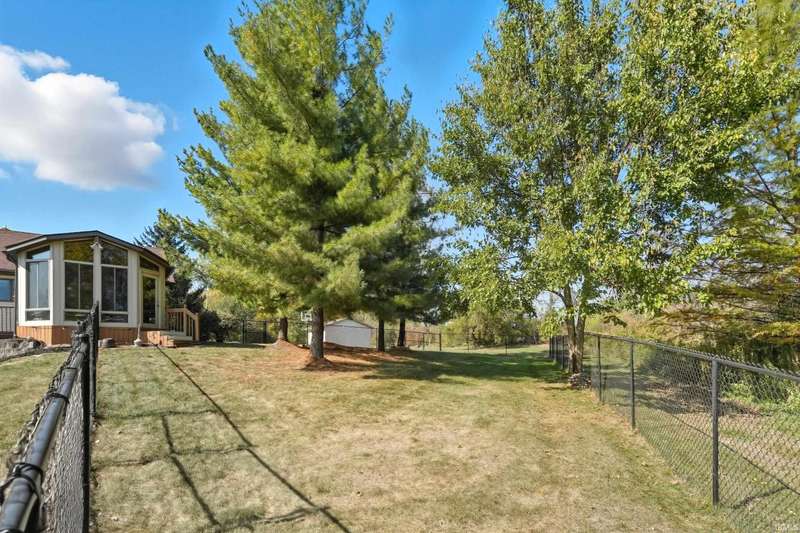 Nestled on over 5 peaceful acres, this stunning quality built Sebestyen & Williams one-story home with a walk-out basement offers the perfect blend of privacy space, and modern comfort. With 3600 square feet of finished living area, this 4 bedroom, 3.5-bath home was thoughtfully designed for convenience and flexibility-featuring two laundry rooms and two ensuite bedrooms, one on the main level and one in the basement, ideal for multi-generational living or guest accommodations. The main level boasts an inviting layout with spacious living areas, a dedicated home office, and a beautiful four seasons room overlooking the serene surroundings. The walkout basement provides additional living and entertainment space, perfect for recreation area, family room or a private retreat. Step outside and enjoy the expansive deck and large yard, perfect for outdoor dining, relaxing or hosting gatherings. A newly finished outbuilding with a mini-split system for year round comfort, offering endless options for a recreation area, bar or hobby space. Mature trees and an on-site orchard complete the peaceful, picturesque setting. Tucked away in a secluded location yet conveniently close to Taylor University, this exceptional property combines country tranquility with modern amenities, the perfect place to call home.