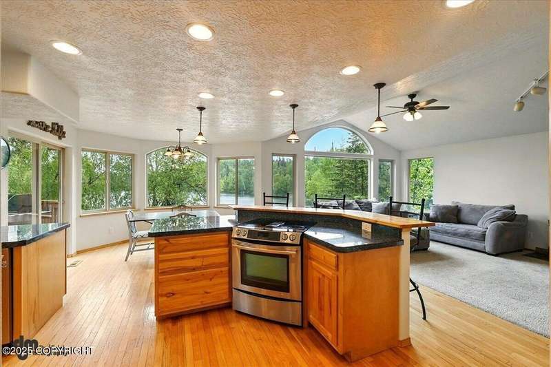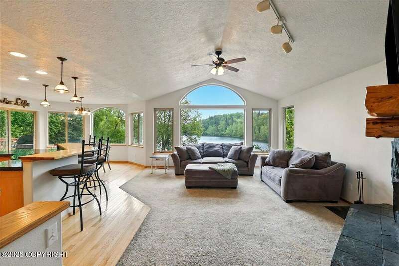 Lakefront Living in quiet neighborhood. Enjoy the privacy. Features include; Birch Cabinets, Oak Hardwood Flooring, Open Concept Floorplan, Entertaining Kitchen, Breakfast Bar, Natural Rock Fireplace, Fenced Yard, Landscaping, Spacious downstairs recreation room. You'll love the sound of the Loon's on the lake! Call for a private tour today.