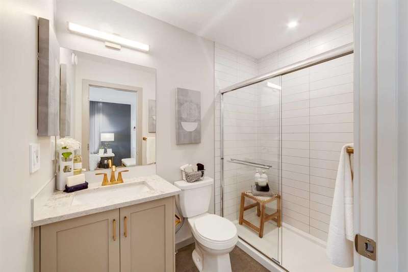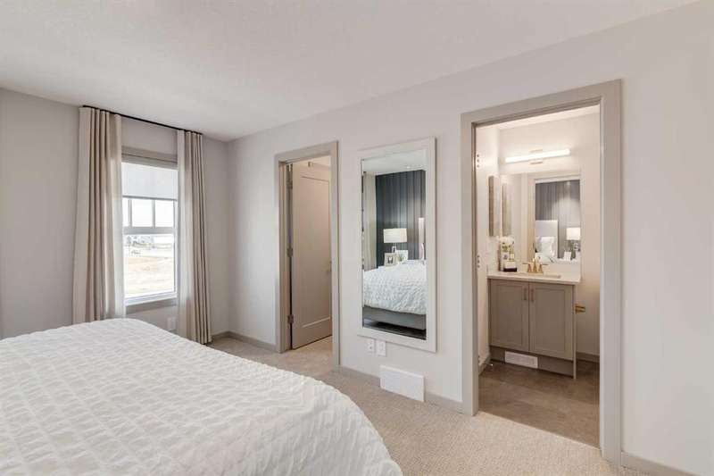 BACKING ONTO THE POND AND GREENSPACE, this brand-new Sasha model from Homes by Avi lives larger than its 1,523 square feet suggest. From the street, the façade stays modest, but step inside and the flow takes over. The foyer opens to 9' CEILINGS and a POCKET OFFICE tucked just behind the entry—perfect for homework stations, quiet calls, or simply keeping paperwork contained. Sightlines stretch past the living and dining areas to a kitchen window framing POND VIEWS, pulling daylight through the main floor. The kitchen balances function with design: QUARTZ COUNTERS in a crisp Crystal Crescent finish, FULL-HEIGHT 42" CABINETS in Oxford Grey, and a Silgranit undermount sink that makes cleanup feel almost civilized. A CHIMNEY HOOD FAN, BUILT-IN MICROWAVE, and gas line rough-in for the range give cooks flexibility, while the pantry lands exactly where you need it. Luxury vinyl plank runs throughout the main floor, keeping spaces cohesive and durable for family traffic. Off the back, a 10' x 10' deck lines you up for BBQ season with a gas line already in place. Upstairs, the BONUS ROOM anchors the plan, separating the primary bedroom from two secondary bedrooms. The primary itself feels lifted with a RAISED CEILING, walk-in closet, and a three-piece ensuite with quartz countertop. The two additional bedrooms share a full bath finished in soft greige tile, while laundry is smartly located upstairs on LVT flooring that can take the spin cycle. Everyday details were future-proofed: 200-amp electrical service, a SEPARATE SIDE ENTRY DOOR option, rough-in for a basement bathroom, and 9' FOUNDATION WALLS for when you finish it out. The REAR DETACHED GARAGE (20' x 20') sits on a paved lane, while sod to the front yard keeps curb appeal instant. Starling itself is a community built around what matters: PRESERVED WETLANDS, LOOPING PATHWAYS, PLAYGROUNDS, and a sense of calm that comes from knowing the view behind you is more sky than neighbour. With Stoney Trail minutes away, the rest of Calgary stays within easy reach, but home always feels like a step closer to nature. This is a home that folds everyday life into a backdrop worth keeping. Book a showing, stand on the deck and ENJOY THE VIEW—you’ll know exactly how it lives. • PLEASE NOTE: Photos are of a Showhome of the same model – fit and finish may differ. Interior selections and floorplans shown in photos.