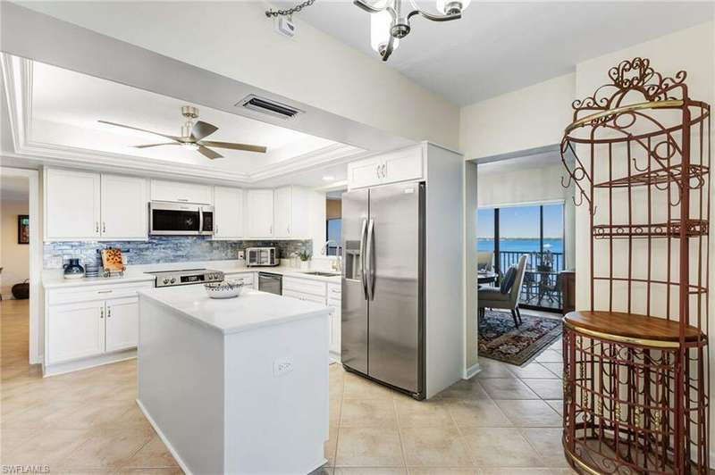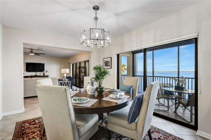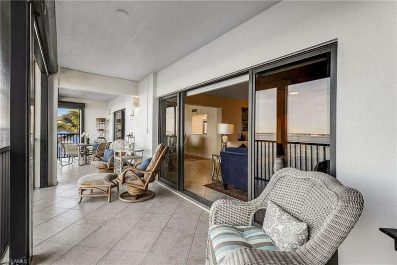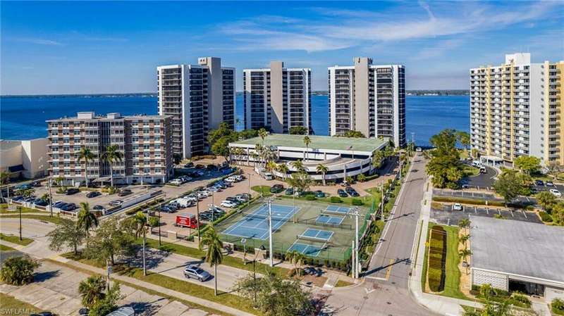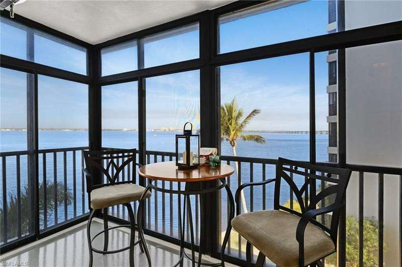 Enjoy amazing unobstructed sunset river views from this rarely available, FULLY UPDATED, desired corner unit with screened balconies off every room. The gorgeous recently remodeled kitchen boasts KraftMaid cabinets, quartz countertops, a beautiful subway tile backsplash that captures the sunlight and all new appliances with a bonus additional 50 sq ft of air-conditioned balcony to take in the serene river view. Both bathrooms have been updated with a coastal casual elegance feel. Positioned at palm tree level, your view is both picturesque and engaging, offering a unique blend of water, greenery, and boating activity. *Enjoy a vibrant lifestyle, located in walking distance to the Downtown Historic River District and the iconic Edison & Ford Winter Estates. You have access to many dining options, unique shopping experiences, engaging arts and entertainment, as well as exciting festivals and events and even the Publix grocery store. Conveniently right next door, you can enjoy Pinchers restaurant and dock your boat at the Marina which is now accepting boat slip leases. This desirable walkable neighborhood offers a strong sense of community, with frequent local events fostering a sense of belonging. Convenient access to public transportation & major highways with Southwest Florida International Airport just a short drive away. PEACE OF MIND: This is the only downtown gated community with manned 24-hour security. This building has a new roof, elevator, a new fire sprinkler system plus the required structural engineering reports are completed and everything is in order. This unit has Storm Smart shutters and a new tankless hot water heater. The kitchen was re-plumbed in 2023/2024. This condo includes your own garage space, and a storage unit steps outside your front door. Condo fees include flood and building insurance, water, sewer, trash removal, cable and internet, manned gate at the entrance, professional on-site management, built up reserves, exterior maintenance, interior and exterior pest control, common areas, vast amenities and much more. Indulge in resort style community amenities including a brand new heated pool, pickleball and tennis courts, brand new state-of-the-art fitness center and a social community gathering room. Be sure to visit and see all that this exceptional property has to offer! Your place in paradise awaits you now!
