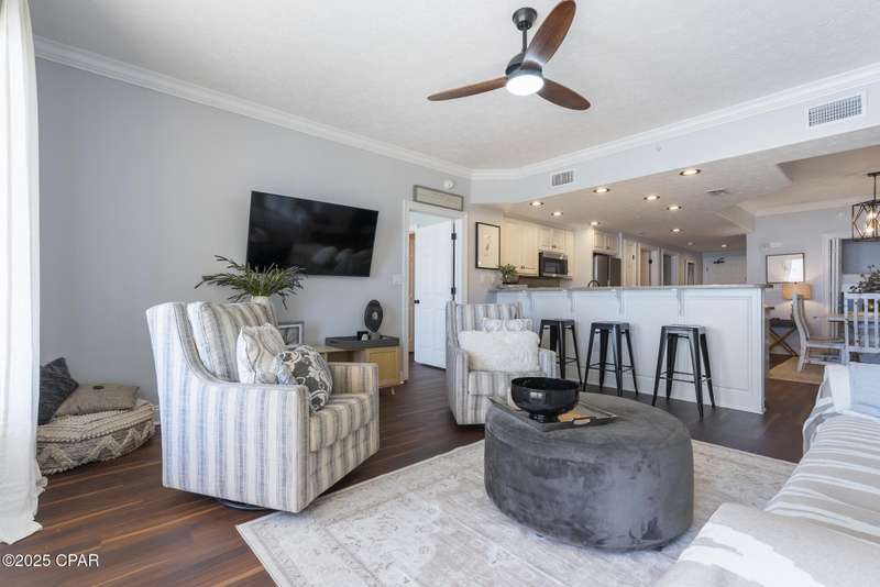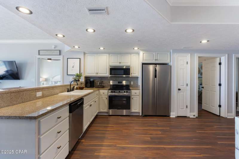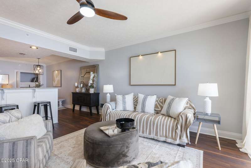 Discover A RARE, NEWLEY RENOVATED absolutely stunning condo at Treasure Island Resort with SECOND Floor Gulf Front Views! This breathtaking, completely renovated condo comes fully furnished for a perfect home, vacation getaway, or investment property. Brand new flooring throughout, new kitchen appliances, new door hardware, new light fixtures, new paint throughout, new drapes (the list goes on) and over the top furnishings, professionally decorated, makes this unit the GEM of Treasure Island. This 2-bedroom, 2-bath stunner even has a bonus set of built in bunk beds to maximize space and rental income. The open-concept kitchen boasts beautiful stone countertops, updated stainless kitchen appliances, and everything you need for cooking -- truly turnkey at its finest. Treasure Island Resort Condominium is near St. Andrews State Park on the east end of Panama City Beach. This area is filled with great local restaurants and outdoor activities, making it the ideal place to vacation, live, or both. Life is meant to be experienced, and Treasure Island, Unit 209, is the epitome of just that! MUST SEE IN PERSON!