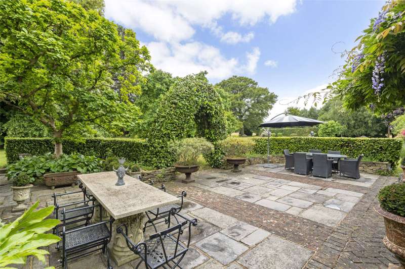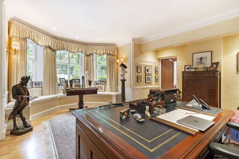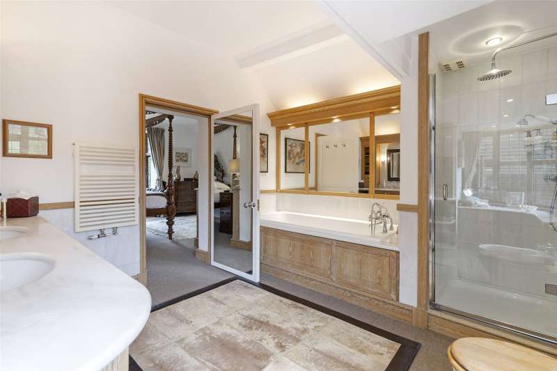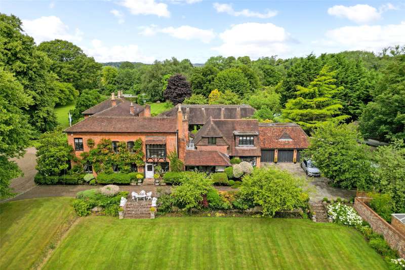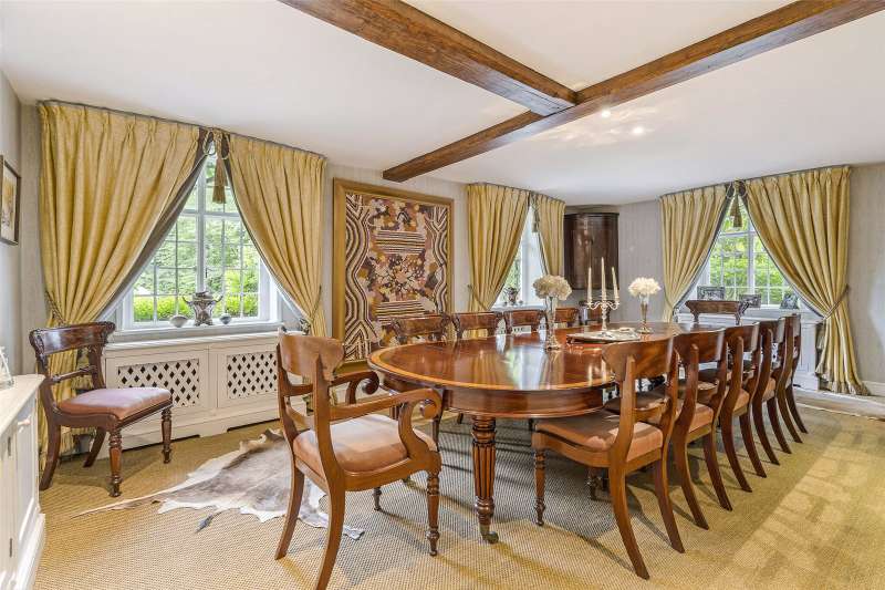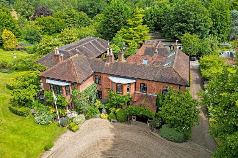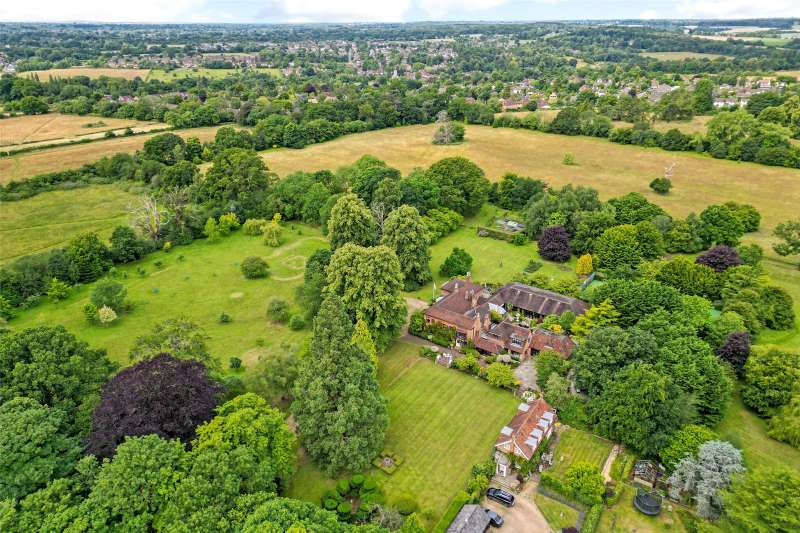 Within 22 miles of Central London and only 1.5 miles from the quaint and ancient village of Chalfont St Giles, this substantial 6 bedroom house, 2 bedroom cottage, pool complex, stables, tennis court, formal gardens and paddocks, dates to pre-Victorian times and sits within its own 25 acres of historic parkland.