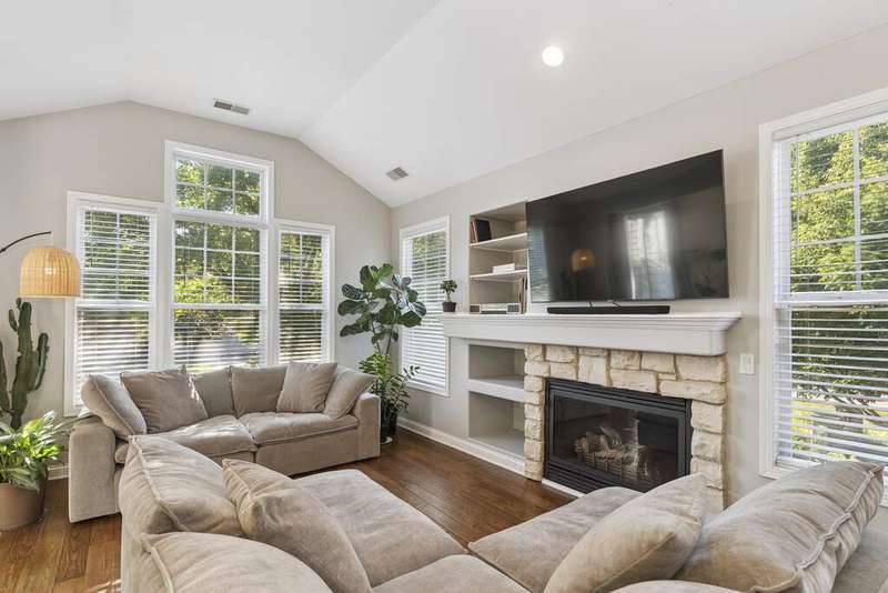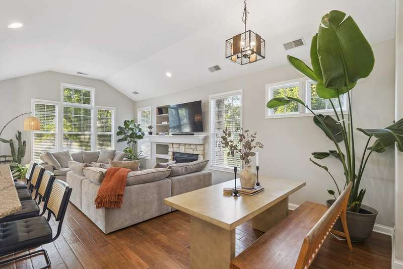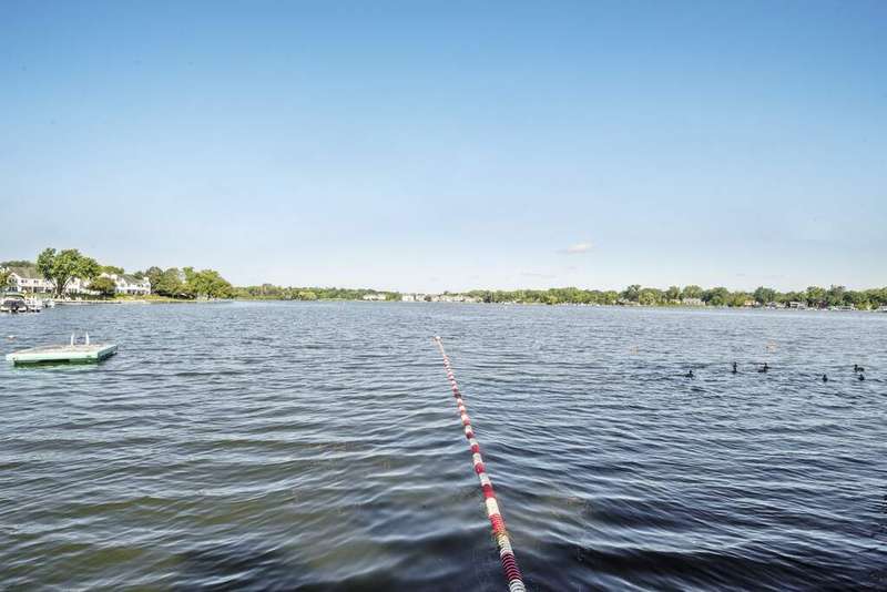 Welcome home to this stunning penthouse condo just one block from beautiful Bangs Lake, offering lake rights and the perfect blend of comfort and style. This 2-bedroom, 2-bath home has been completely updated and is move-in ready. Step inside to soaring vaulted ceilings and an open-concept living space filled with natural light, highlighted by fresh paint, new carpet, modern black doors, and wide-plank hardwood floors. The spacious kitchen features abundant cabinetry, granite countertops, and plenty of room to cook and entertain. The inviting living room centers around a cozy gas fireplace and flows seamlessly to a large balcony overlooking the charming Sunset Ridge neighborhood, accessible from both the living room and the primary suite. The primary suite is a true retreat with a massive walk-in closet and a luxury bathroom boasting a jacuzzi tub, walk-in shower, and dual vanities. A second full bath and bedroom provide flexibility for guests, office space, or family living. Additional updates include newer mechanicals, ensuring peace of mind for years to come. With its modern finishes, desirable location, and lake lifestyle, this home has it all.