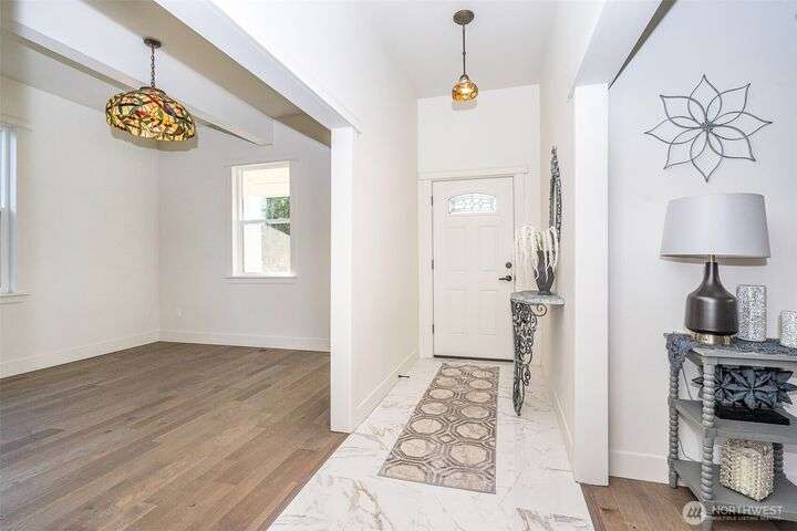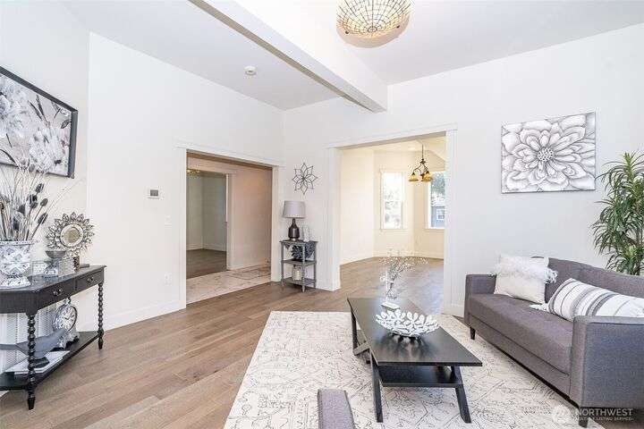 Need space for multi-generational living? Don't miss this Victorian Era home w/10ft ceilings, dome ceilings, hardwood & marble tile. New electrical, plumbing, windows, insulation, 2 heat pumps w/separate thermostats on each floor. Amazing kitchen, new cabinetry, counters, walk-in pantry & black stainless appliances. Main floor bedroom & bath w/walk-in shower. Enormous, primary bd upstairs w/dome ceiling, attached bath & large closets. Upper level also has sunny loft/den, full bath, 2nd bedroom & bonus room w/dome ceiling. You will love the Tower bedroom w/exterior entrance. Two car 24x24 garage w/additional off-street parking. Seller Financing option 20%down at 6%. Photos depict staged home. Seller offers 10K toward buyer's closing costs.