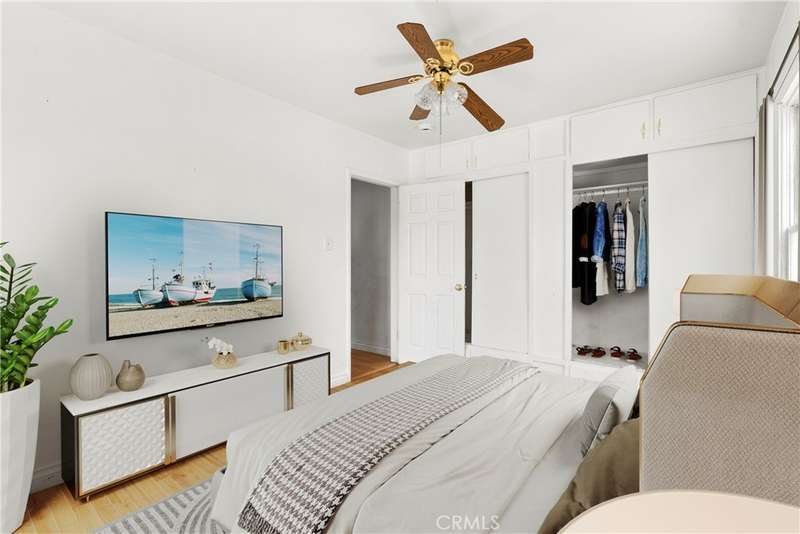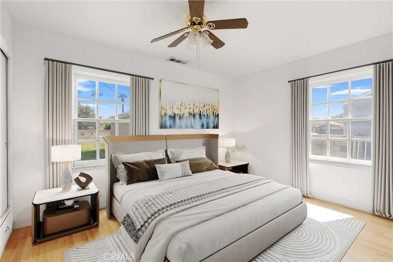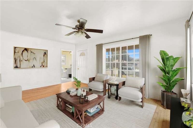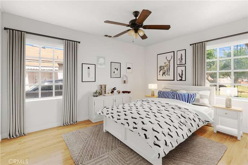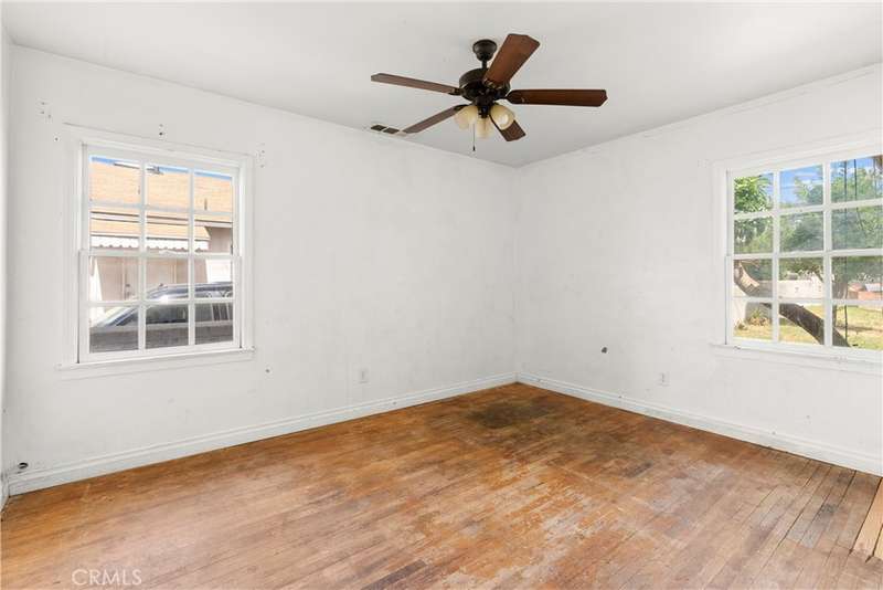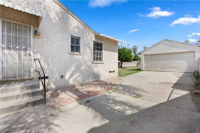 Welcome to 532 E Evans Street, San Bernardino--a delightful opportunity to create the home you've always dreamed of! This charming 2-bedroom, 1-bathroom residence offers 911 square feet of living space on a generous 7,500 square foot lot, perfect for your personal touches and outdoor aspirations. Step inside to a sunlit family room, where large windows invite natural light to brighten your days. To the right, a cozy kitchen with a dining area and beautiful bay window creates the perfect spot to enjoy your morning coffee. The kitchen features white cabinets, formica countertops, and easy-care linoleum flooring. The home offers a practical layout, including a convenient laundry room with a side entrance--ideal for dropping off clothes before stepping into the house. Each bedroom, along with the family and dining areas, is fitted with ceiling fans for added comfort. The bathroom features a tiled floor and a bath/shower combo. Stay comfortable year-round with central AC and heat, and enjoy peace of mind with a security gate door that allows for fresh air while keeping your home secure. The expansive backyard, accessible from the laundry room, features lush grass, a lemon tree, and ample space for play, gardening, or gatherings. The front yard and driveway are enclosed by chainlink fencing, providing a defined boundary without sacrificing openness, while the detached two-car garage offers additional storage and parking.