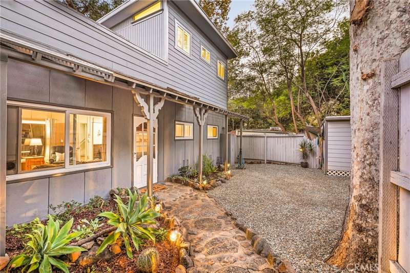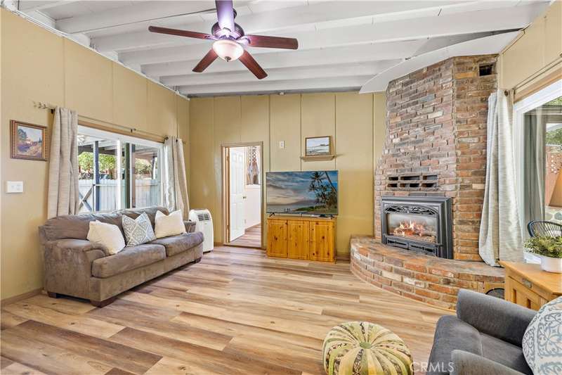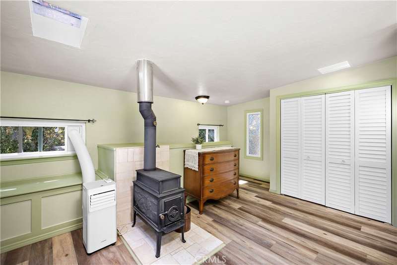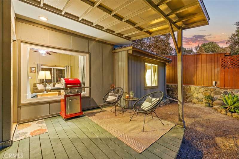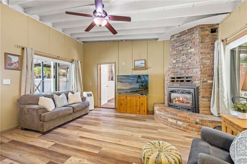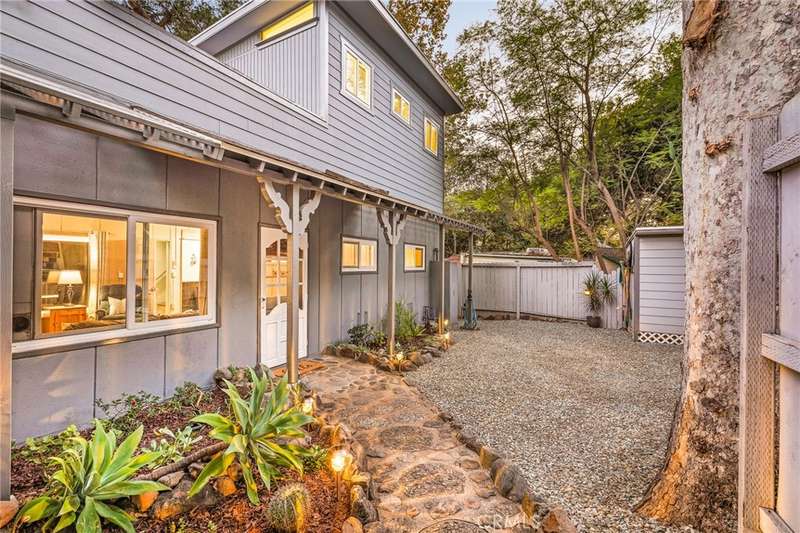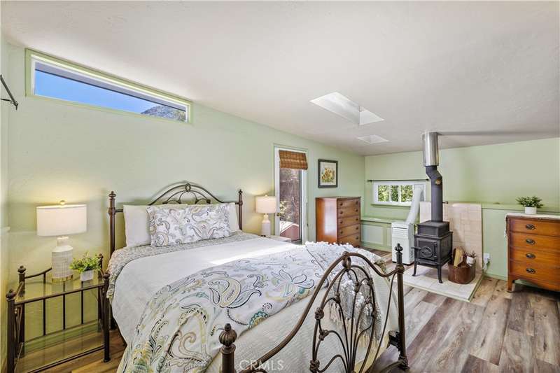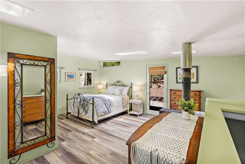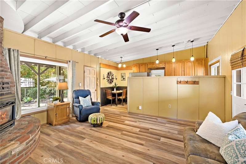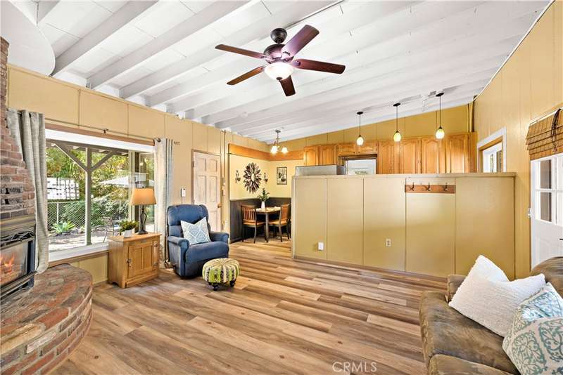 Charming creekside home with plenty of outdoor space for pets, gardening, and outdoor living. Situated on a fully-fenced lot that backs to a peaceful creek, this property offers both privacy and a beautiful natural setting. Step inside to find fresh updates, including new luxury vinyl flooring throughout and a freshly painted exterior. The main level includes two bedrooms and a 3/4 bathroom, a large living room featuring a brick fireplace with a propane heater insert, and the cozy kitchen with adjacent dining nook. Upstairs, you'll find a spacious primary suite complete with a full bathroom and a wood-burning stove, creating a relaxing and private retreat. Enjoy the outdoors year-round on the covered back patio, which overlooks the creek and the generously sized backyard. Spacious front yard storage shed adds convenience for tools, outdoor gear or hobbies. This home is move-in ready and is ideally situated off the main road. Located in a vibrant neighborhood near the Cleveland National Forest, you'll enjoy easy access to hiking and biking trails, horse facilities, local eateries, community activities and events, a nature preschool, Silverado Park + Community Center, award-winning schools, and the Silverado Public Library. Come experience canyon living at its finest.