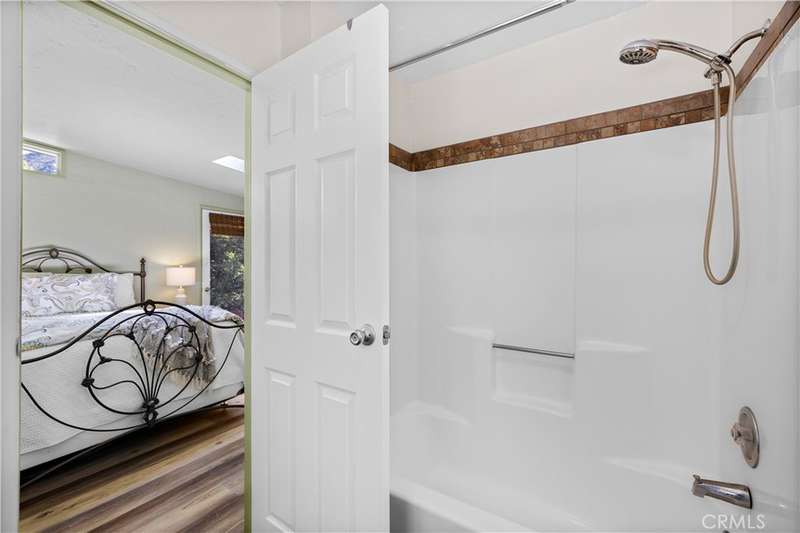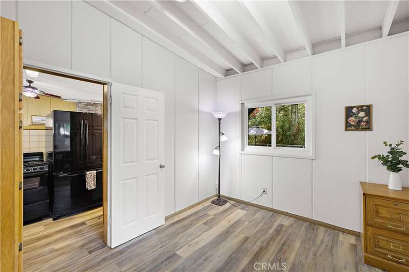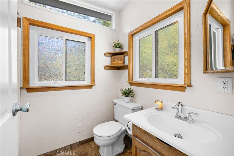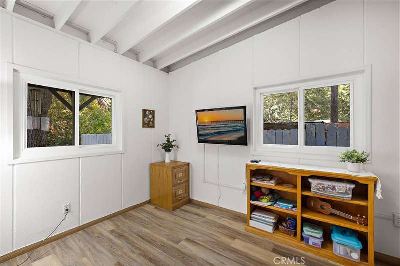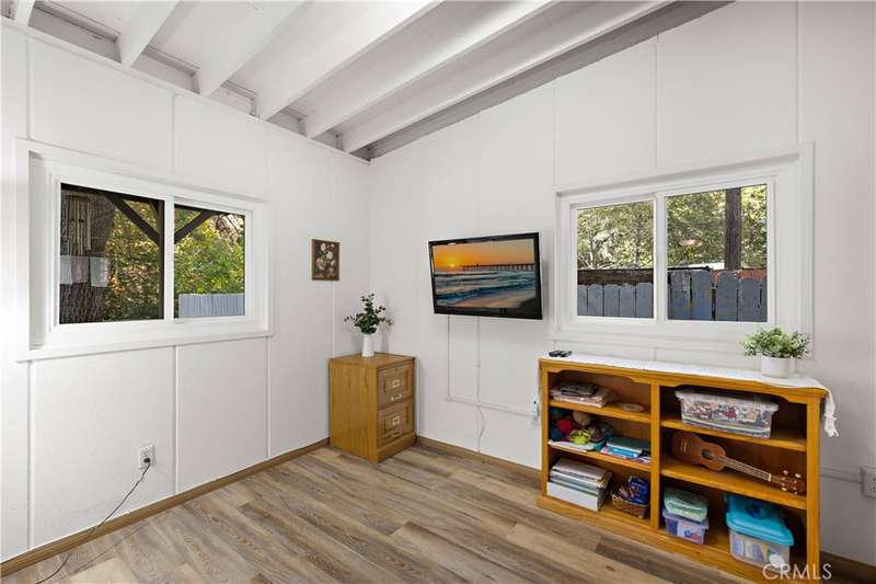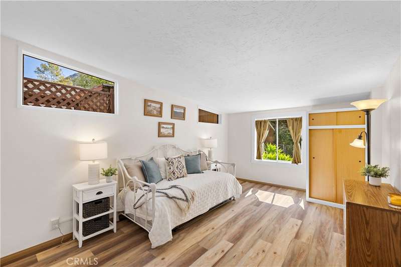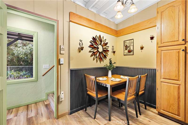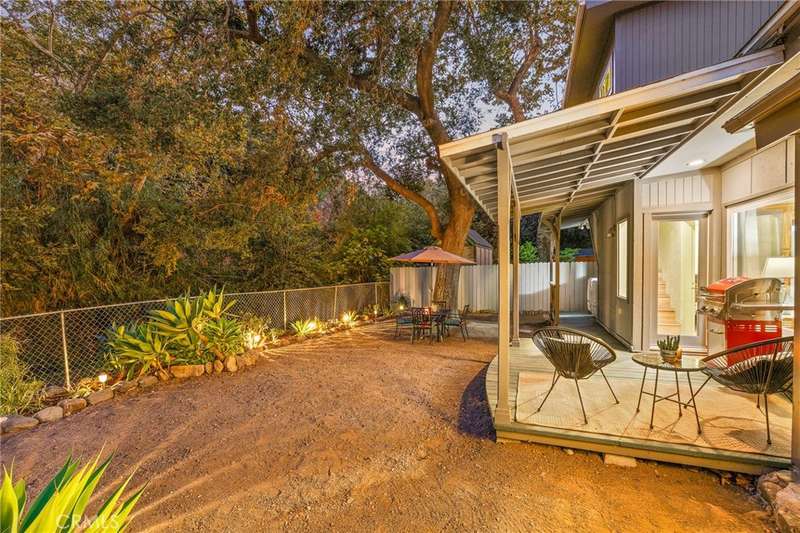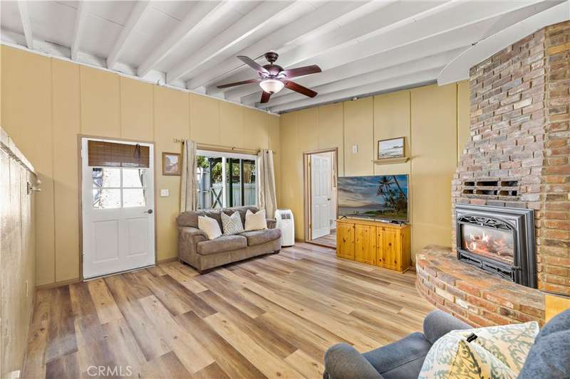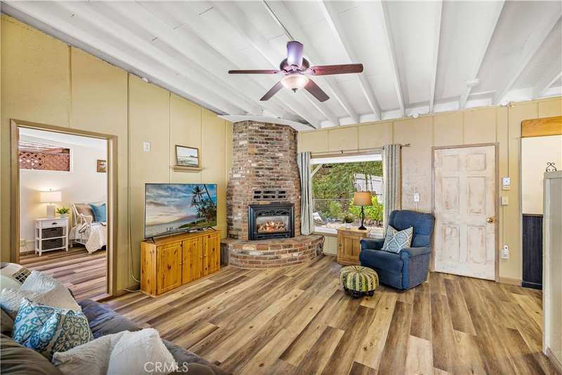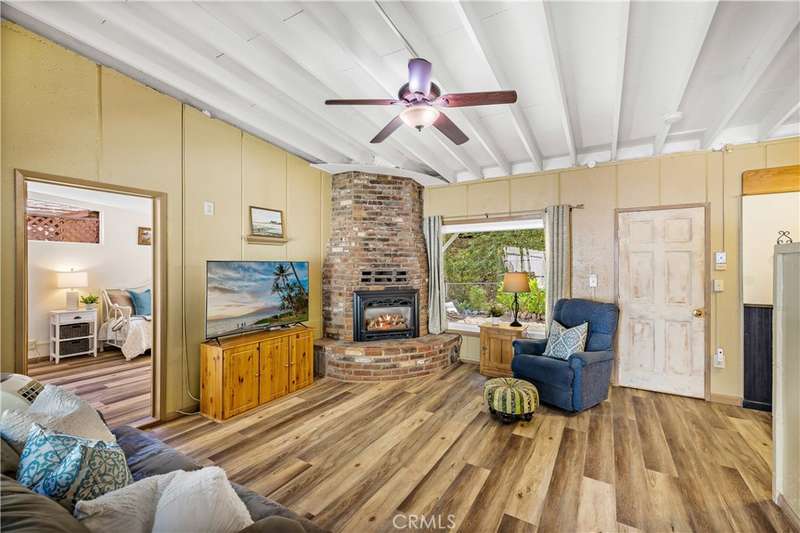 Charming creekside home with plenty of outdoor space for pets, gardening, and outdoor living. Situated on a fully-fenced lot that backs to a peaceful creek, this property offers both privacy and a beautiful natural setting. Step inside to find fresh updates, including new luxury vinyl flooring throughout and a freshly painted exterior. The main level includes two bedrooms and a 3/4 bathroom, a large living room featuring a brick fireplace with a propane heater insert, and the cozy kitchen with adjacent dining nook. Upstairs, you'll find a spacious primary suite complete with a full bathroom and a wood-burning stove, creating a relaxing and private retreat. Enjoy the outdoors year-round on the covered back patio, which overlooks the creek and the generously sized backyard. Spacious front yard storage shed adds convenience for tools, outdoor gear or hobbies. This home is move-in ready and is ideally situated off the main road. Located in a vibrant neighborhood near the Cleveland National Forest, you'll enjoy easy access to hiking and biking trails, horse facilities, local eateries, community activities and events, a nature preschool, Silverado Park + Community Center, award-winning schools, and the Silverado Public Library. Come experience canyon living at its finest.