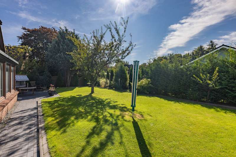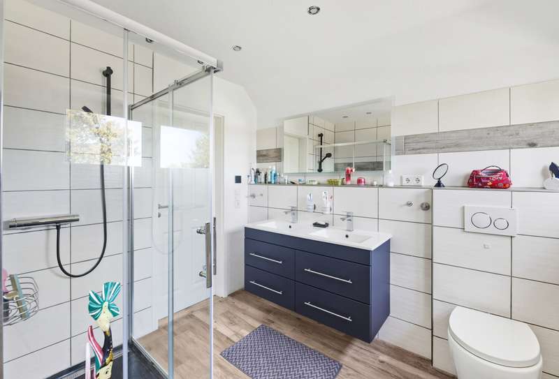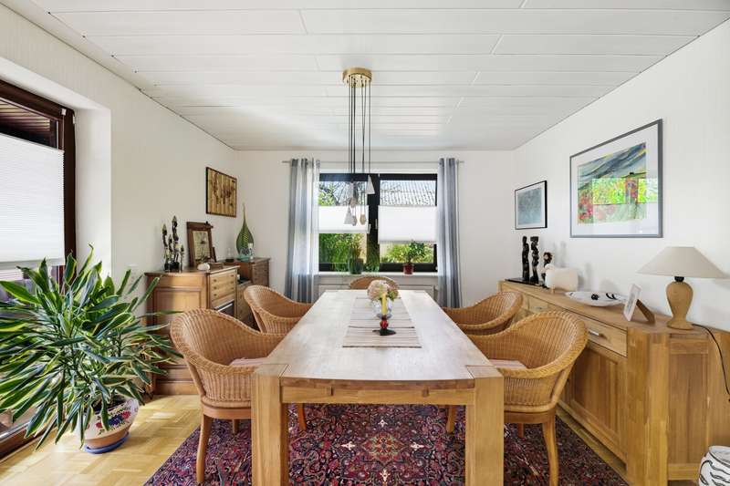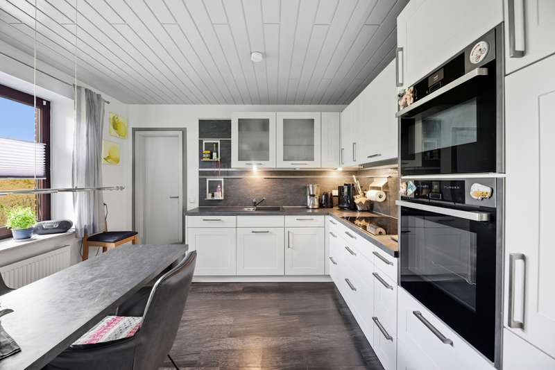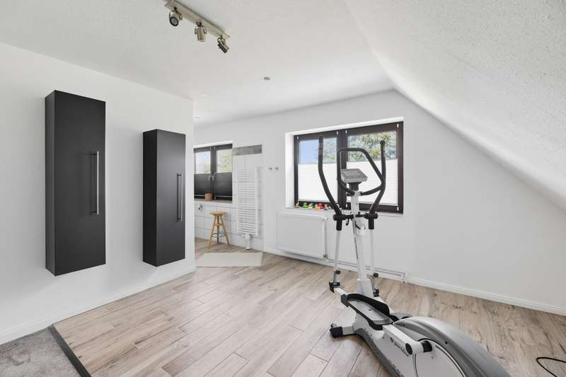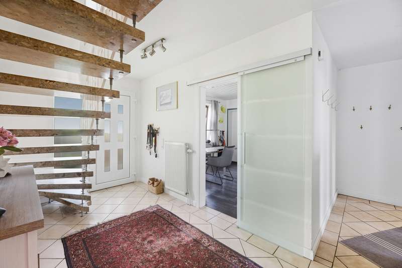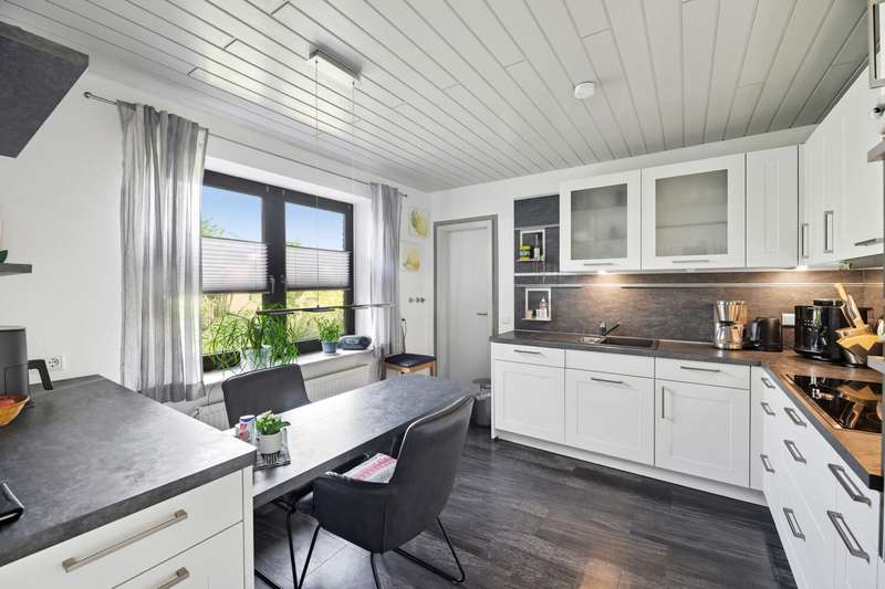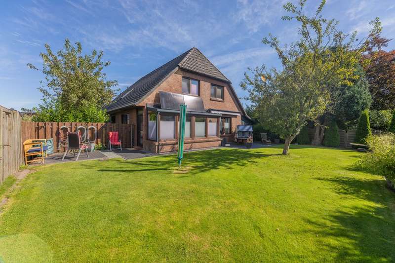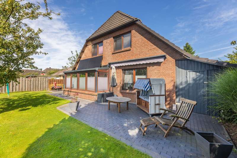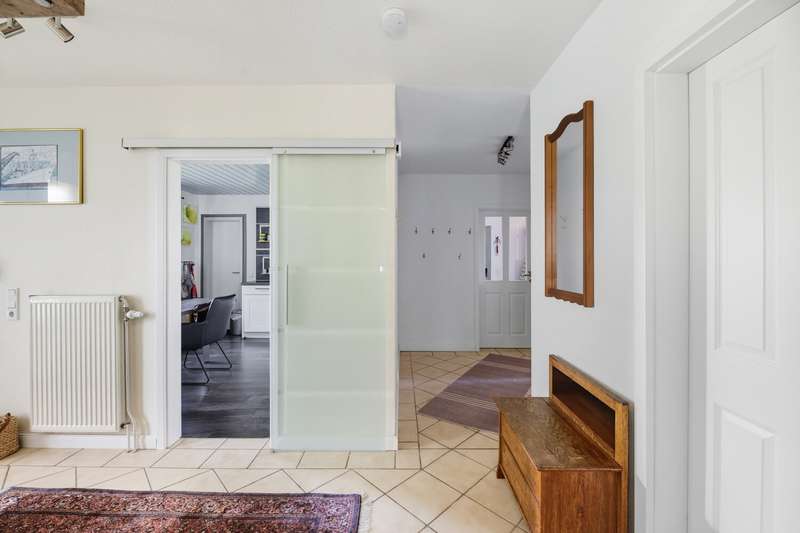 This well-kept detached house in a quiet location in Drage is waiting for its new owner. Built in solid construction in 1991, it impresses with very good energy values and a generous amount of space, which also allows living on one level or the division into 2 residential units. The energy values result not least from the modernizations that have already been carried out. The following are just a few examples: - Replacement of the gas heating in 2012 - Insulation of the top storey ceiling and sealing of the roof - Blow-in insulation in 2024 Further measures, such as the renovation of the kitchen, the shower room on the upper floor, the doors, switches and sockets, as well as some of the floor coverings, were carried out from 2020. In addition, a balcony power plant with an output of around 55 kWh was installed, a wall box was installed and the garage door was renewed. The fiber optic connection is already at the house. Welcomed by a spacious entrance area, the first floor features a modern fitted kitchen with seating area and pantry, a utility room with access to the garage, a guest bedroom and guest shower room, as well as a beautiful living/dining room with a wood-burning stove and direct access to the conservatory. An open staircase leads to the upper floor. The spacious hallway leads to the individual rooms and the storage room, although the original floor plan has been changed. The planned living area has been converted into a large bedroom and a dressing room, which is currently accessible through the guest room/office. Alternatively, direct access from the bedroom through the lightweight wall is also possible. The office also offers access to the attic via a fixed staircase, which has plenty of storage space. The shower room has been modernized and opened up to the original bedroom, as this was to be converted into a wellness area. A conversion back into a bedroom can be achieved quickly with simple means. The outdoor area is lovingly landscaped and has a beautiful terrace and a tool shed. The lawn is mowed by the existing robot mower. We would be delighted to show you this well-kept property during a personal viewing. We look forward to seeing you.