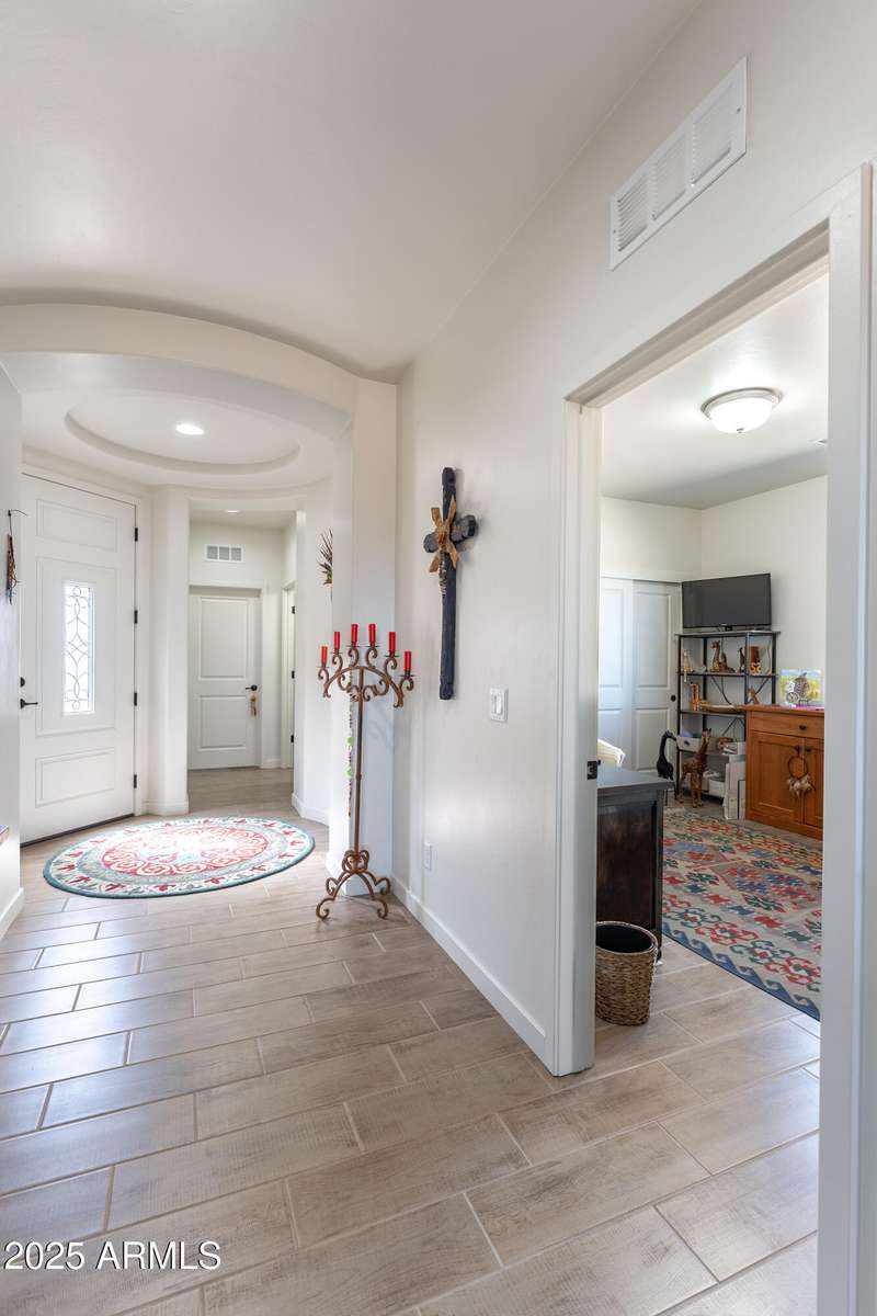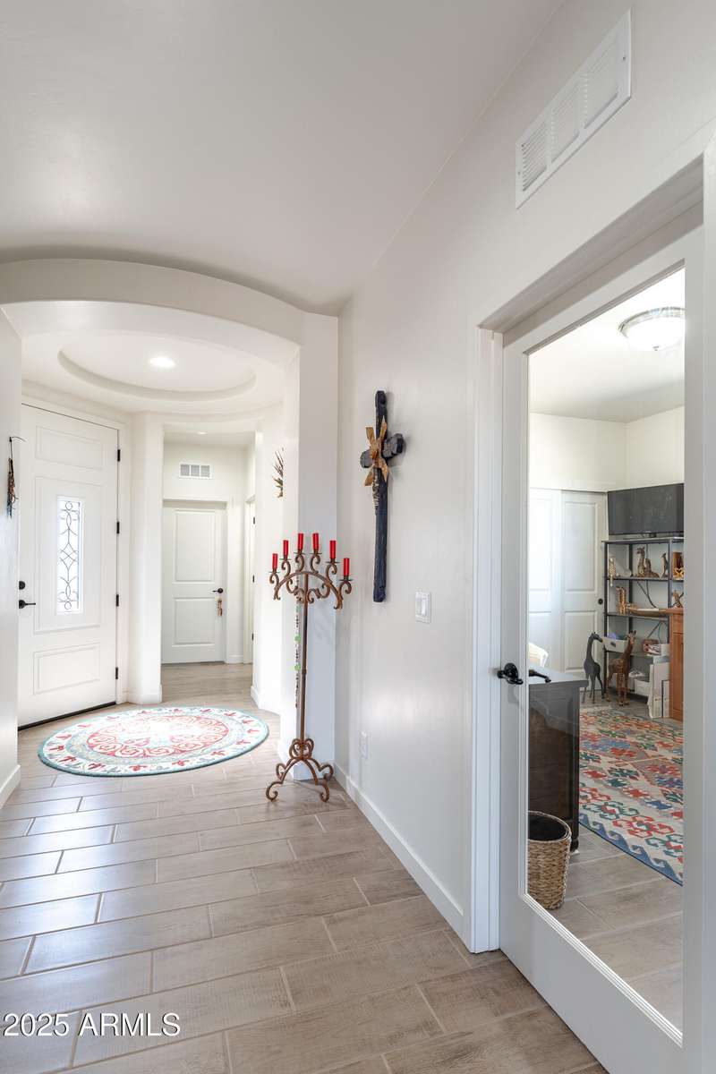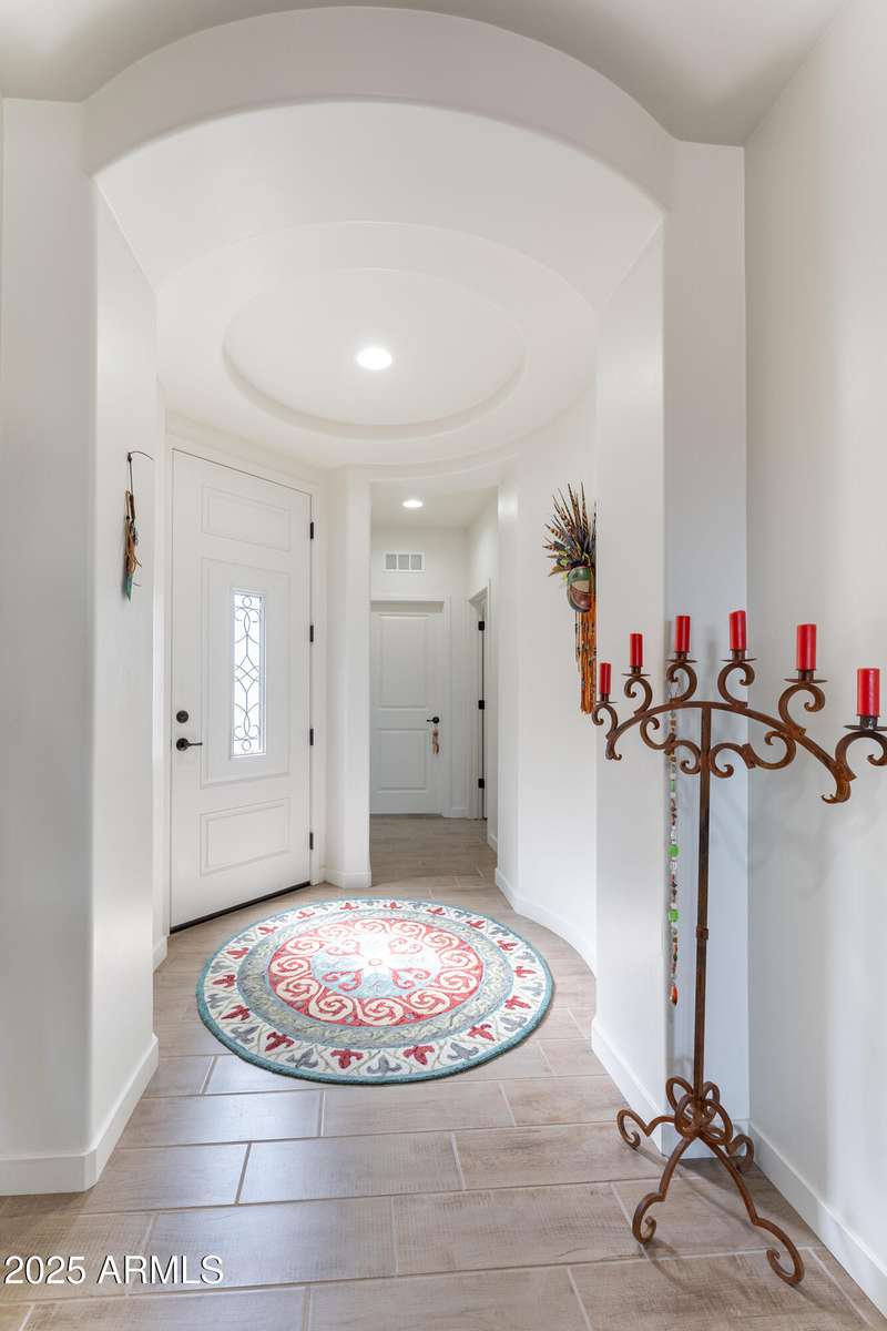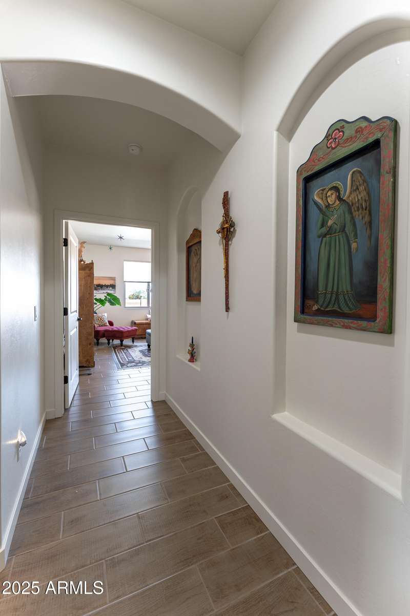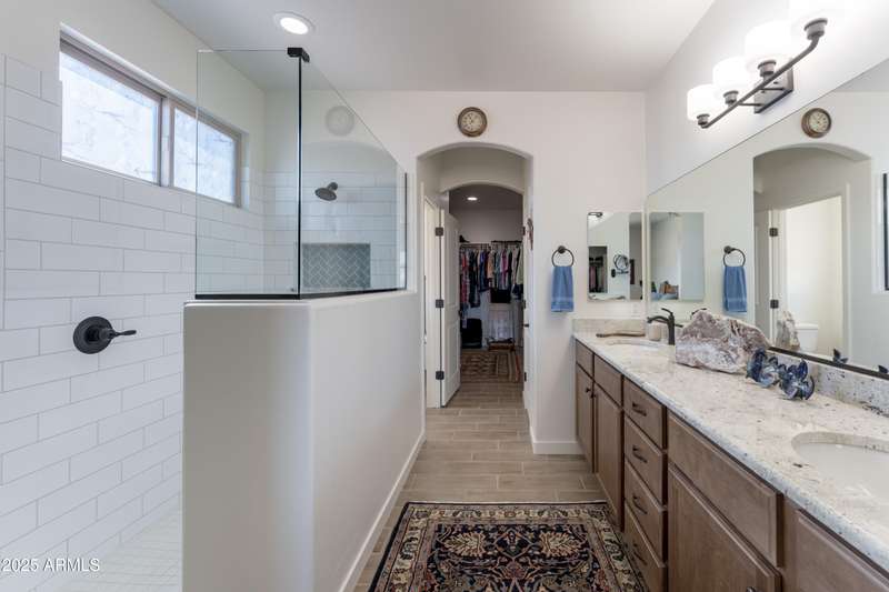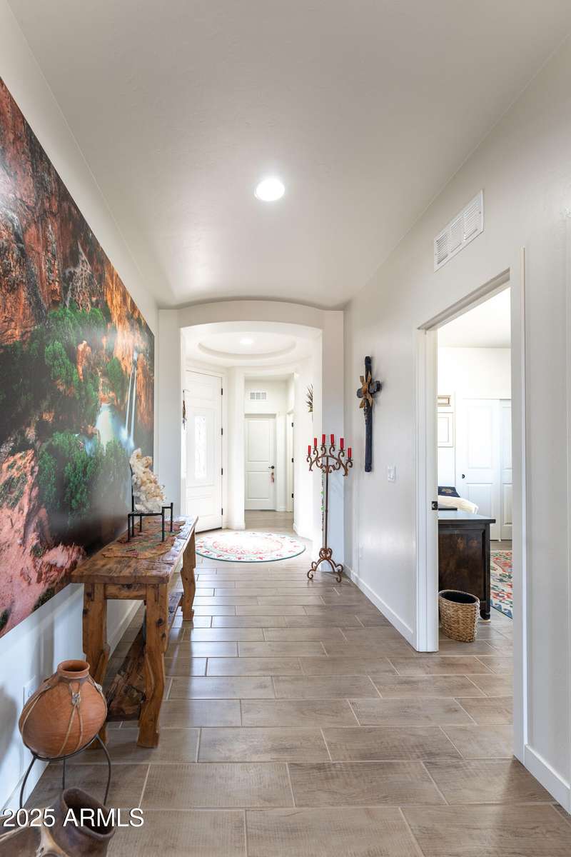 This 2,088 sqft home sits on a corner lot with unobstructed mountain views and thoughtful details throughout. Offering 3 bedrooms and 2 bathrooms, it also includes two versatile living spaces that could be used as a den or flex room. The kitchen shines with stainless steel appliances, granite counters, and a bold blue mosaic backsplash that adds a lively touch. Wood-look tile runs throughout—no carpet anywhere. The home carries a warm Southwestern style with earthy accents. The garage floor is coated, and the screened porch extends to an open patio with hot tub prep. The landscaped backyard features colorful blooms and a thriving garden.