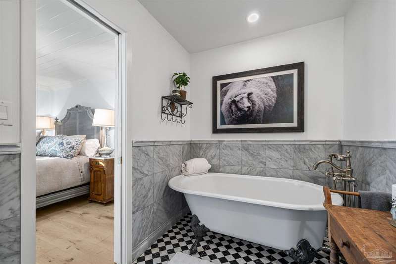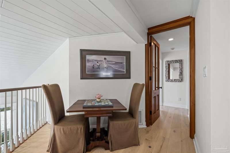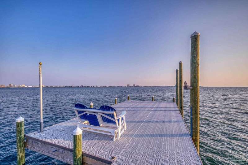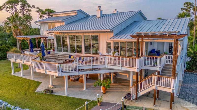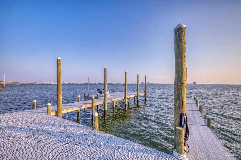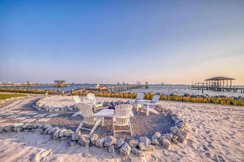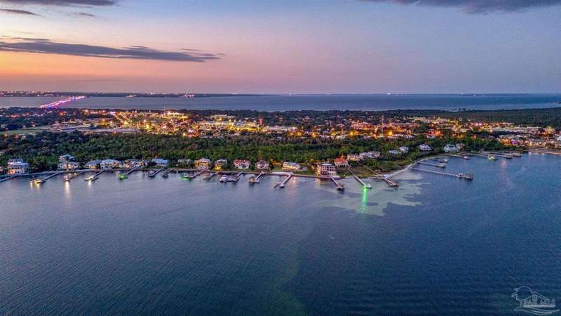 This is a rare opportunity to own a premier deep-water estate in Gulf Breeze Proper. Situated on 1.5 acres with over 200 feet on the Intracoastal Waterway, this stunning property features a rare 20x50 ft deep-water boat slip (9 ft depth) with flow-through dock and sun deck, a private white sand beach, and expansive green space. The home offers luxury throughout, including a great room with expansive windows showcasing breathtaking water views, a vaulted ceiling, and a gas fireplace. The custom kitchen is equipped with high-end appliances, a wet bar, and a dining area overlooking the Sound. The primary suite offers panoramic water views, deck/hot tub access, dual walk-in closets, and a spa-style bath with a soaking tub and separate shower. A main-level guest suite includes a private bath and patio access. Upstairs, you'll find two additional bedrooms, two full baths, and a large multipurpose room with a fireplace and French doors for added privacy. Additional features include a 3-car garage with a climate-controlled, large bonus room and half bath, plus a 200x200 ft vacant lot across the street included in the sale. Exceptional views, luxury finishes, and rare boating access make this a one-of-a-kind waterfront offering the ultimate Florida lifestyle.