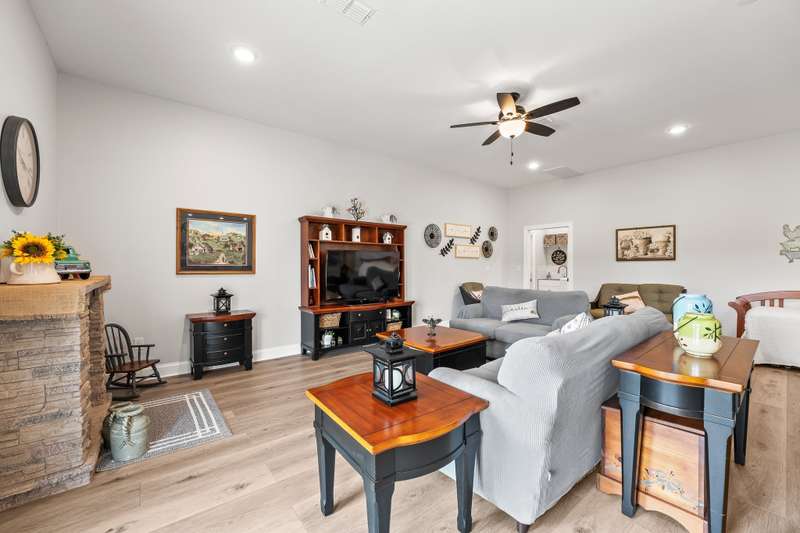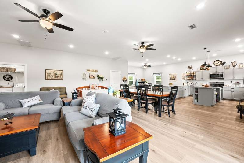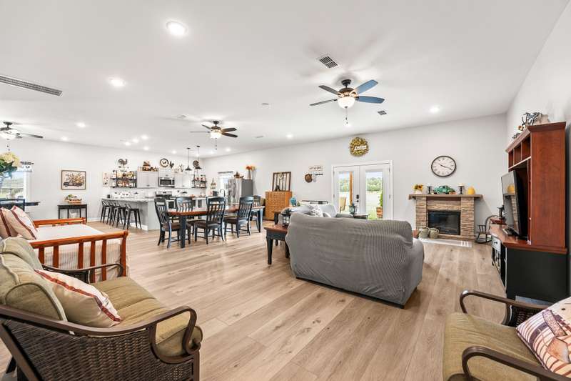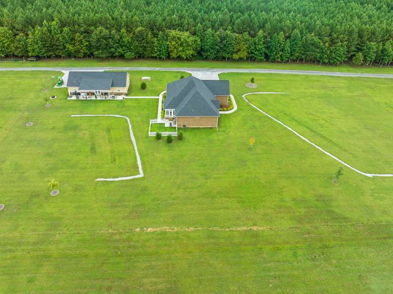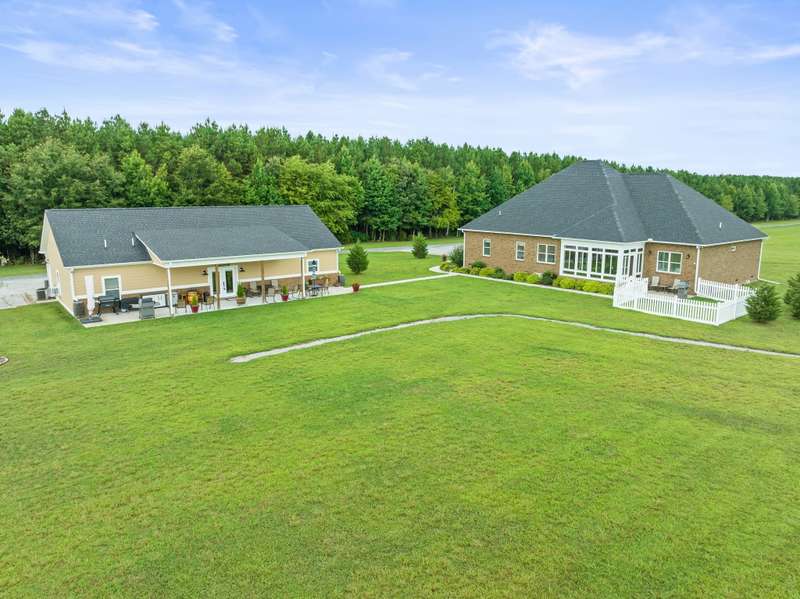 Gorgeous home that is absolutely immaculate! One level 3 bedroom 2 bath nestled approx. 16.6 acres with beautiful views. Additional 32 x 60 accessory building/guesthouse with 1,344 sqft finished area with open floor plan, large island kitchen, bathroom, utility room with a 10x40 covered porch. Includes 18 x32 shop. Main home features include 3 car garage, hickory wood floors, chef's kitchen with gas cooktop and large pantry, gas log fireplace, whole house generator, encapsulated crawlspace, enclosed sunroom with mini split HVAC system, tornado shelter in garage. Raised bed garden area. Only 8 minutes to Publix Grocery Store! Eligible for Greenbelt tax reduction. Unrestricted Property! Plenty of room for a pool or large pond. Room for possible private grass airstrip and hangar for small aircraft. Furnishings negotiable. See list of equipment for sale on the media page. Property includes two 1 acre lots platted out with electric and water at the lots.