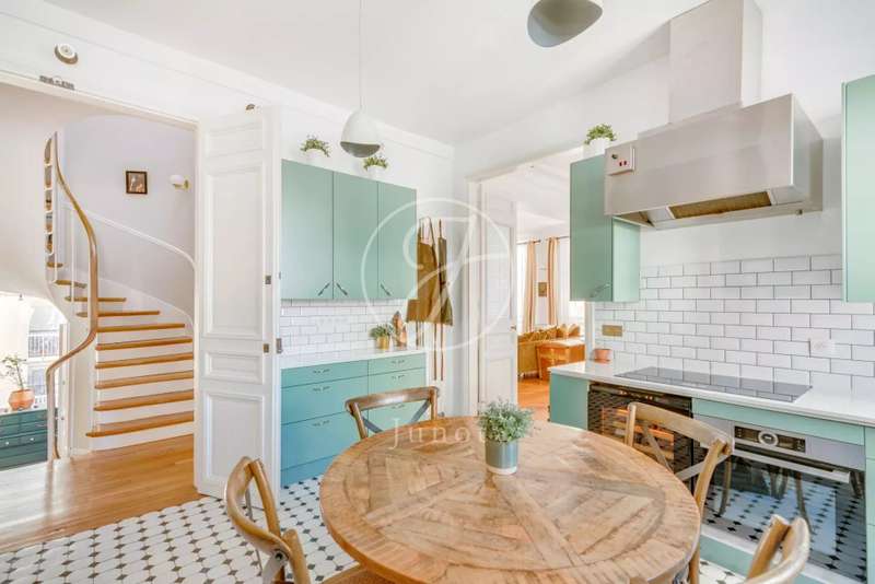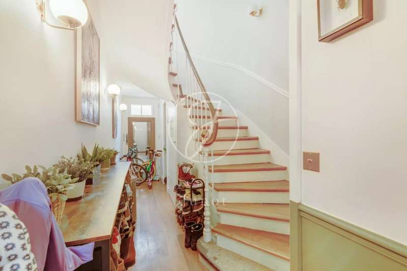 Beautiful townhouse with terrace, located on Rue de l'Abbé Groult. Built on three main levels and a mezzanine, it comprises an entrance hall, living room, dining room, separate fitted kitchen, four bedrooms, study, two bathrooms, three toilets, laundry room, and dressing room (up to six bedrooms possible). The sunny terrace is a beautiful outdoor reception area. Combining old-world charm and modern comfort, the house offers beautiful features: brightness, quiet, high ceilings, fireplaces, moldings, and herringbone parquet flooring. A cellar and a double parking space complete this property, located within a condominium. Suitable for professionals.