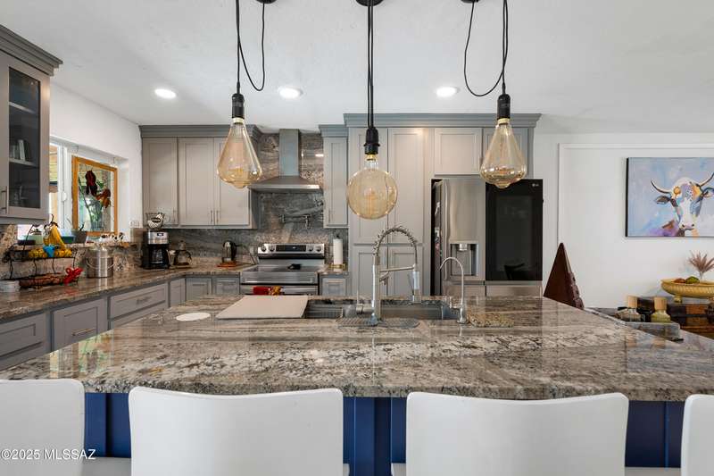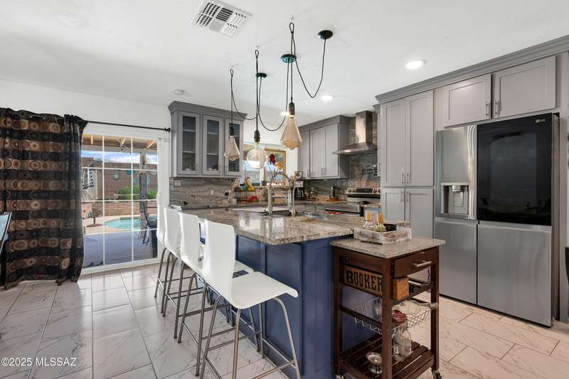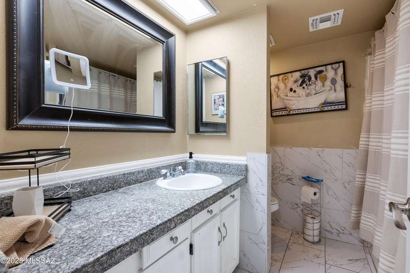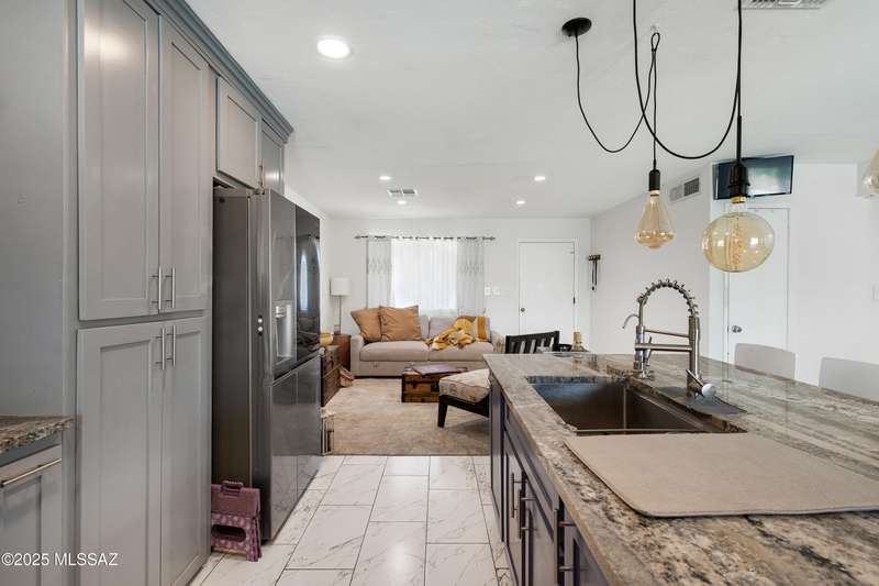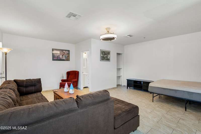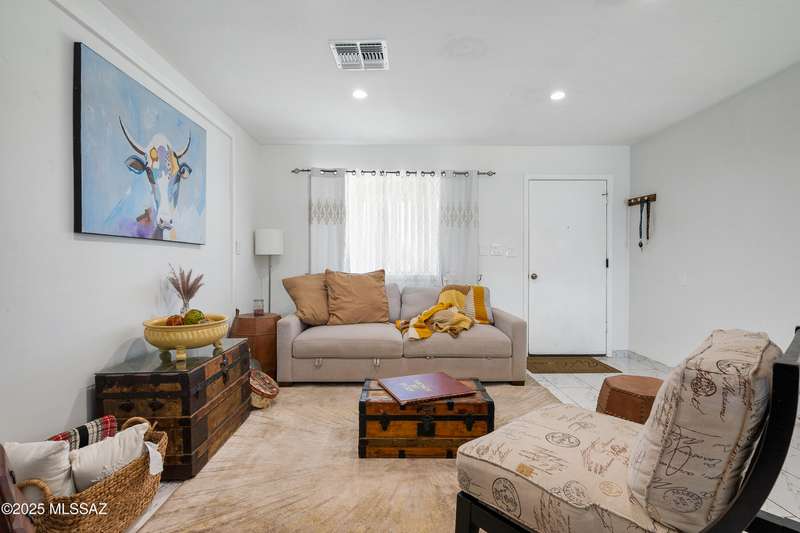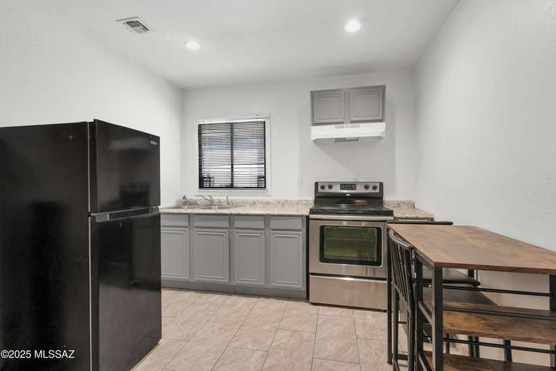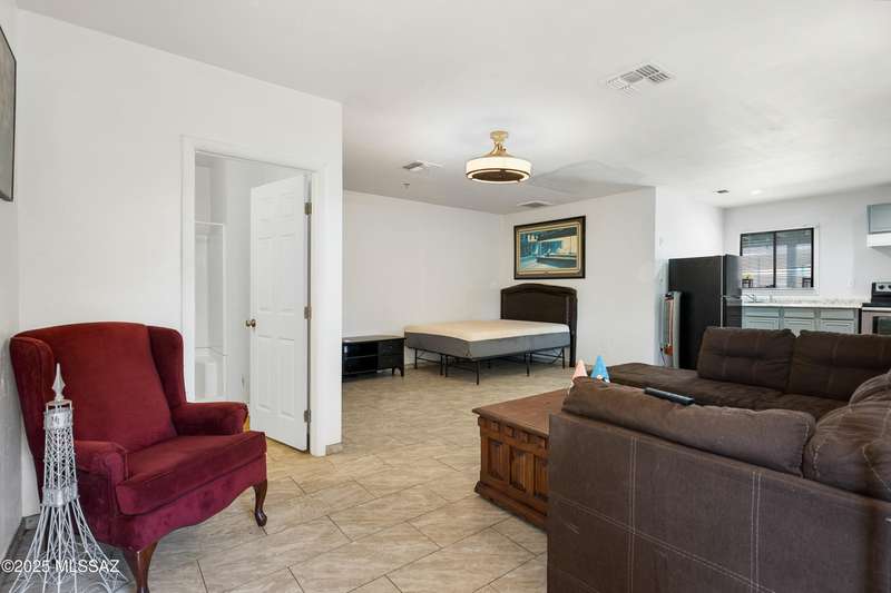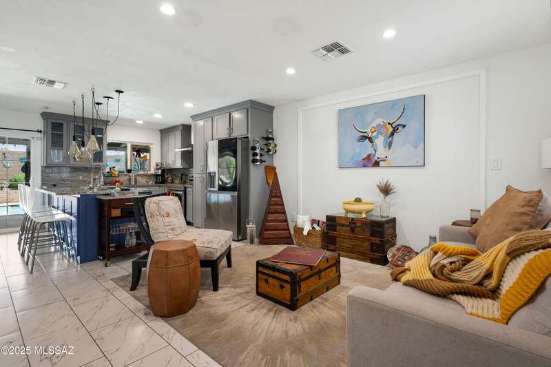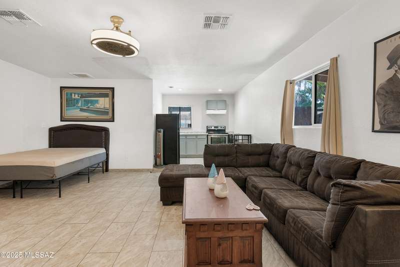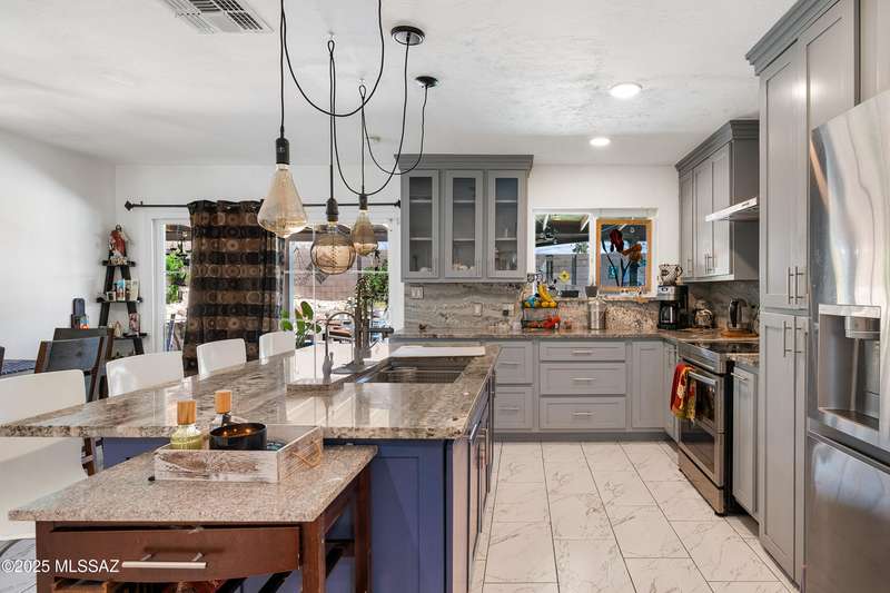 Welcome to your private retreat in Northwest Tucson This beautifully upgraded 4-bedroom, 2-bath home with separate guest quarters and a sparkling pool offers the perfect blend of comfort, style, and versatility. From the moment you arrive at the end of a quiet cul-de-sac, you'll appreciate the sense of privacy and charm. Step inside to discover a thoughtfully updated interior featuring all-new ceramic tile flooring throughout both the main home and guest quarters, providing a modern, cohesive look. The kitchen is a true showstopper with all-new cabinetry, sleek granite countertops, a designer backsplash carried up to the ceiling, a spacious farmhouse sink with reverse osmosis system, stainless steel appliances, and a new vent hood over the electric cooktop-a chef's dream!