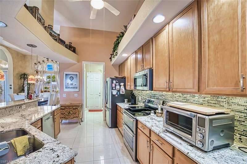 Welcome Home to Southwind Preserve, a peaceful, gated community of custom built homes! Step inside to discover an open and airy floor plan with soaring 12-foot ceilings, tile flooring throughout the main living areas, and an abundance of natural light. The heart of the home features granite countertops, updated stainless steel appliances, and ample space for cooking and entertaining. Step outside to your own private oasis, complete with a sparkling pool and spa, and a large screened-in lanai perfect for relaxing or hosting guests year-round. With a southern exposure, you'll enjoy sunshine throughout the day in your backyard retreat. Plus, the roof is only 2 years old for added peace of mind. This home had NO water intrusion from recent storms. Southwind Preserve offers a relaxed lifestyle with exclusive community amenities, including a community pool, fishing pier, and a charming gazebo nestled among serene surroundings - all with low HOA fees! Just minutes from the Sanibel and Fort Myers beach, top-rated shopping, dining, and entertainment, this home is ideal as a full-time residence or a seasonal getaway. Don't miss your chance to experience this hidden gem - Southwind Preserve is the ideal place to call home!
