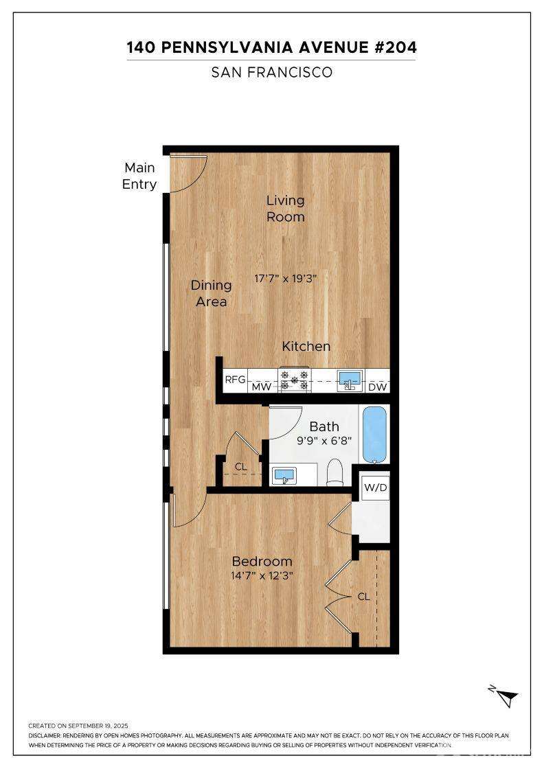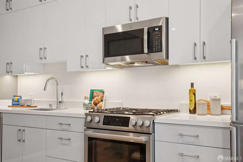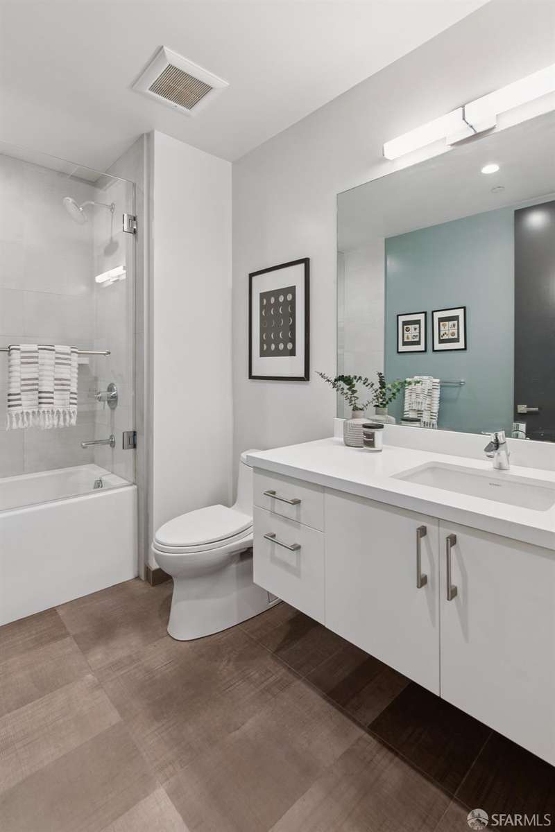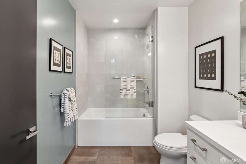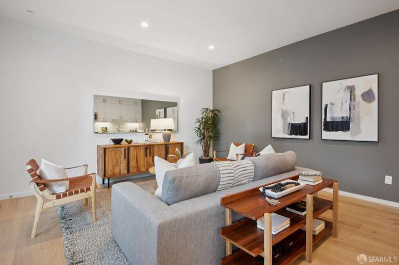 Unit 204 is a modern 1 bed / 1 bath residence in the highly desirable Potrero Hill neighborhood. Featuring an open floor plan that is spacious and welcoming, this condo is perfect for entertaining. The living space, is bright and faces the courtyard. The adjoined kitchen offers contemporary finishes, stainless steel appliances, and double-stacked cabinets to ensure that organization is made easy. American Oak Hardwood floors feature throughout this condo, including in the spacious bedroom which offers ample closet space. The bathroom is bright and modern, boasting a sleek tub/shower combo with a half-wall glass shower enclosure. This unit has a stacked washer/dryer and its own assigned storage locker & 1-car parking in the garage. Professional management, exterior and common space maintenance, unit heating, trash, and water and internet are included with the monthly HOA dues.